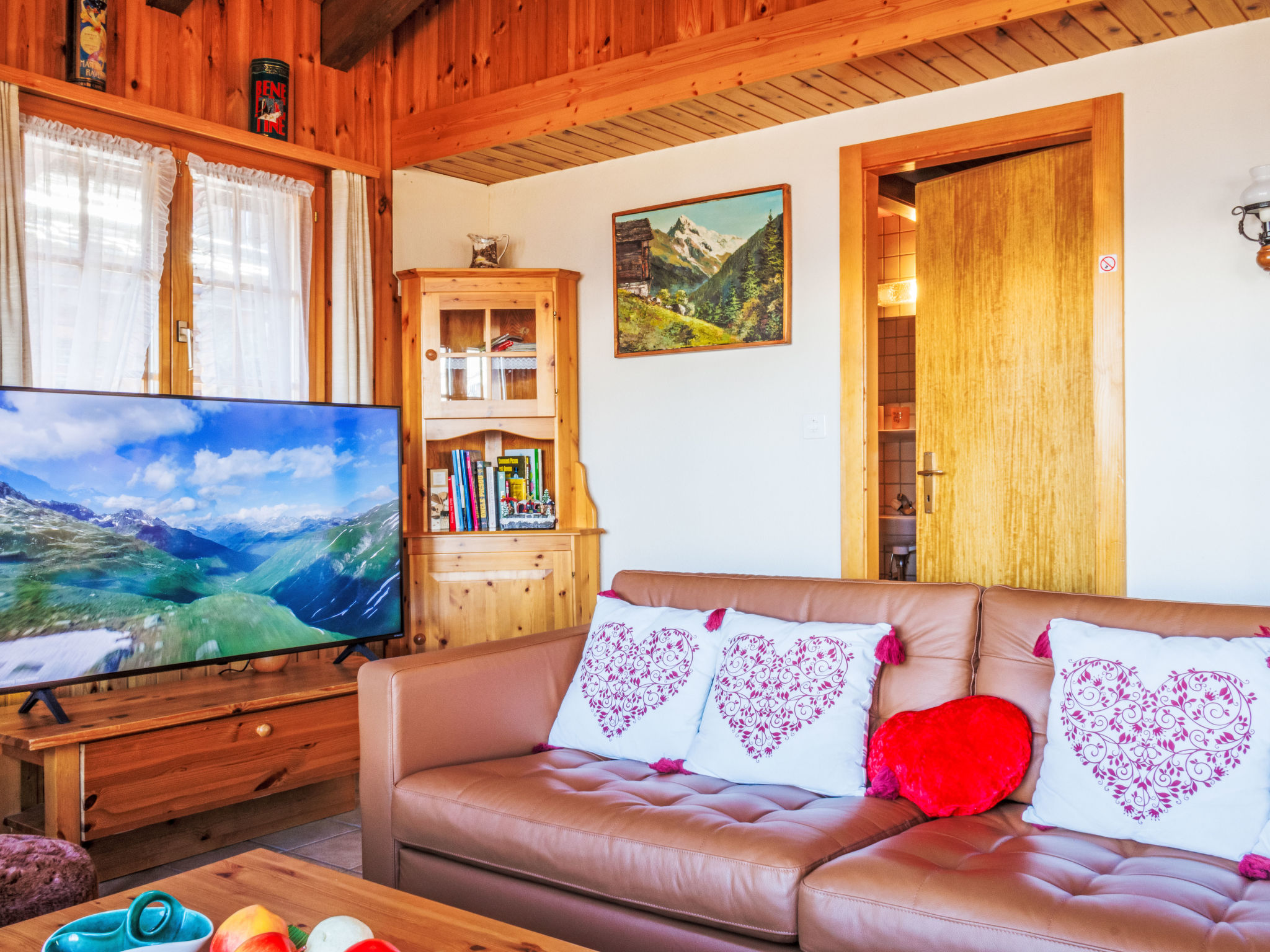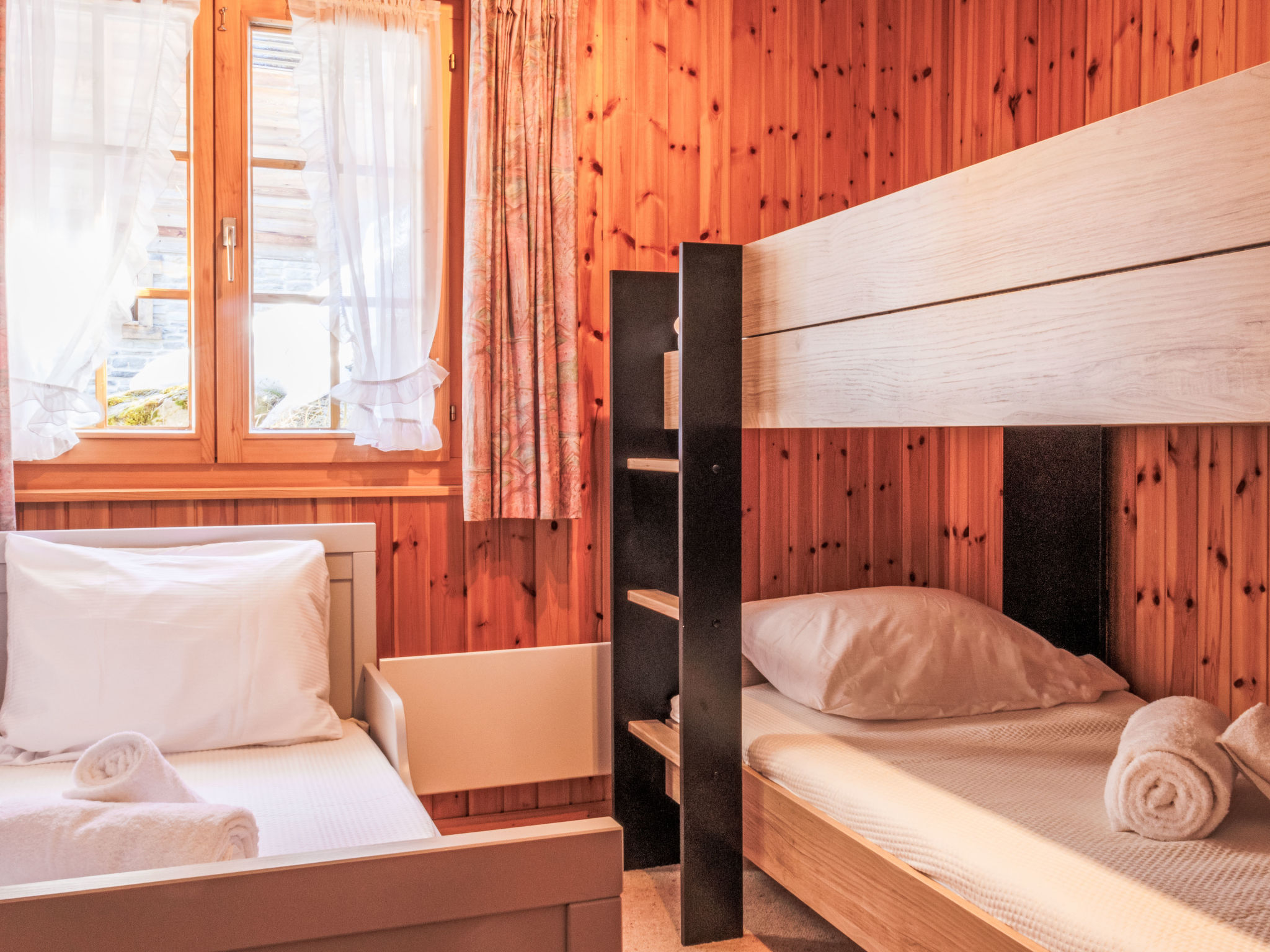 "Panorama des Cimes", chalet 5 pièces 139 m2 sur 2 niveaux. Aménagement très confortable et agréable: entrée. Séjour/salle à manger avec cheminée et TV (câblée). Sortie sur le balcon, sur la terrasse, orientée nord et orientée ouest. Cuisine ouverte (4 plaques de cuisson, four, lave-vaisselle, grille-pain, bouilloire électrique, micro-ondes, cafetière électrique, Capsules pour machine à café (nespresso) (NON INCLUSES), appareil à raclette, service à fondue (fondue au fromage)). WC séparé. À l'étage inférieur: 1 chambre d'enfants avec 1 x 2 lits superposés (90 cm, longueur 200 cm). 1 chambre avec 1 grand-lit (160 cm, longueur 200 cm). 1 chambre avec 1 grand-lit (160 cm, longueur 200 cm). Bain/WC, douche/WC. Chauffage électrique. Sous le toit: (échelle) petite galerie mansardée, hauteur plafond 140 - 170 cm avec 2 lits (90 cm, longueur 190 cm). Meubles de terrasse, barbecue, chaises longues (4). Très belle vue panoramique sur les montagnes, la vallée et la localité. A disposition: lave-linge, sèche-linge, sèche-cheveux. Internet (Connexion WIFI, gratuit). Place de parking (2 Voitures). Veuillez noter: logement non-fumeur.