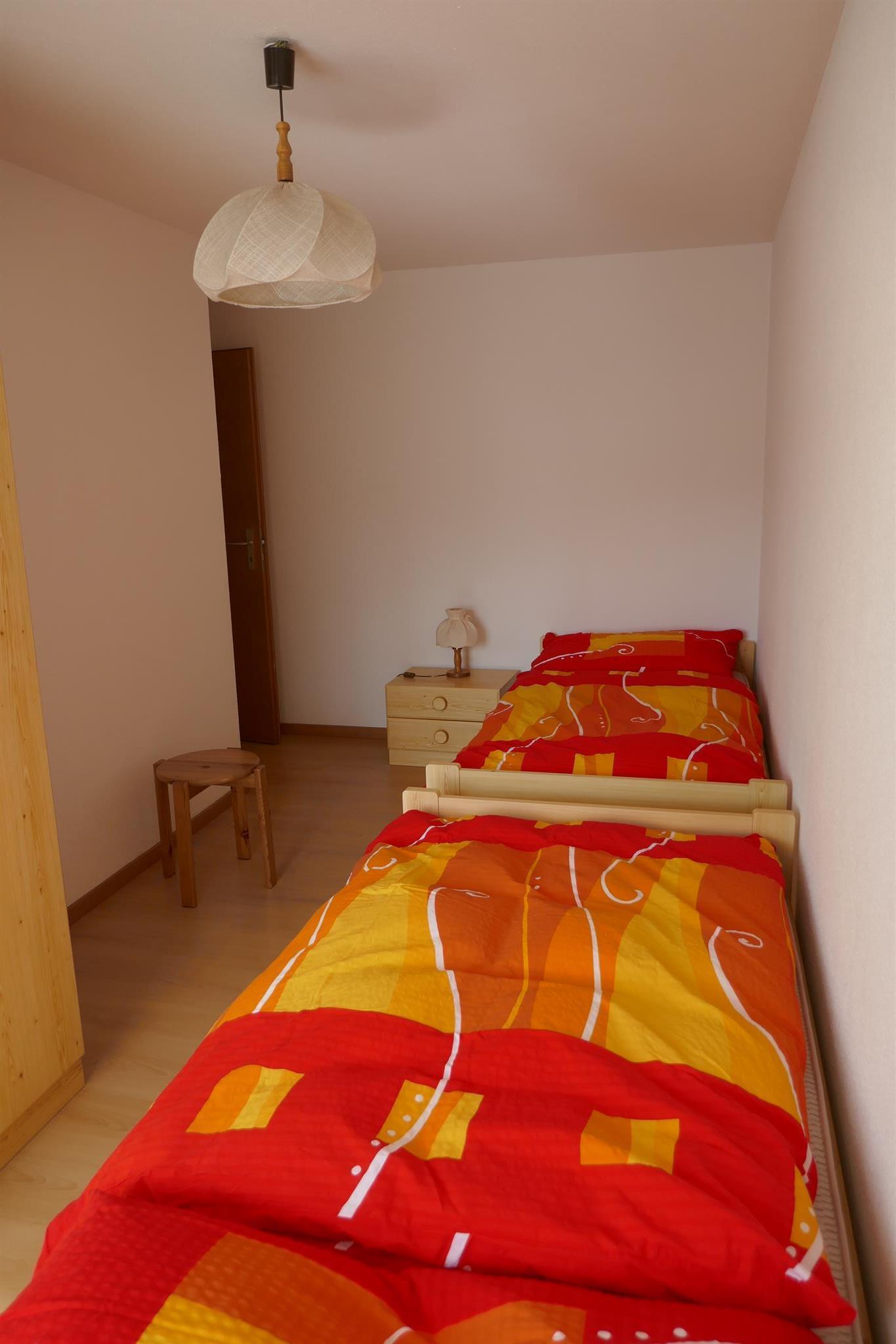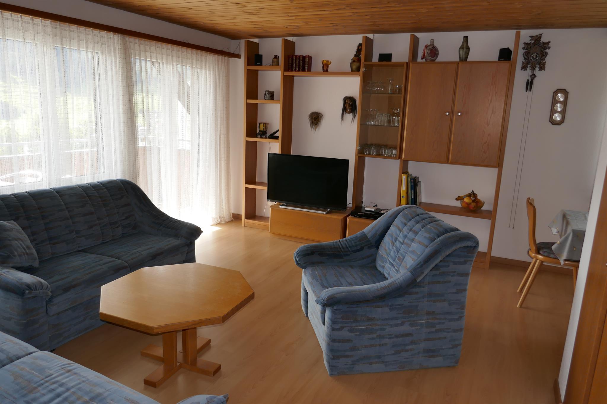Appartement de 4½ pièces (81 m2). 1 salon et 3 chambres à coucher avec 2 grands lits et 2 lits individuels. Duvet avec plumule et literie disponible. Chambre-cuisine, séparée, ouverte dans la salle à manger avec four, frigo et lave-vaisselle. Baignoire avec équipement de douche/toilette dans un local et toilette séparée. radio et Swisscom-télévision et WLAN dans l'appartement.Chaise haute et lit de voyage pour enfants disponibles Balcon et parking au garage. Jardin, place de jeux pour des enfants, local de ski à l'usage commun. Animaux domestiques ne sont pas permis.