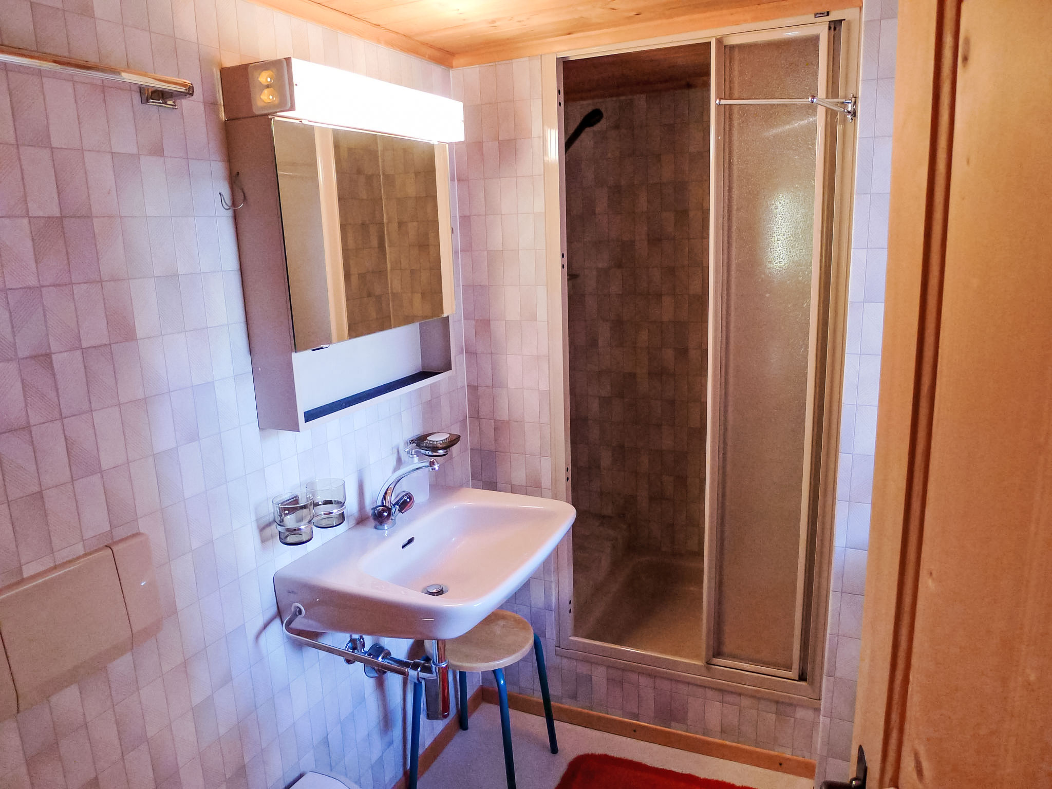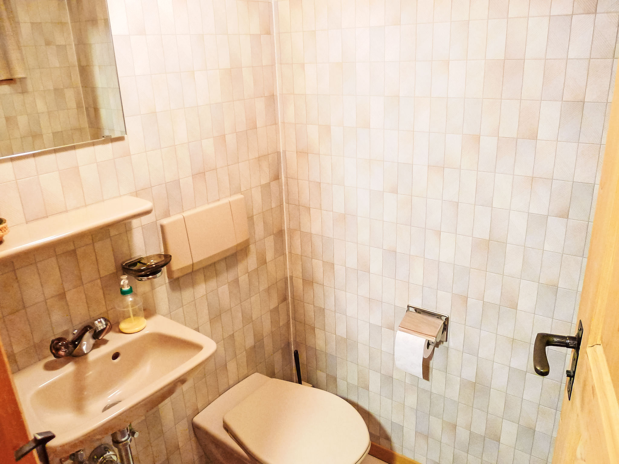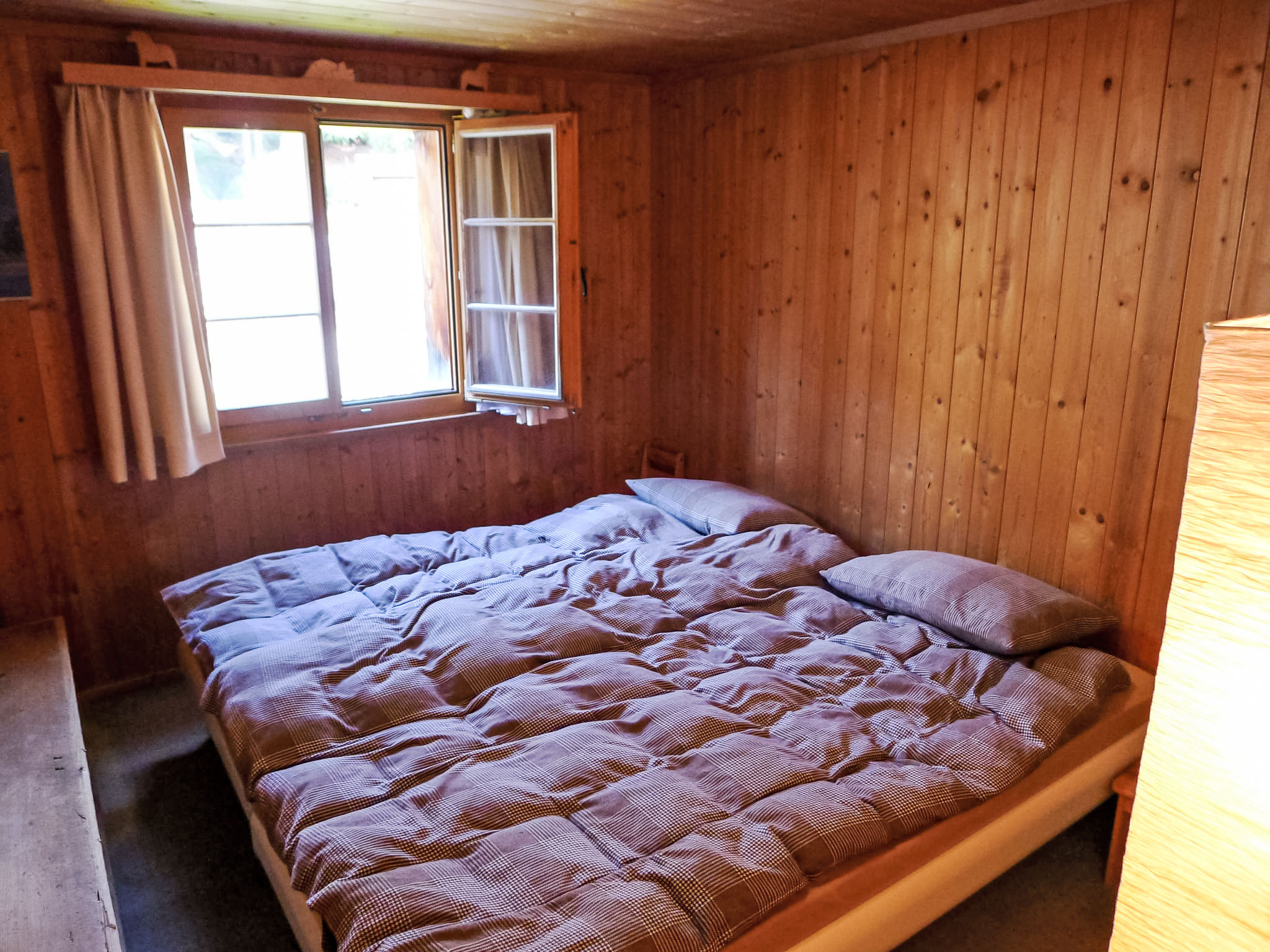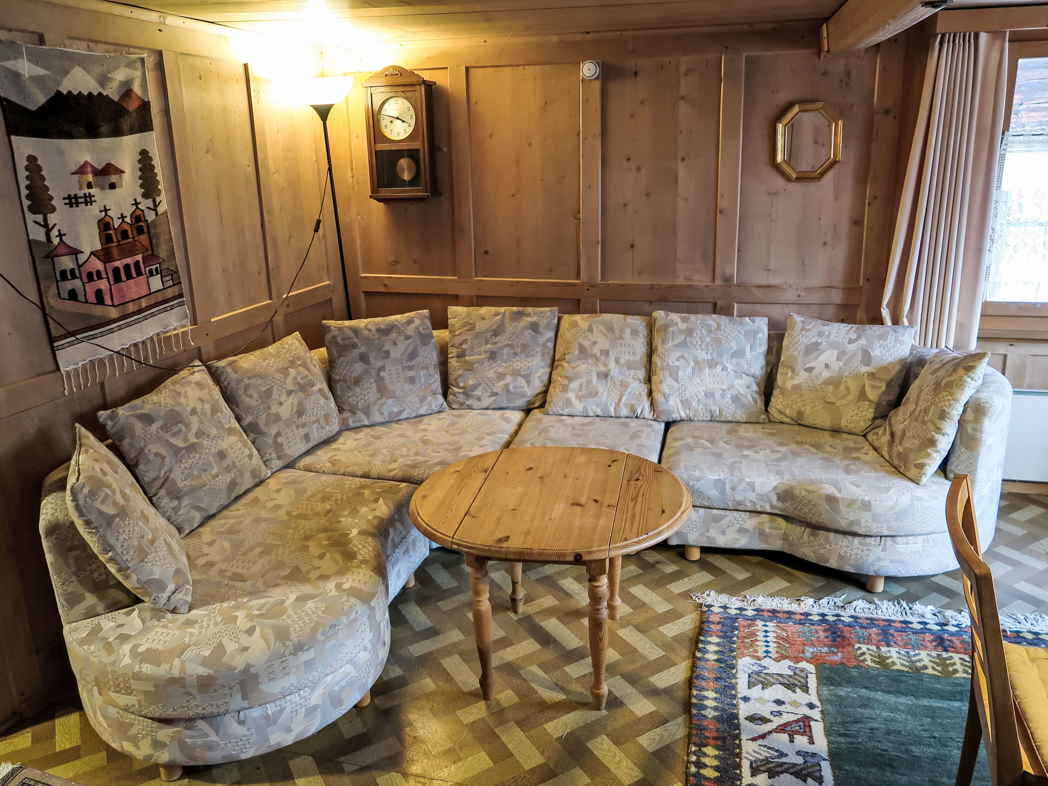 "Crestatgiet", apt 4 pièces 79 m2 sur 2 niveaux. Aménagement simple et rustique: séjour/salle à manger hauteur plafond 170 - 190 cm, Portes basses hauteur 165 cm avec poele de faience. Cuisine (four, 4 plaques vitrocéramiques, cafetière électrique) avec table pour les repas. WC séparé. Chauffe eau (300 litres). À l'étage supérieur: 3 chambres, chaque chambre avec: 2 lits. Douche/WC. Chauffage électrique, Poêle-cheminée en stéatite. Sol en bois. Vue partielle sur les montagnes et les alentours. Veuillez noter: logement non-fumeur.