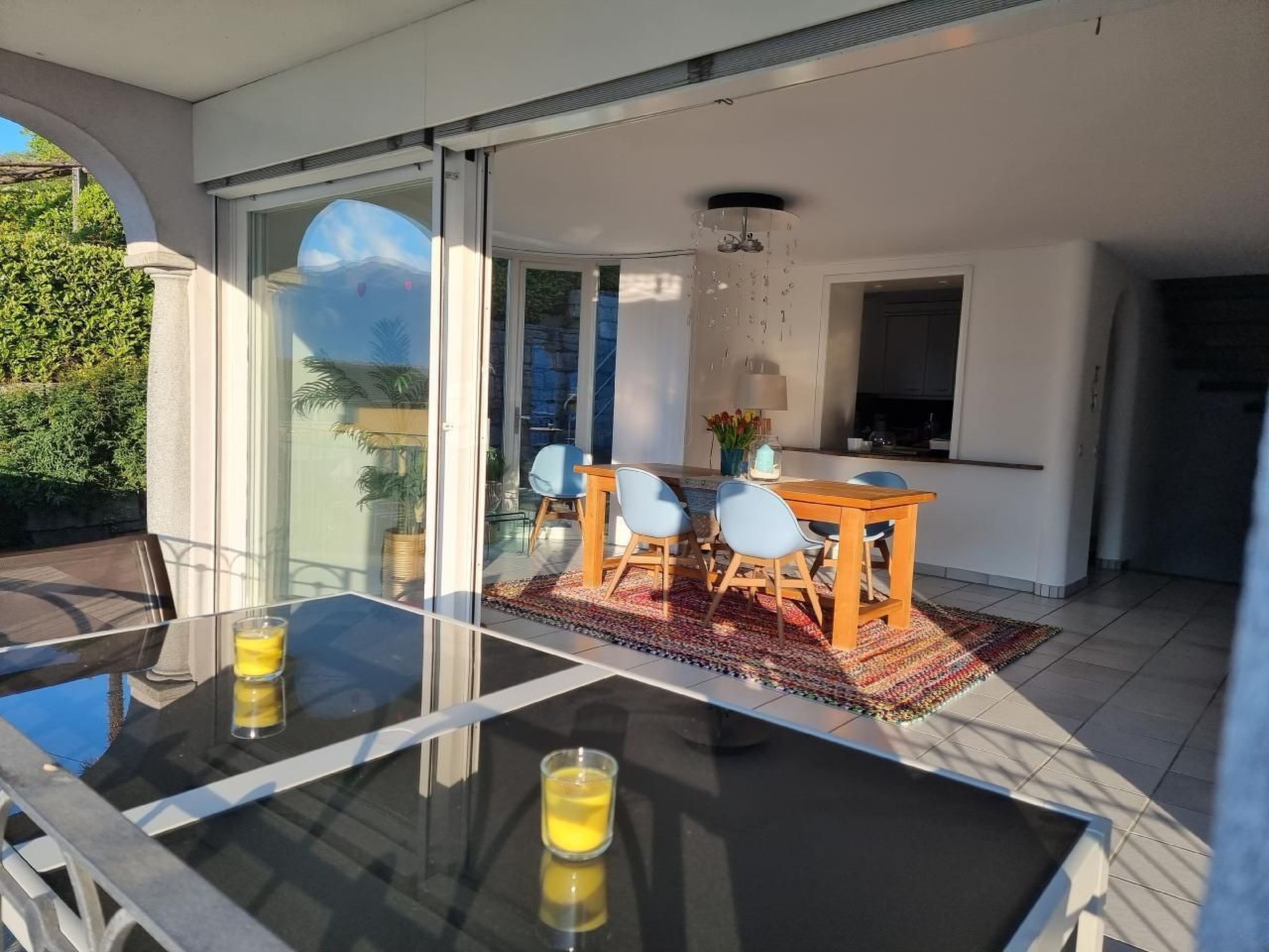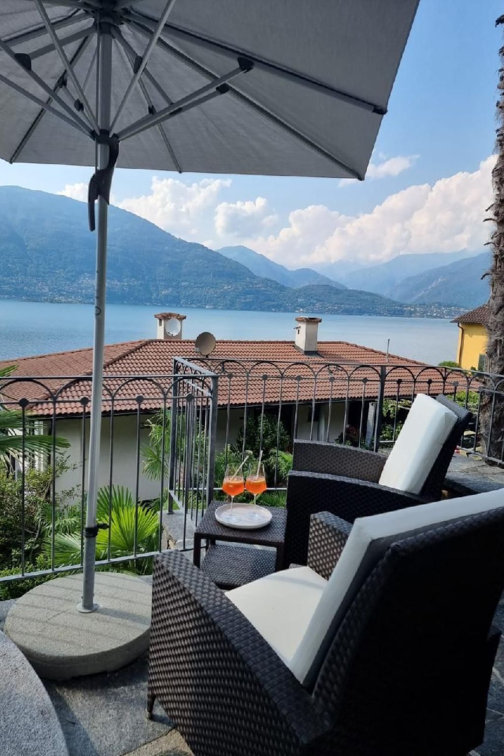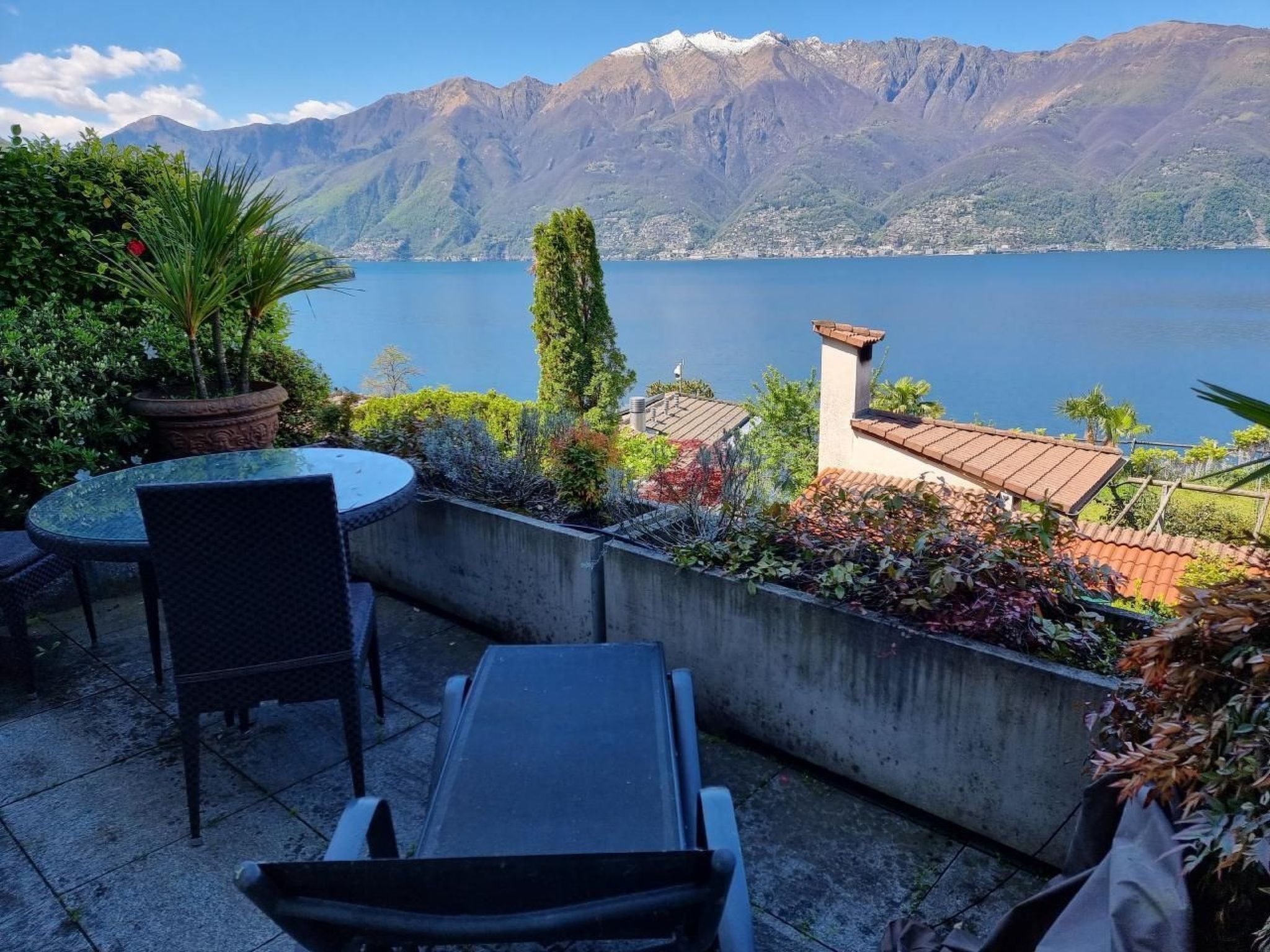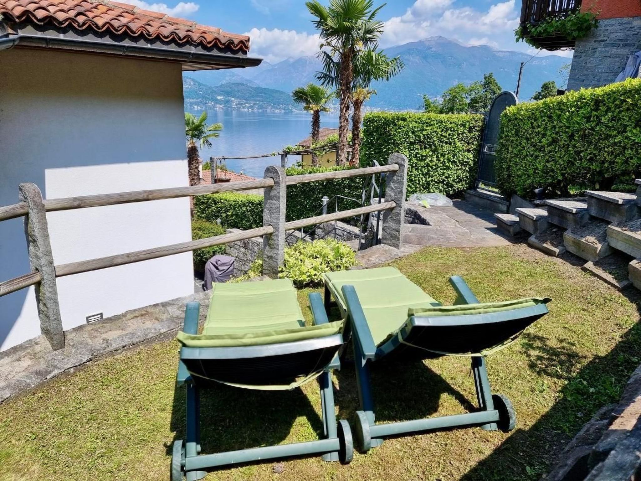 This bright, homely oasis of well-being, the Alla Roccia, with its fantastic lake view from every room and from each of the associated balconies, offers every guest easy access to all three floors thanks to the passenger lift. You are greeted by approx. 180 square metres of feel-good space - with a spacious living/dining area with fantastic views thanks to a glass front across the entire width of the accommodation, three bedrooms, three bathrooms, ... - which leave nothing to be desired and provide sufficient privacy. Even the approach (approx. 300m) is very pleasant: turn off the road around the lake, pass under the railway line and only two bends away from the lake, and you are already at the destination of our - and hopefully your - dreams. You can park your car comfortably and generously under the left-hand side of the semi-detached house; you can unload in peace and get to your holiday home together with your luggage in the passenger lift. What comfort right at the start of your holiday! On the upper floor there are two bedrooms (each with double beds and balcony) and two bathrooms. On the middle floor - the actual entrance and living floor - is the spacious living/dining area with fireplace, kitchen and guest toilet as well as a terrace with several seating areas and a gas barbecue. On the lowest floor there is another bedroom (two double beds 140×190 and 160x200) with a terrace and bathroom. The boiler room and laundry room with washing machine and tumble dryer are also located here. Each bathroom in this oasis of well-being has a rain shower. There is a small sunbathing lawn behind the house. Swimming pool? The largest "pool" in the region, the Lago itself with a public beach including a bathing platform and changing facilities, is just a 3-minute walk away. Or take to the water with our SUPs. They can be used free of charge. Which pool can do that? The popular seaside resort of Maccagno is just a 10-minute drive away. If you have any questions about the house, a contact person is available on site. You should be able to park three vehicles comfortably under the house. You can conveniently obtain the key via a key safe. This means you can also arrive late in the evening or leave early in the morning. Further details on the use of our feel-good property will be sent to you in writing after booking. You will also find an information folder in the house. Caviano is a beautiful, tranquil little village. There is a recommended nearby osteria (open from mid-March to the end of the season), a small bodega, picturesque alleyways, a football pitch and a petrol station with shop. If you also like to enjoy your holiday away from the tourist hustle and bustle and enjoy sitting in the sun for longer in the evening with a delicious sundowner, then Gambarogno is the right lakeside destination for you. You can explore the beautiful surroundings of Gambarogno on numerous - sometimes steep, challenging, well signposted - hiking trails. Even train-spotters will get their money's worth - although the trains, like the road around the lake, can only be heard slightly from the house. Ascona, the Swiss pearl of the region, can be reached in approx. 20 minutes by car. You can also make a detour to Italy (border only 1 km away) and shop extensively for your daily needs in nearby Luino (approx. 16 km), for example. The largest weekly market in the area takes place in Luino on Wednesdays from 9 am to 4.30 pm. From Luino, you can also take numerous boat trips. For example, in 25 minutes to Cannobio - with its well-known Sunday weekly market with its flair and freshly prepared regional specialities. A petrol station 300m away sells some (baked) goods, drinks and snacks. If you don't want to drive yourself, the nearest bus stop is just a 3-minute walk away and we hope you will soon be able to see our oasis of well-being for yourself - we look forward to seeing you.