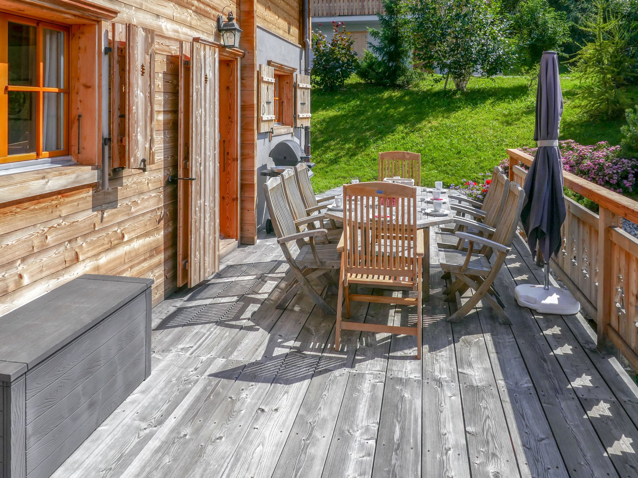 "Le Muveran V8", chalet 5 pièces 184 m2 sur 3 niveaux. Spacieux et clair, aménagement agréable et de bon goût: entrée. Séjour/salle à manger avec cheminée, TV (câblée) et radio. Sortie sur le balcon, sur la terrasse, orientée nord et orientée ouest. Cuisine ouverte (four, lave-vaisselle, 4 plaques vitrocéramiques, grille-pain, bouilloire électrique, micro-ondes, cafetière électrique, Capsules pour machine à café (nespresso) (NON INCLUSES), appareil à raclette, service à fondue (fondue chinoise, fondue au fromage)). WC séparé. Chauffage. À l'étage inférieur: entrée. 1 chambre avec 1 grand-lit (160 cm, longueur 200 cm). 1 chambre avec 2 lits (90 cm, longueur 200 cm). Douche/WC. À l'étage supérieur: 1 chambre avec 1 grand-lit (160 cm, longueur 200 cm). Sortie sur le balcon, orientée nord. 1 chambre avec 2 lits (90 cm, longueur 200 cm). Sortie sur le balcon, orientée nord. Bain/douche/WC. Balcon, situation nord terrasse 27 m2, situation ouest, jardin, situation sud. Meubles de terrasse, barbecue, chaises longues (2). Très belle vue sur les montagnes. A disposition: lave-linge, sèche-linge, chaise haute pour enfant, lit bébé, sèche-cheveux. Internet (Connexion WIFI, gratuit). Place de parking (3 Voitures). Veuillez noter: logement non-fumeur.