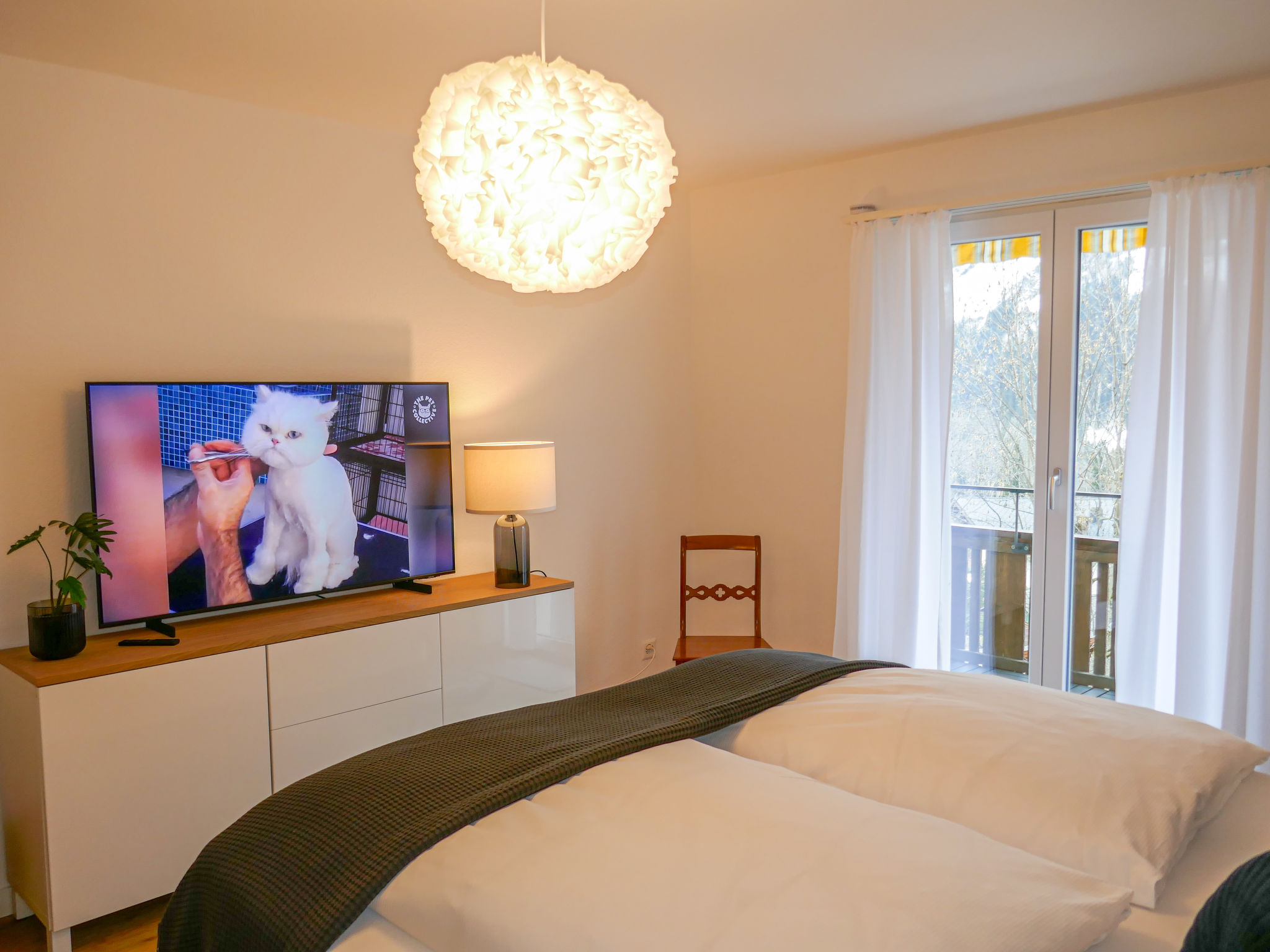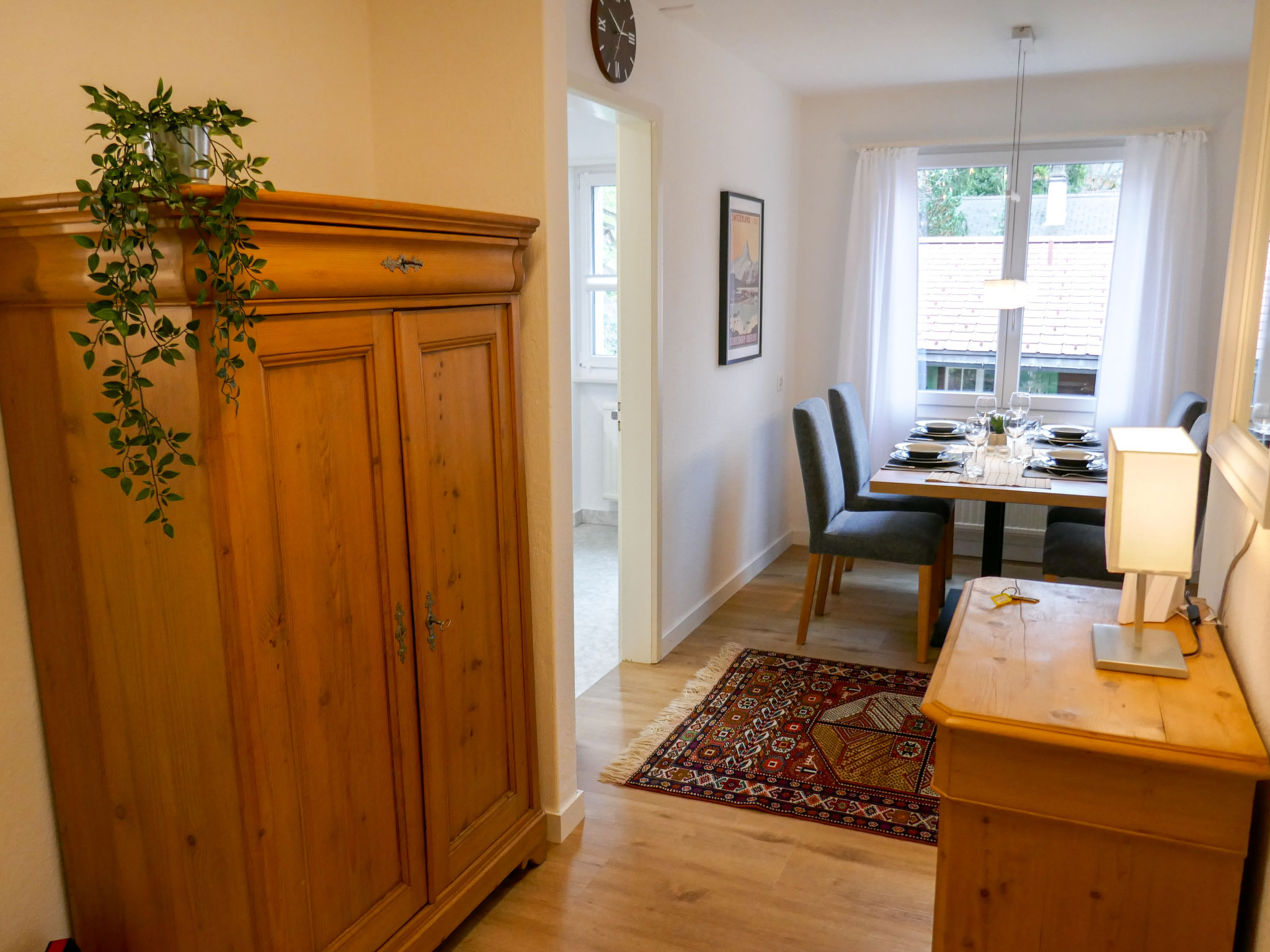 Apt 2 pièces 70 m2, situation sud. Clair, complètement rénové en 2022, aménagement agréable et plaisant: séjour/chambre à coucher avec 1 divan-lit (160 cm, longueur 200 cm), Télévision numérique. Sortie sur le balcon, orientée sud. 1 chambre avec 1 lit (180 cm, longueur 200 cm), Télévision numérique. Sortie sur le balcon, orientée sud. Cuisine (four, lave-vaisselle, 4 plaques vitrocéramiques, grille-pain, bouilloire électrique, micro-ondes, cafetière électrique, Capsules pour machine à café (Nespresso) (NON INCLUSES), appareil à raclette, service à fondue (fondue au fromage)). Bain/WC. Sol en parquet. Situation sud. Superbe vue sur les montagnes, la vallée et Eiger. A disposition: sèche-cheveux. Internet (Connexion WIFI, gratuit). Place de parking No BE38501. Veuillez noter: logement non-fumeur. Extincteur, sans ascenseur.