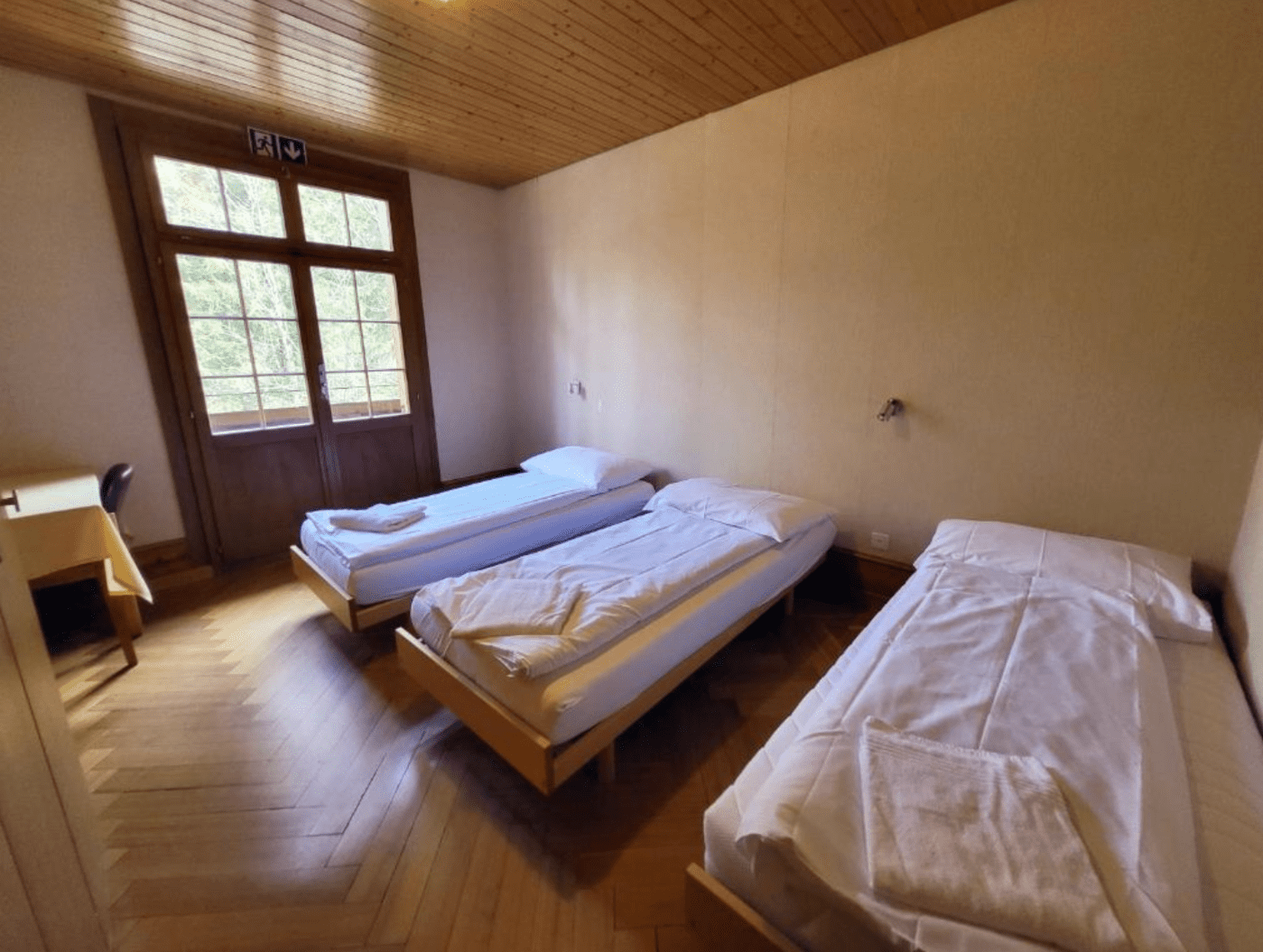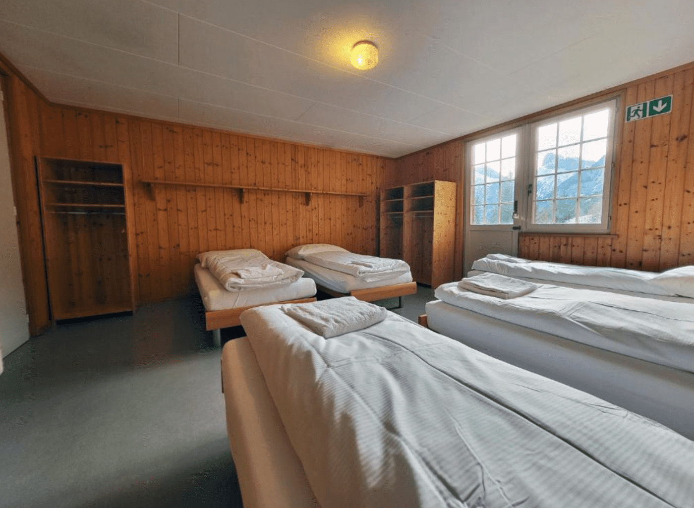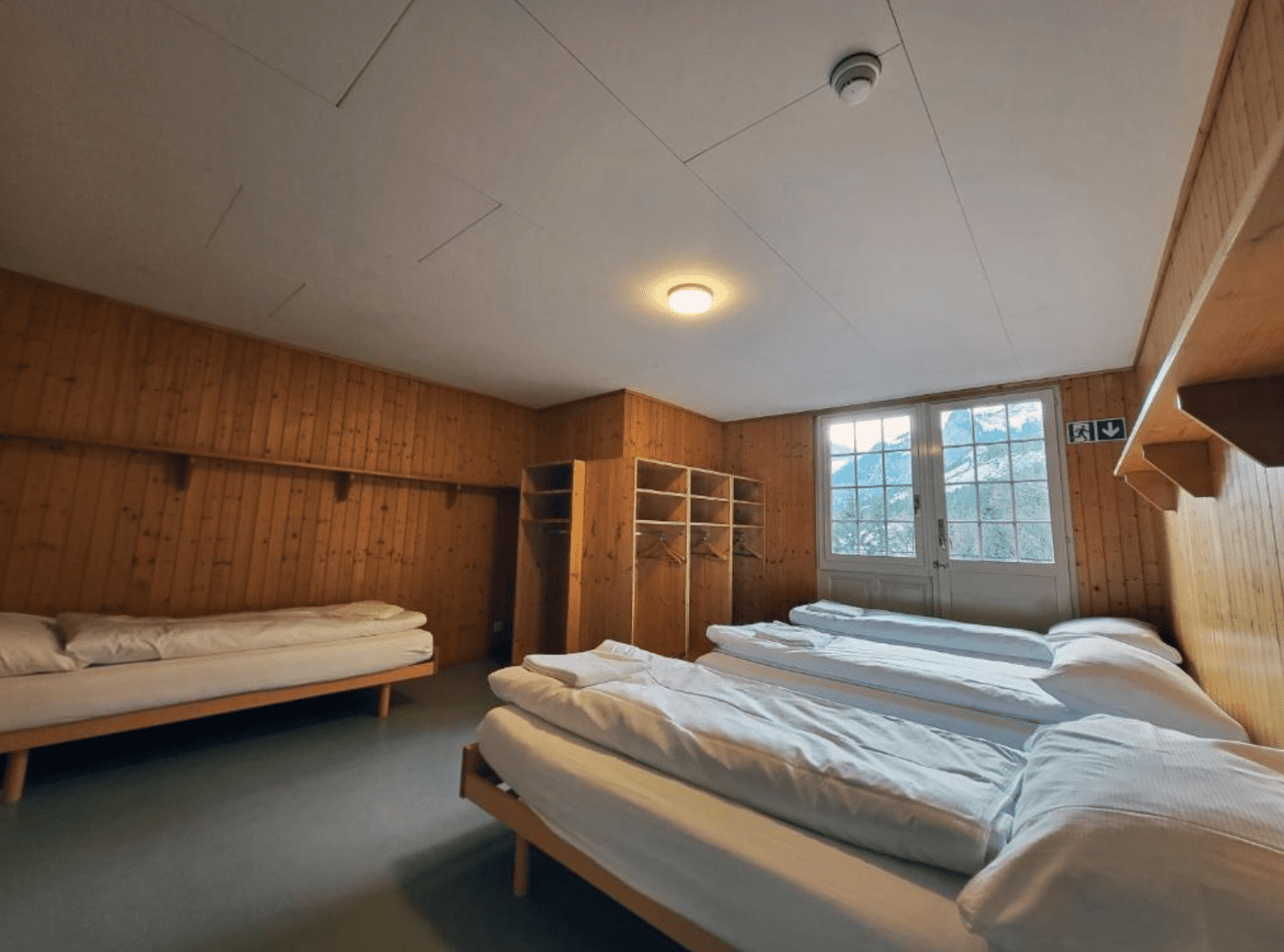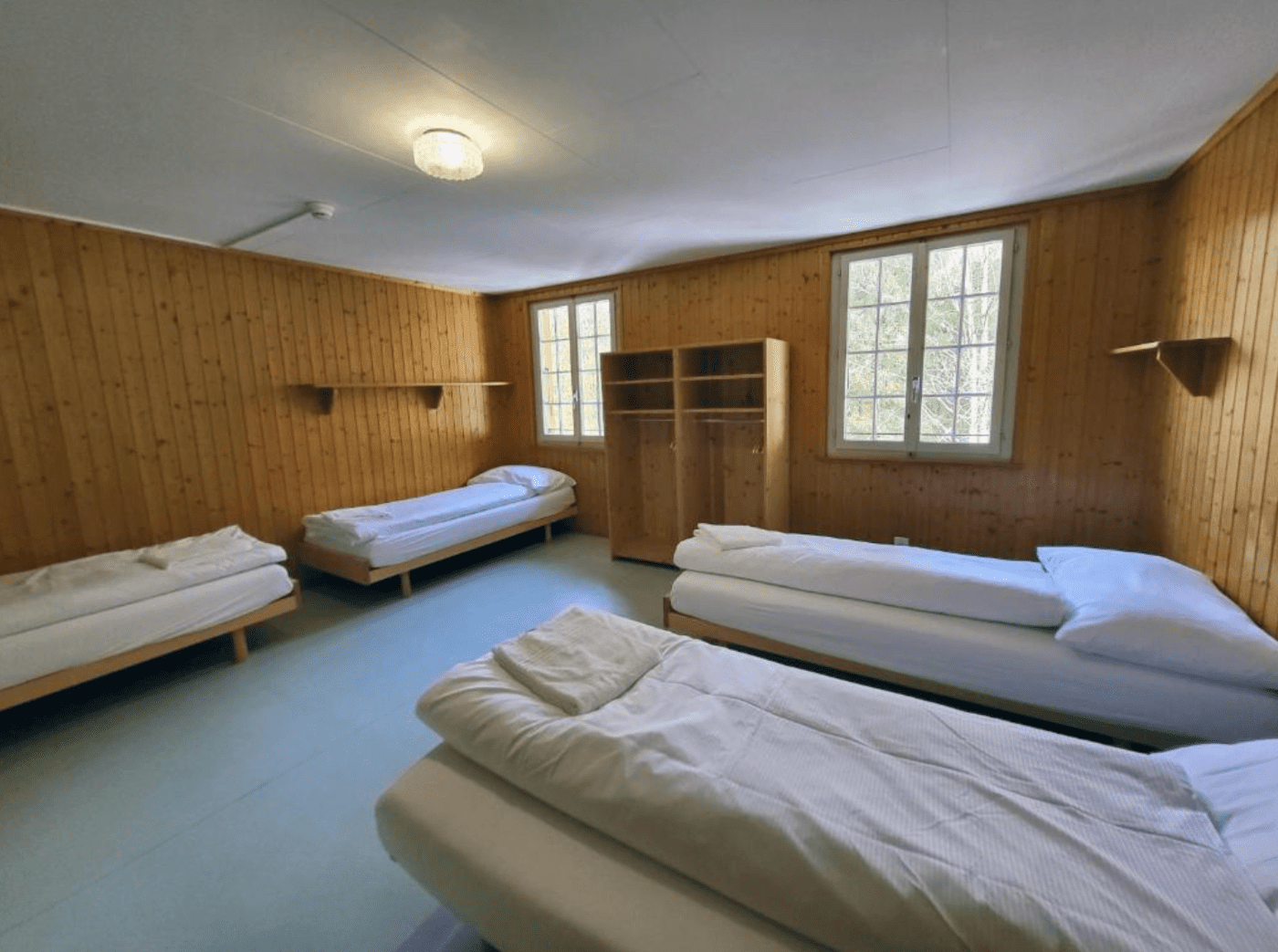 Votre réservation se fait de manière modulaire : vous payez le tarif de base pour l’hébergement et pouvez ajouter des repas supplémentaires selon la liste de prix. Idéal pour les camps d’entraînement, week-ends associatifs, classes scolaires ou vacances en groupe dans les Alpes bernoises.