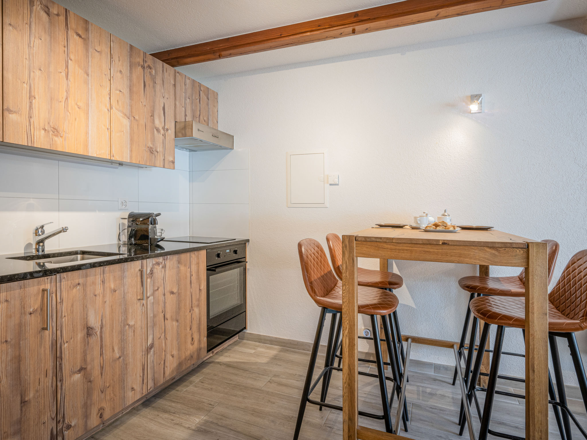 "Morthey 3" studio 28 m2. Spacieux, complètement rénové en 2020, aménagement confortable et moderne: séjour/salle à manger avec 1 grand-lit (180 cm, longueur 200 cm), table pour les repas et TV (câblée). Sortie sur le balcon. Cuisine ouverte (four, 2 plaques vitrocéramiques, grille-pain, bouilloire électrique, cafetière électrique, Capsules pour machine à café (Nespresso) (NON INCLUSES), appareil à raclette, service à fondue (fondue au fromage)). Douche/WC. Chauffage électrique. Balcon, situation sud. Mobilier de balcon, chaises longues (2). A disposition: Internet (Connexion WIFI, gratuit). Place de parking près de la maison. Veuillez noter: logement non-fumeur. Smart TV avec support USB pour clé et disc dur.