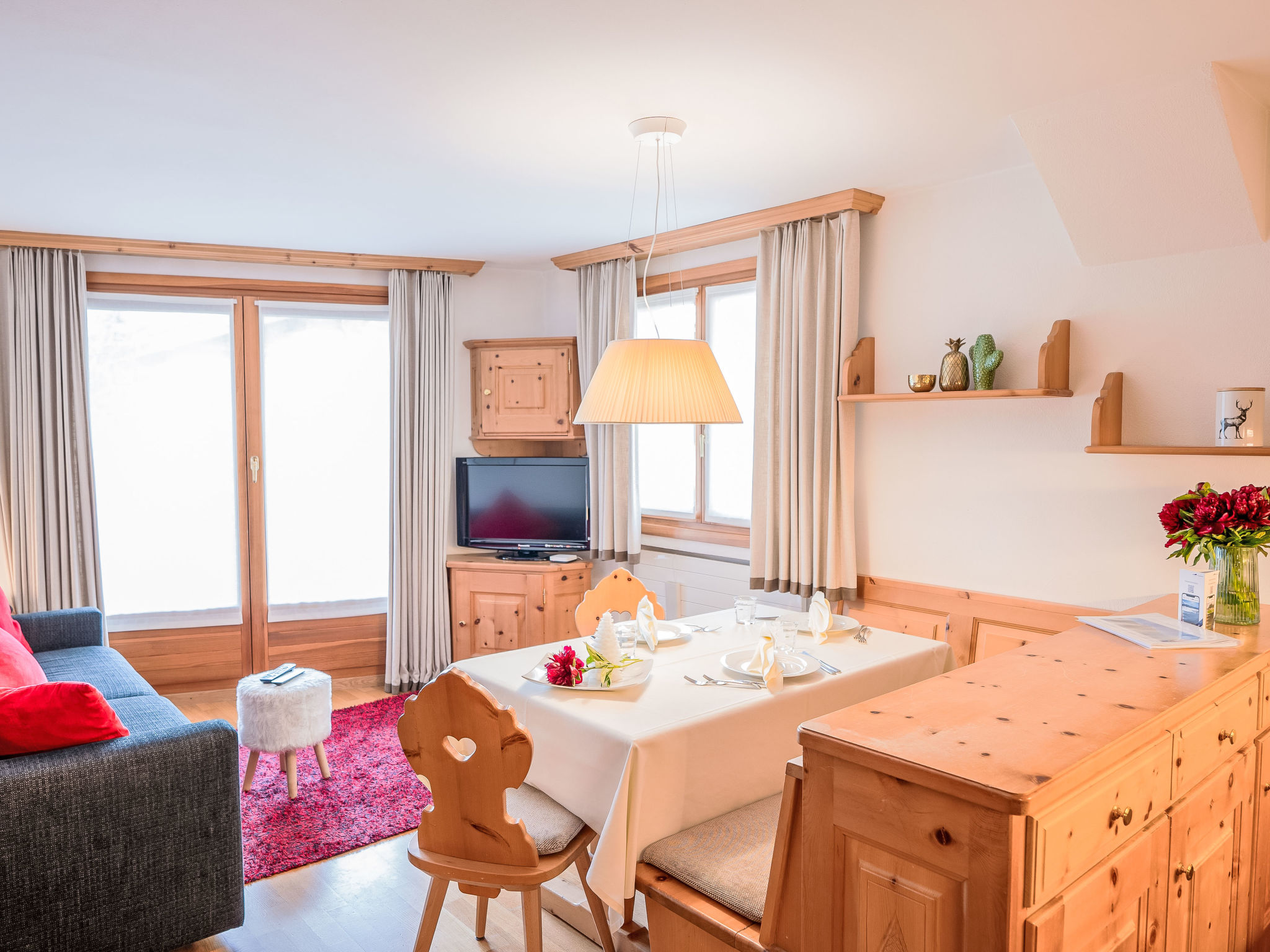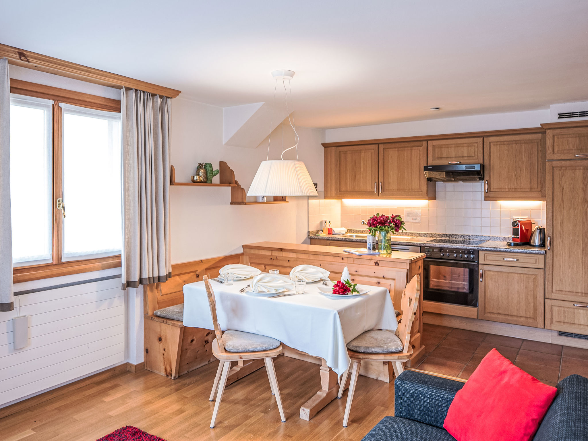 "Chesa Vadret Surlej", apt 2 pièces 57 m2, au rez-de-chaussée. Partiellement rénové en 2016, aménagement plaisant: séjour/salle à manger ouvert avec 1 divan-lit (160 cm, longueur 200 cm), TV (écran plat). Sortie sur la terrasse. 1 chambre avec 1 lit double (1 x 170 cm, longueur 200 cm). Cuisine ouverte (lave-vaisselle, 4 plaques vitrocéramiques, grille-pain, bouilloire électrique, cafetière électrique, Capsules pour machine à café (Nespresso) (NON INCLUSES), service à fondue (fondue chinoise)). Douche/bidet/WC. Chauffage. Petite terrasse. Meubles de terrasse. Vue sur les montagnes et la localité. A disposition: sèche-cheveux. Internet (Connexion WIFI, gratuit). Garage No 26 sur le terrain, hauteur 205 cm, largeur 290 cm. Veuillez noter: logement non-fumeur.