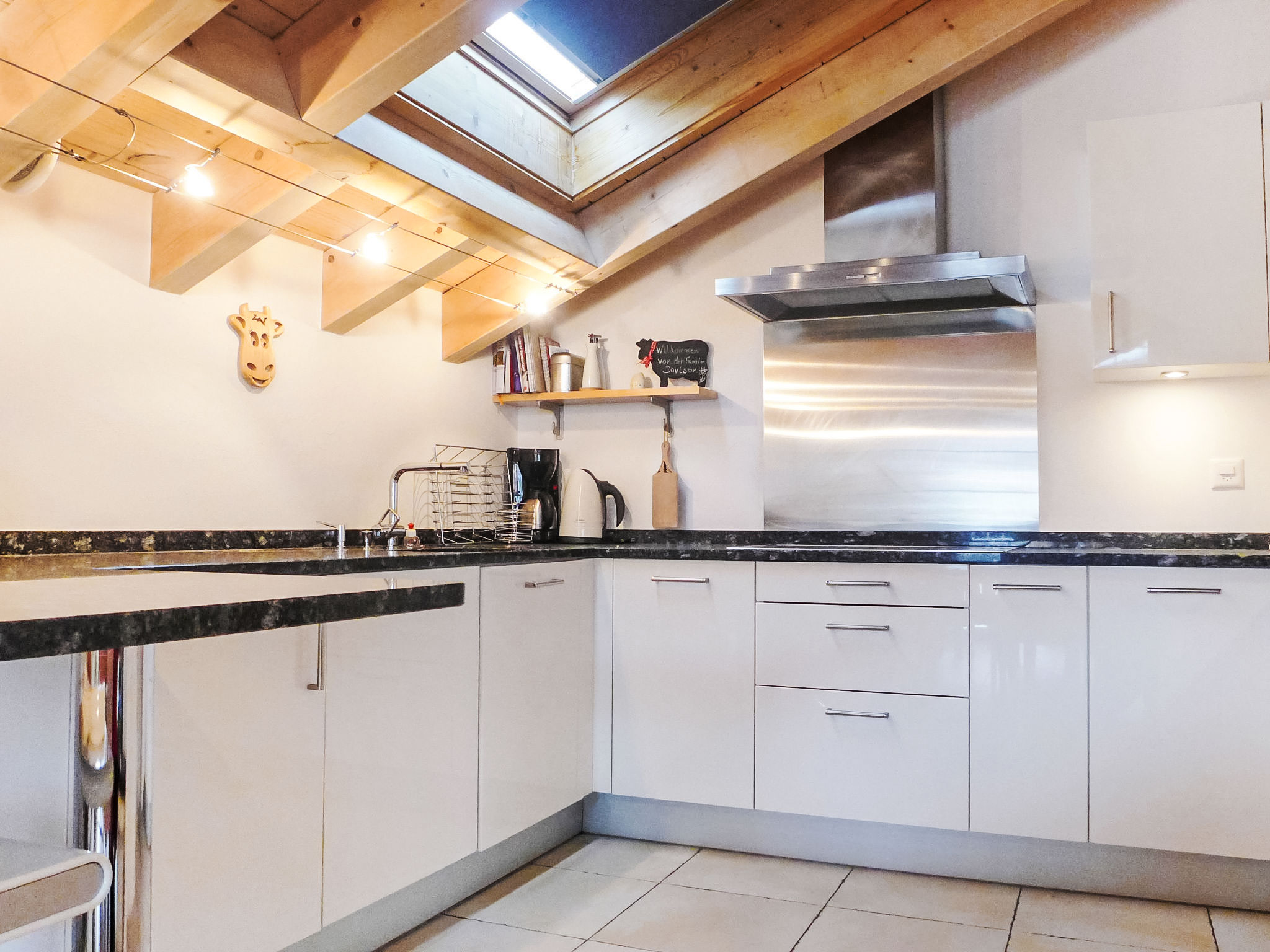 Apt sous les toits 4 pièces 119 m2, sous le toit, situation sud. Aménagement moderne et de bon goût: grand séjour/salle à manger avec poêle suédois, table pour les repas, TV (câblée), écran plat, radio, lecteur CD et DVD. Sortie sur le balcon. 1 chambre double avec 1 lit double (1 x 160 cm, longueur 200 cm). 2 chambres, chaque chambre avec: 2 lits (90 cm, longueur 200 cm). Grande cuisine ouverte (four, lave-vaisselle, 4 plaques vitrocéramiques, grille-pain, bouilloire électrique, micro-ondes, congélateur, cafetière électrique, appareil à raclette, service à fondue (fondue chinoise, fondue au fromage)). Bain/WC, douche/WC. Chauffage par le sol. Balcon 13 m2, situation sud. Mobilier de balcon. Très belle vue panoramique sur le Cervin. A disposition: sèche-cheveux. Internet (Connexion WIFI, gratuit). Veuillez noter: logement non-fumeur.