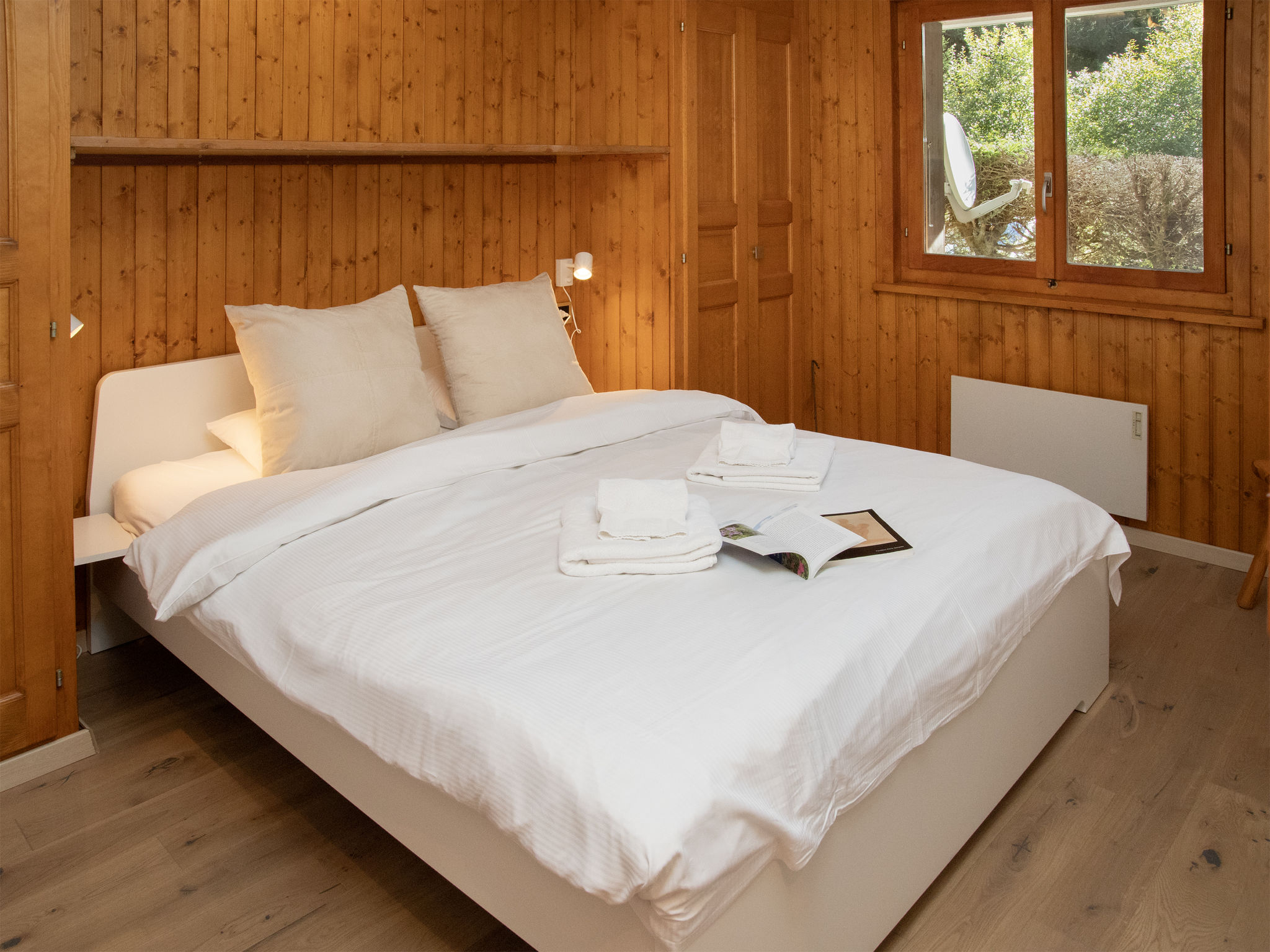 "Arolla R01", apt 3 pièces 60 m2, au rez-de-chaussée. Clair, rénové, aménagement confortable et agréable: séjour/salle à manger avec coin-cuisine et TV (câblée). Sortie sur le balcon. 1 chambre avec 1 lit double (1 x 160 cm, longueur 200 cm). 1 chambre avec 1 x 2 lits superposés (90 cm, longueur 200 cm). Cuisine ouverte (4 plaques de cuisson, lave-vaisselle, grille-pain, bouilloire électrique, cafetière électrique, service à fondue (fondue au fromage)). Bain/WC, WC séparé. Chauffage électrique. Sol en parquet. Grand balcon. Vue sur la forêt. A disposition: sèche-cheveux. Internet (Connexion WIFI). Place de parking. Veuillez noter: adapté(e) aux familles. Logement non-fumeur. Maximum 1 animal/ chien autorisé.