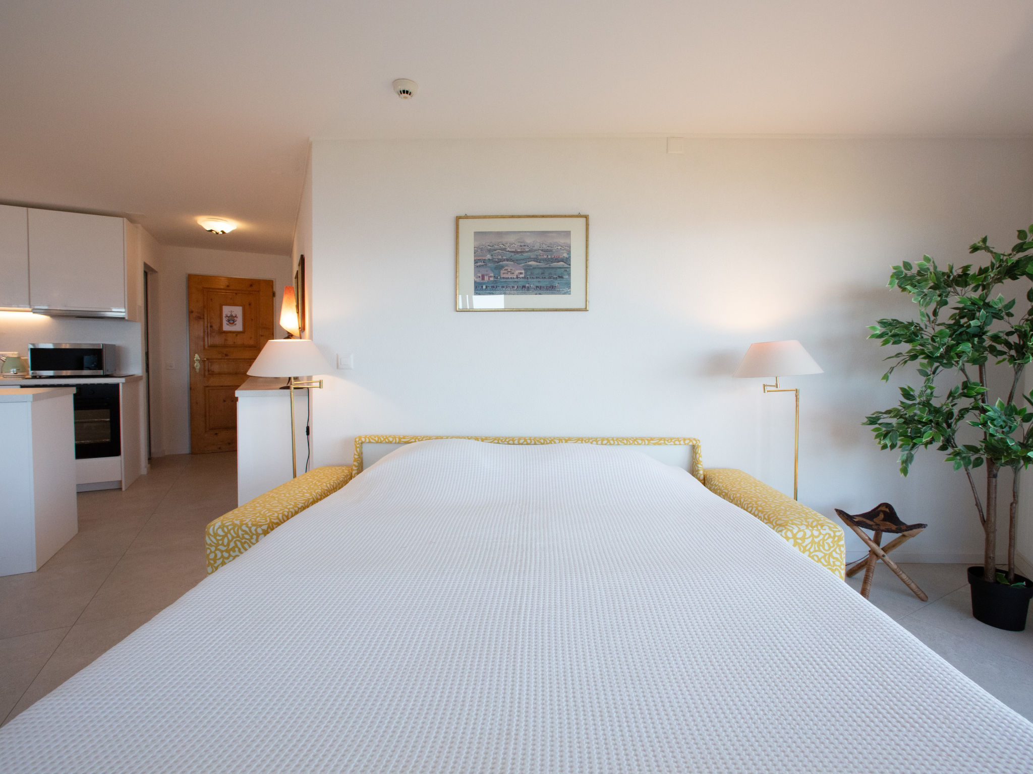 "Le Bristol C32", apt 2 pièces 65 m2 au 3ème étage, situation sud. Clair, complètement rénové en 2023, aménagement confortable et moderne: séjour/chambre à coucher avec 1 divan-lit double (1 x 160 cm), cheminée (uniquement à titre de décoration), table pour les repas, bain/WC et TV (écran plat). Sortie sur le balcon, orientée sud. 1 chambre avec 1 grand-lit (1 x 180 cm), cheminée, douche/WC et TV (écran plat). Sortie sur le balcon, orientée nord. Cuisine ouverte (four, lave-vaisselle, 4 plaques vitrocéramiques, bouilloire électrique, micro-ondes, cafetière électrique, Capsules pour machine à café (Nespresso) (NON INCLUSES), appareil à raclette, ilot de cuisine, service à fondue (fondue au fromage)). Grand balcon 18 m2, situation sud, petit balcon, situation nord. Mobilier de balcon. Très belle vue panoramique sur les montagnes et la vallée. A disposition: sèche-cheveux. Internet (Connexion WIFI, gratuit). Place de parking No 1 (couvert). Veuillez noter: logement non-fumeur parking pour 1 petite voiture.