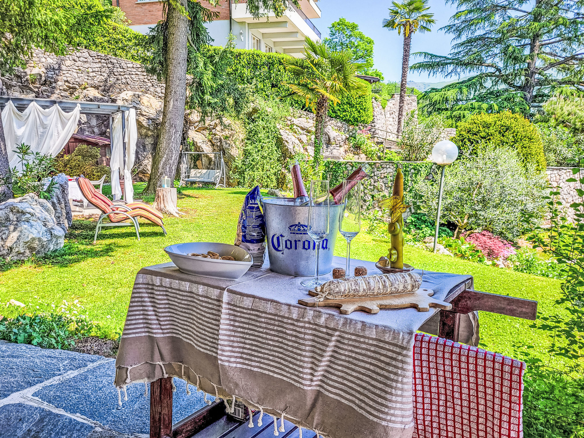 Besazio à 5 km de Mendrisio: Maison individuelle accueillante, individuelle "CaSotselva", 360 m au dessus du niveau de la mer, de 2 étages, environnée par les arbres et champs. En bordure de la localité, à 300 m du centre de Besazio, situation isolée, ensoleillée, surélevée, à 50 m de la forêt, dans une impasse, dans la verdure, orientée sud. A usage privé: grand jardin sur plusieurs niveaux 1'100 m2 avec pelouse et fleurs, pré 200 m2, piscine rectangulaire (8 x 4 m, disponibilité saisonnière: 30.Avr. - 30.Oct.). Douche extérieure, entretien de la piscine par le propriétaire/jardinier. Infrastructures de la Maison: réduit pour bicyclettes, lave-linge. Accès en voiture jusqu'à le terrain. Place de parking (pour 2 voitures). Supermarché 600 m, restaurant 1.5 km, boulangerie 600 m, arrêt de bus "Besazio Paese (Linie 525 Arzo)" 250 m, gare ferroviaire "Mendrisio FFS" 4.3 km, baignade en lac "Lido Riva San Vitale" 6 m, lac Lago di Lugano 6 m. Chemins de randonnées pédestres depuis la maison 50 m. Attractions à proximité: Lugano mit vielen Museen 15 km, Foxtown Factory Stores 4 km, Monte San Giorgio (Unesco), Eisenbahnmuseum Galleria Baumgartner 4 km, Kirche Santi Cosma e Damiano 4 km, Como 8 km. Les lacs connus sont facilement accessibles: Lago di Lugano 6 km, Lago di Como 8 km. Région de randonnées: Tremona und Poncione d'Arzo 500 m, Monte San Giorgio (Unesco) 8 km. Veuillez noter: le propriétaire habite dans la même maison.