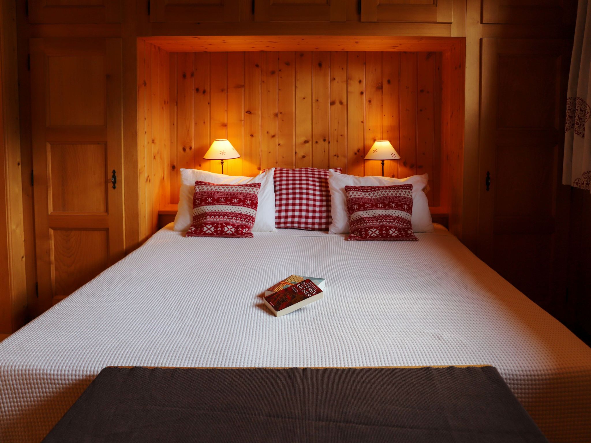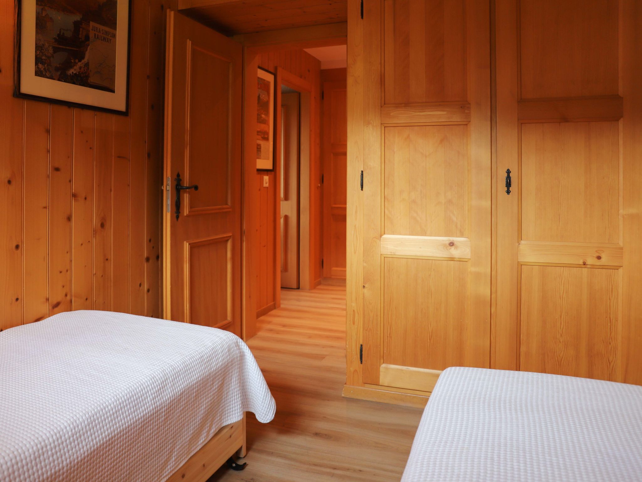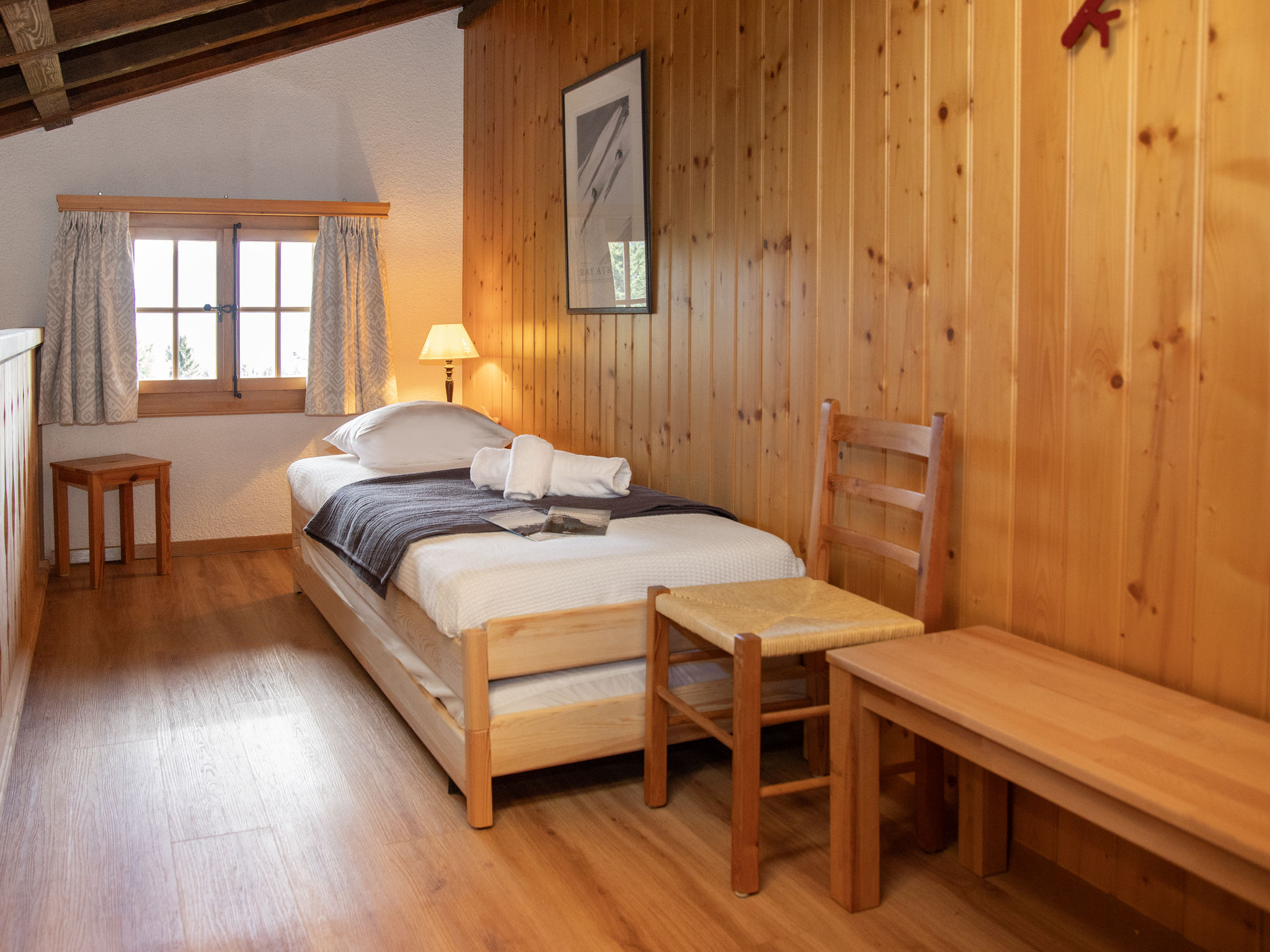 "Argentière 8", apt sous les toits 4 pièces 95 m2 sur 2 niveaux au 2ème étage, situation sud. Spacieux, complètement rénové en 2016, aménagement agréable et plaisant: séjour/salle à manger mansardé avec cheminée (uniquement à titre de décoration), TV (écran plat), chaîne stéréo et DVD. Sortie sur le balcon, orientée sud. 1 chambre avec 1 grand-lit (2 x 90 cm), bain/douche/WC. 1 chambre avec 2 lits (90 cm). Sortie sur le balcon. 1 petite chambre avec 2 lits (90 cm). Cuisine ouverte (four, lave-vaisselle, 4 plaques vitrocéramiques, grille-pain, bouilloire électrique, micro-ondes, congélateur, cafetière électrique, appareil à raclette, service à fondue (fondue au fromage)). Douche/WC. À l'étage supérieur: (échelle) 1 chambre, mansardée, ouverte hauteur plafond 100 - 210 cm avec 2 lits (90 cm). Balcon, situation sud. Mobilier de balcon. Superbe vue panoramique sur les montagnes et la vallée. A disposition: sèche-cheveux. Internet (Connexion WIFI, gratuit). Station d'accueil iPod. Garage No 8. Veuillez noter: sans ascenseur.