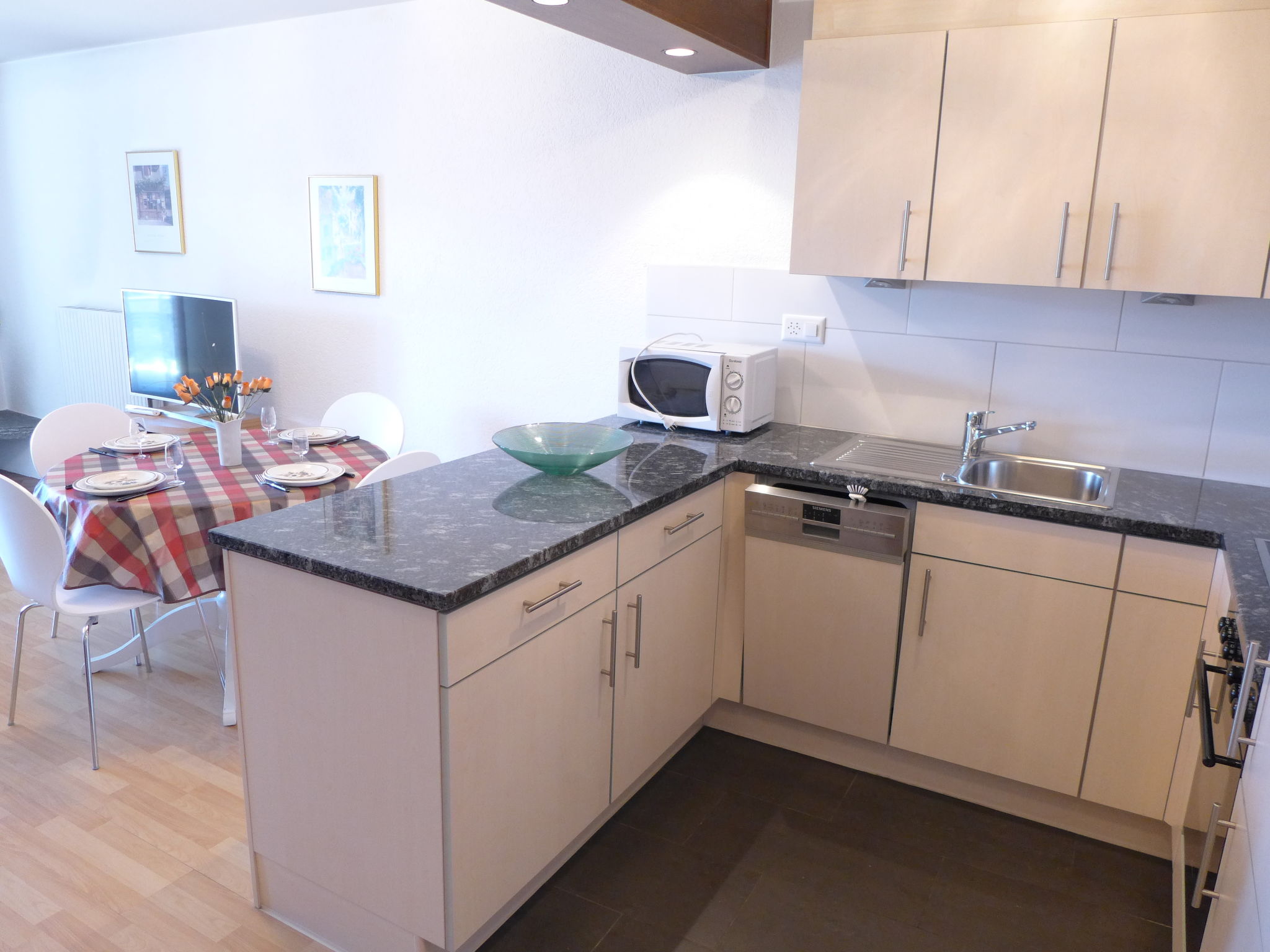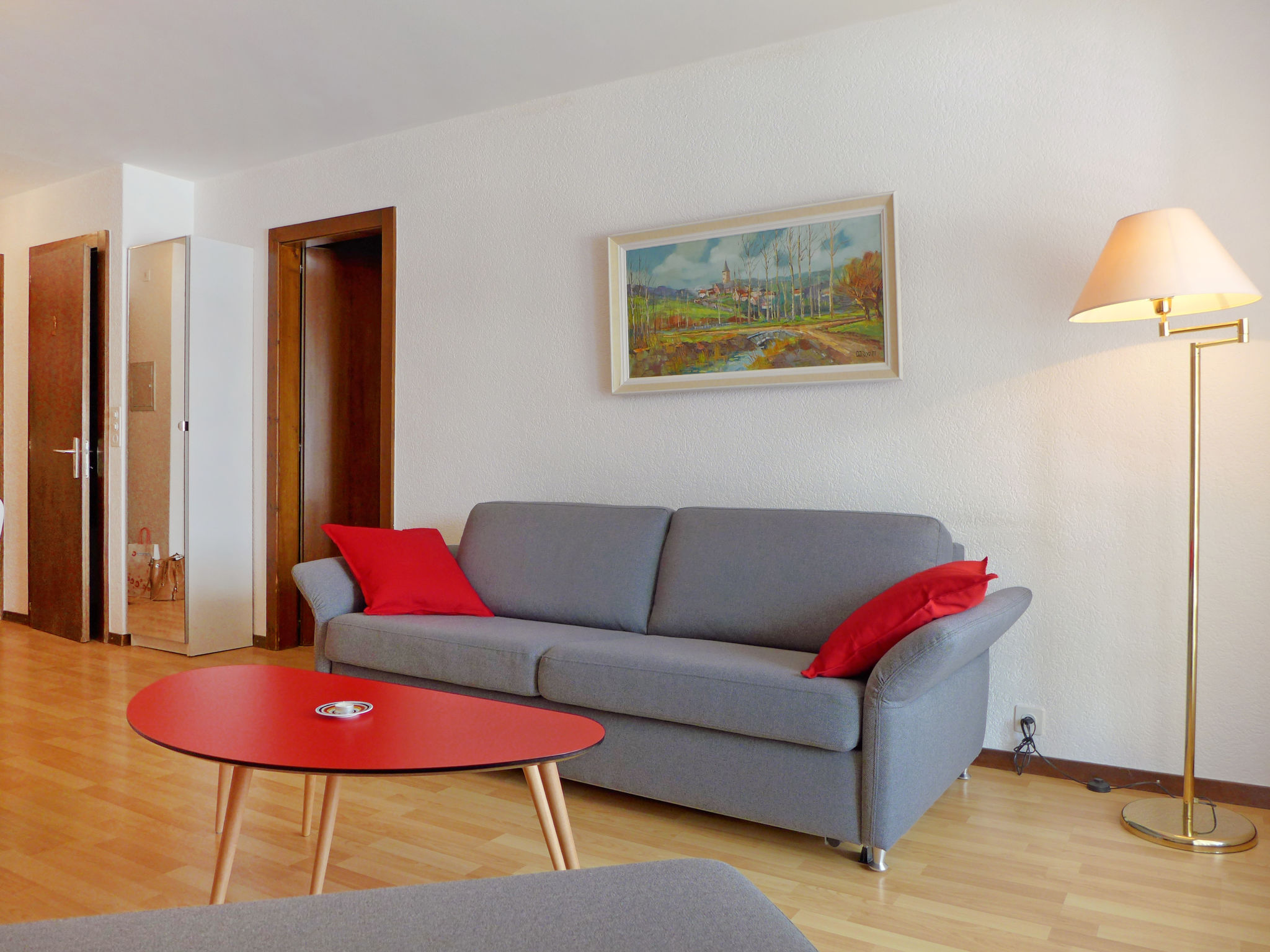 "Victoria B 7", apt 2 pièces 50 m2 au 2ème étage. Aménagement confortable: séjour/salle à manger avec 1 divan-lit (160 cm, longueur 200 cm), TV (câblée) (écran plat). Sortie sur le balcon. 1 chambre avec 2 lits (90 cm, longueur 190 cm). Sortie sur le balcon. Cuisine ouverte (four, lave-vaisselle, 4 plaques vitrocéramiques, grille-pain, bouilloire électrique, micro-ondes, cafetière électrique, Capsules pour machine à café (NESPRESSO) (NON INCLUSES), appareil à raclette, service à fondue (fondue au fromage)) avec bar. Salle de bains, WC séparé. Balcon 11 m2, situation sud. Mobilier de balcon, chaises longues (2). Belle vue sur les montagnes. A disposition: fer à repasser, sèche-cheveux. Internet (Connexion WIFI, gratuit). Garage No 7, hauteur 200 cm, largeur 230 cm. Veuillez noter: logement non-fumeur.