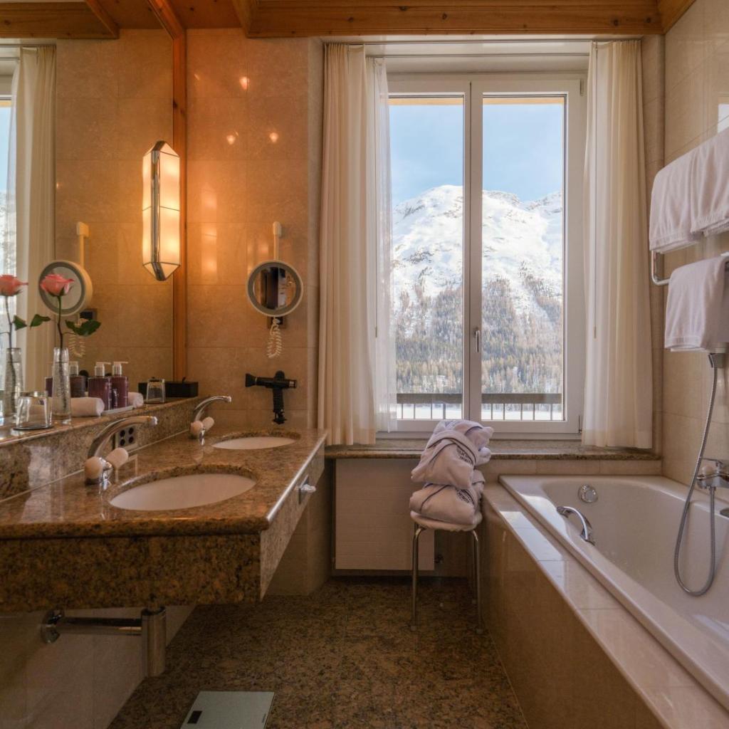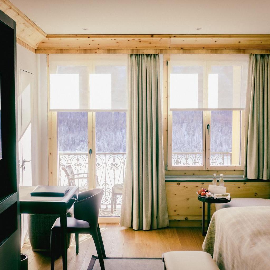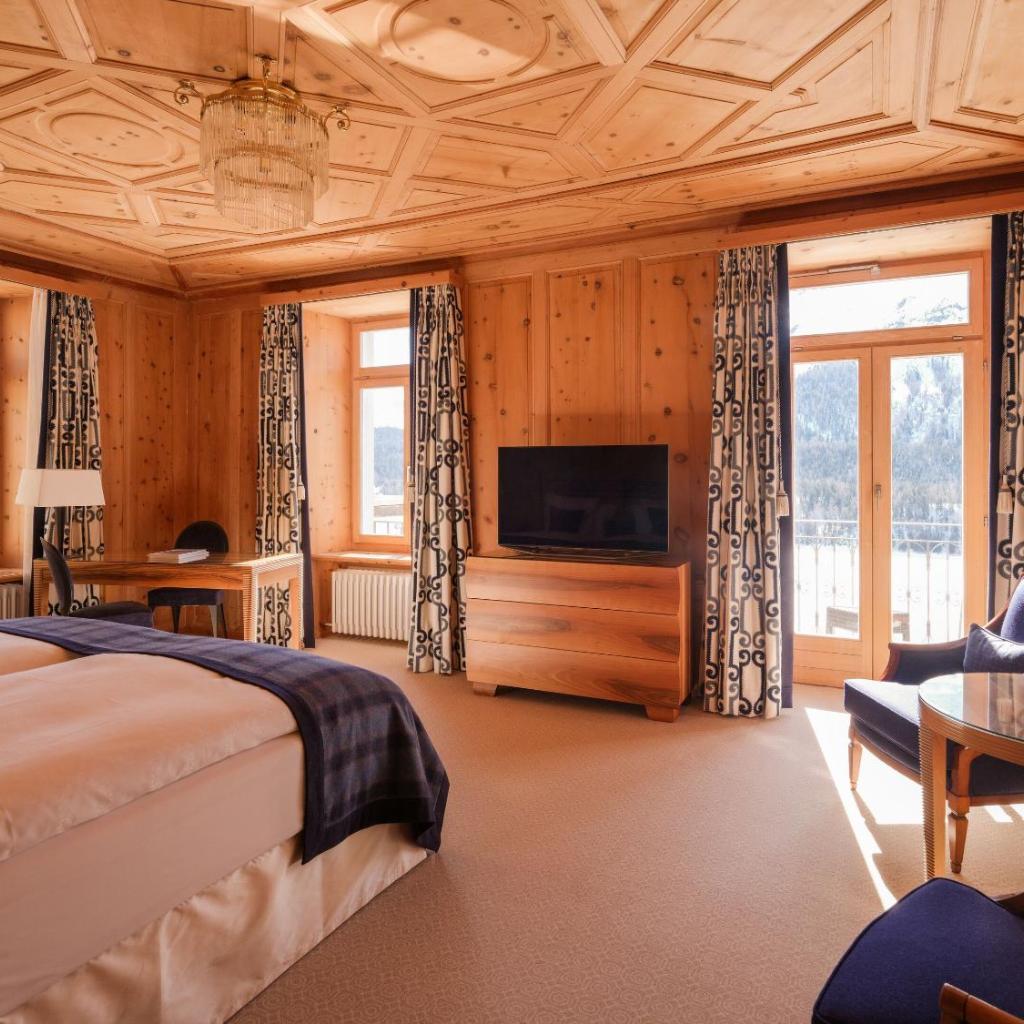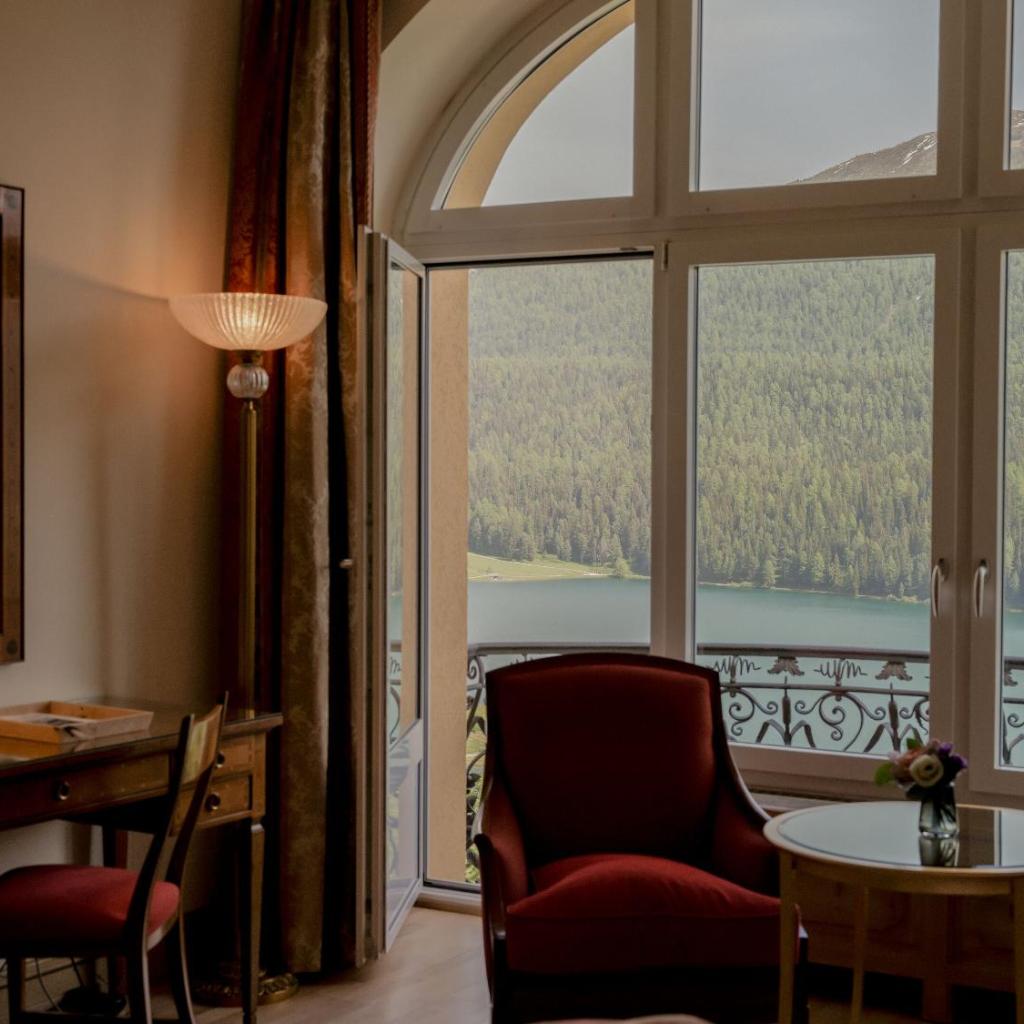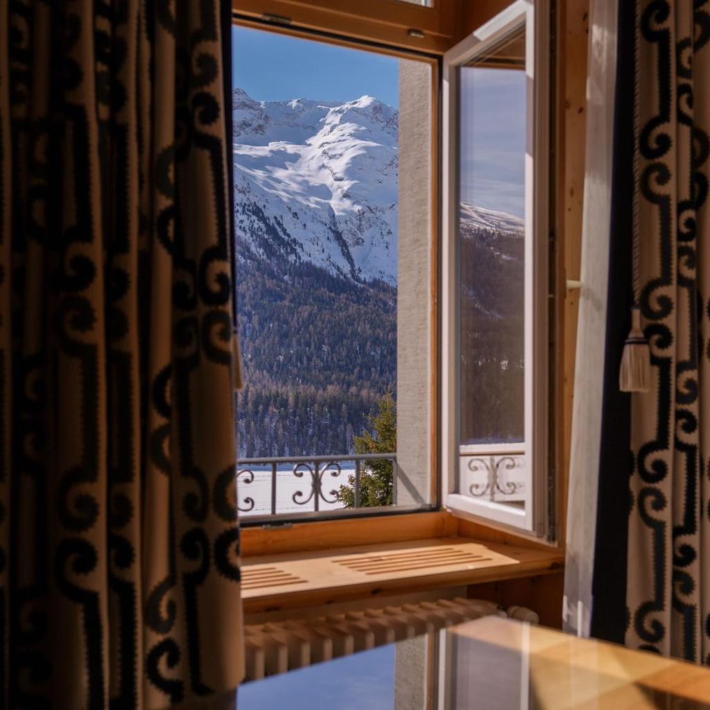 Jedes Zimmer bietet einen Blick auf die beeindruckende Berglandschaft. Aus den Zimmern auf der Südseite blicken Sie auf den St. Moritzersee, aus den Zimmern auf der Nordseite genießen Sie die Aussicht auf die Südseite des Berges Piz Nair und die Landschaft der Region Corviglia.