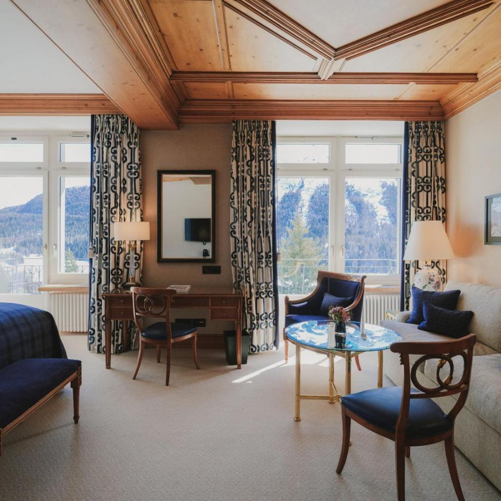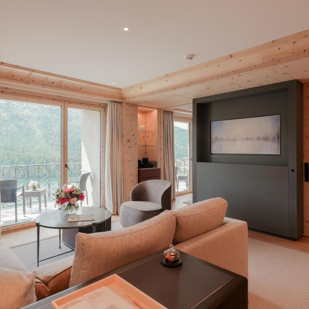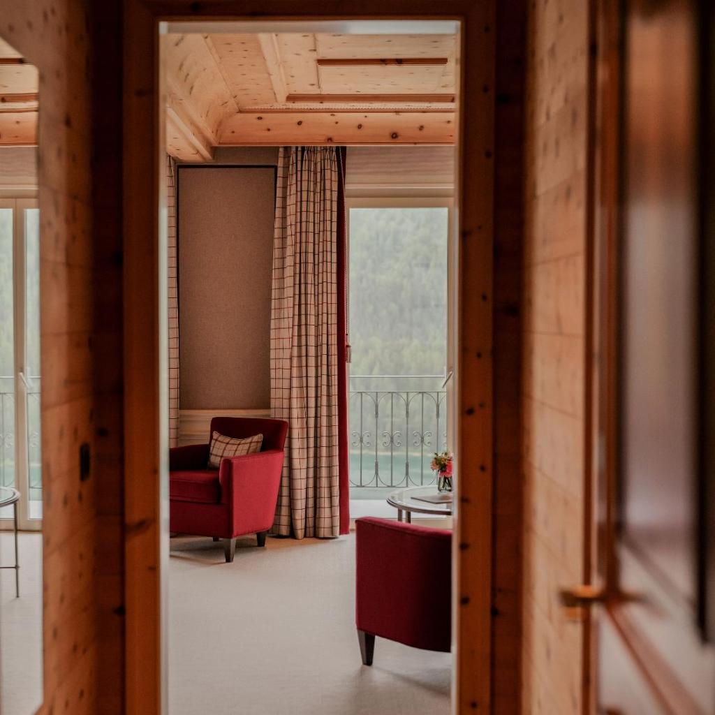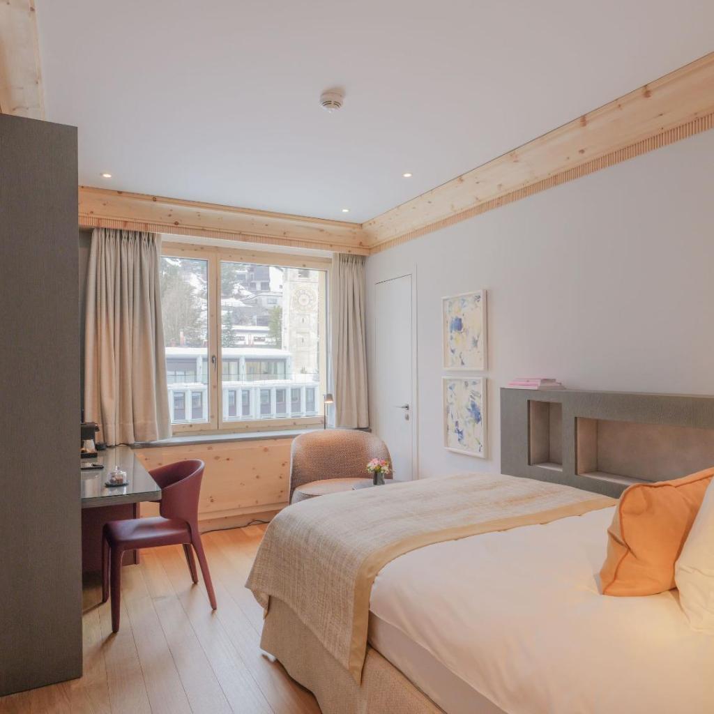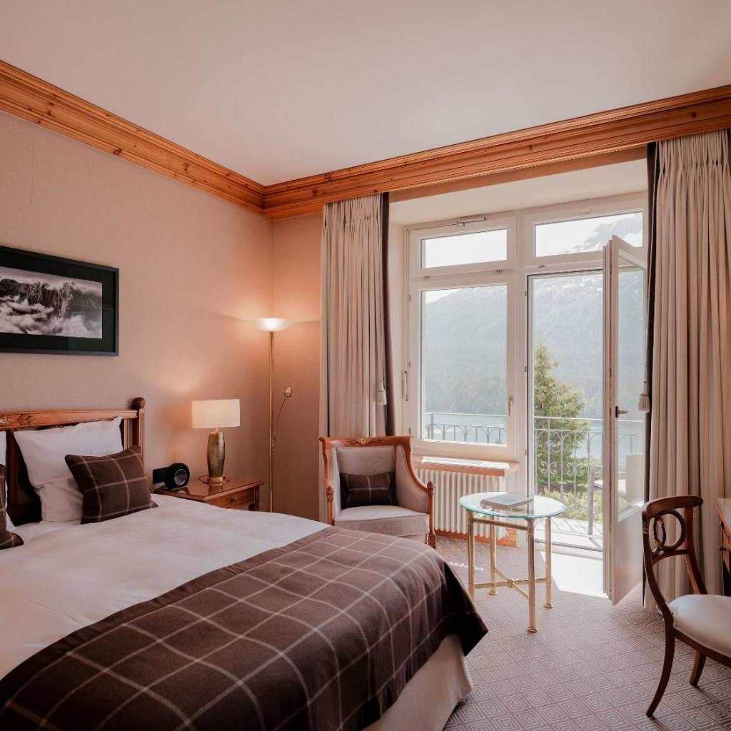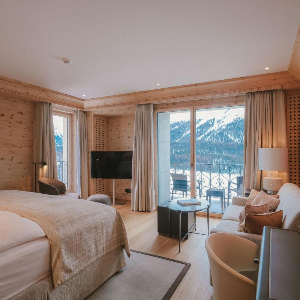 Jedes Zimmer bietet einen Blick auf die beeindruckende Berglandschaft. Aus den Zimmern auf der Südseite blicken Sie auf den St. Moritzersee, aus den Zimmern auf der Nordseite genießen Sie die Aussicht auf die Südseite des Berges Piz Nair und die Landschaft der Region Corviglia.