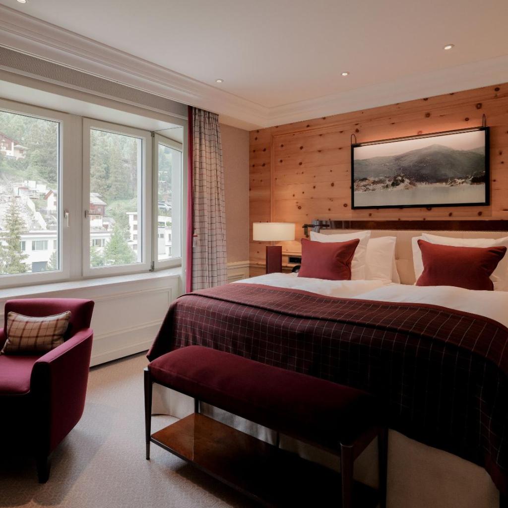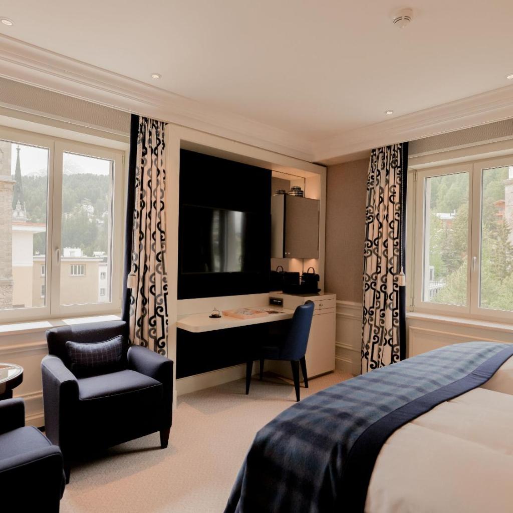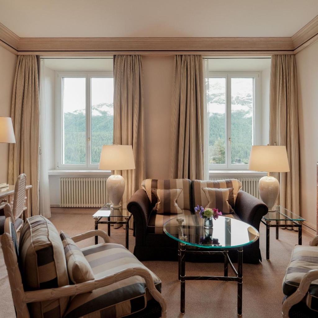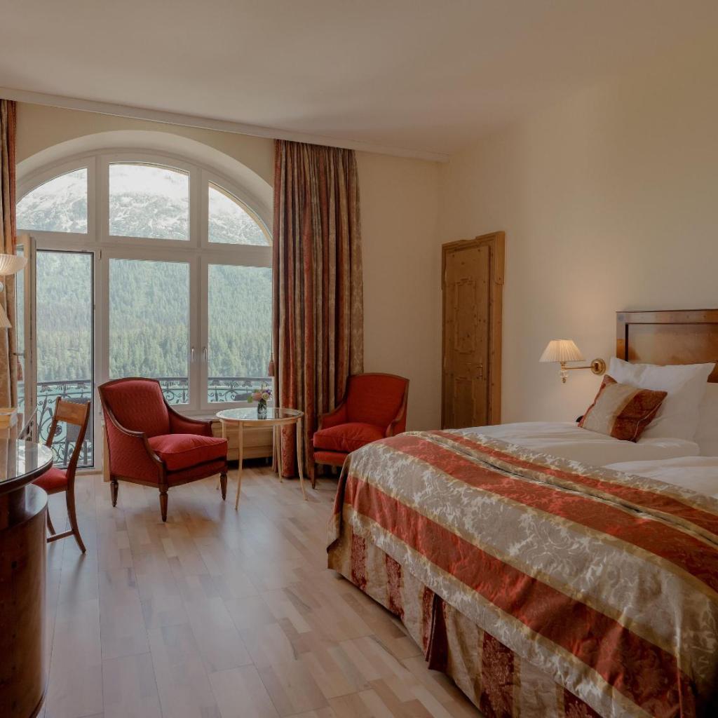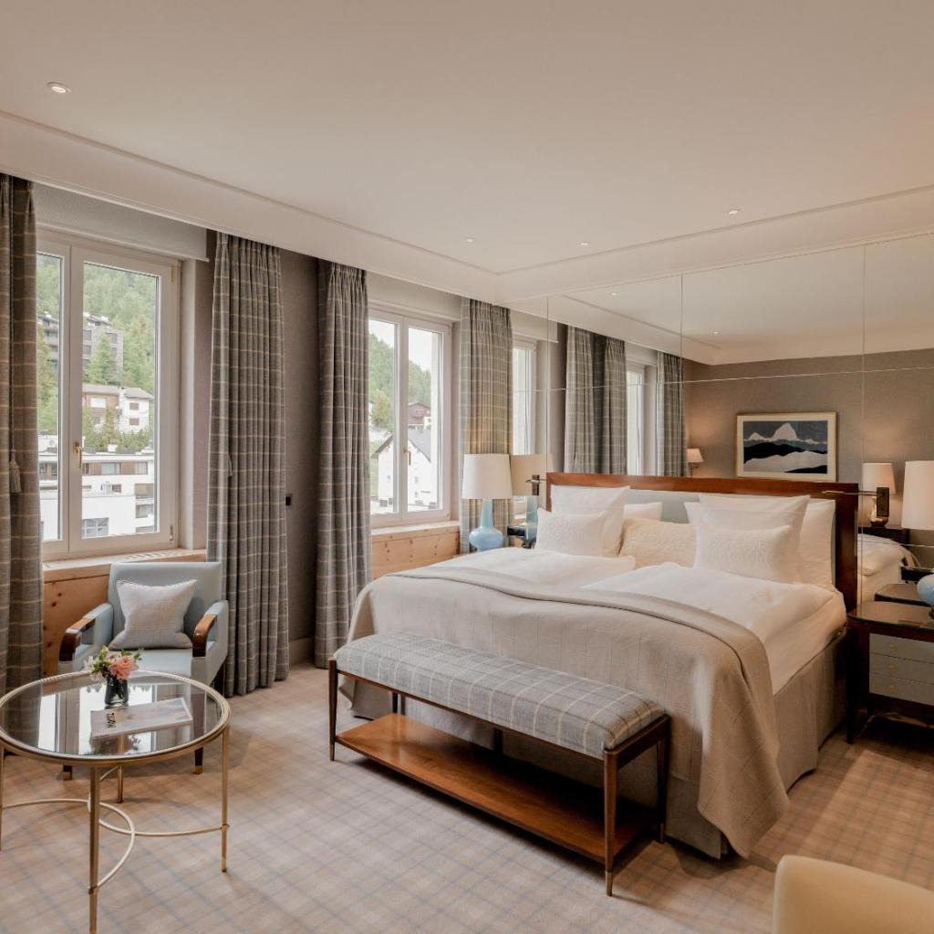 Jedes Zimmer bietet einen Blick auf die beeindruckende Berglandschaft. Aus den Zimmern auf der Südseite blicken Sie auf den St. Moritzersee, aus den Zimmern auf der Nordseite genießen Sie die Aussicht auf die Südseite des Berges Piz Nair und die Landschaft der Region Corviglia.