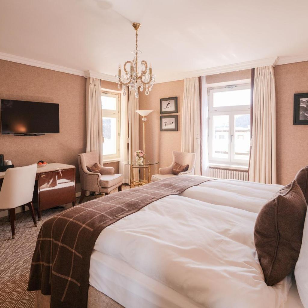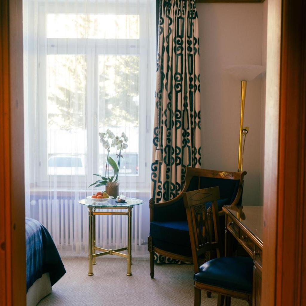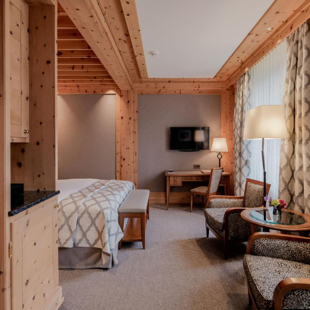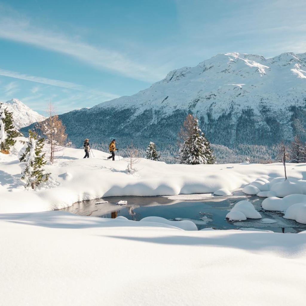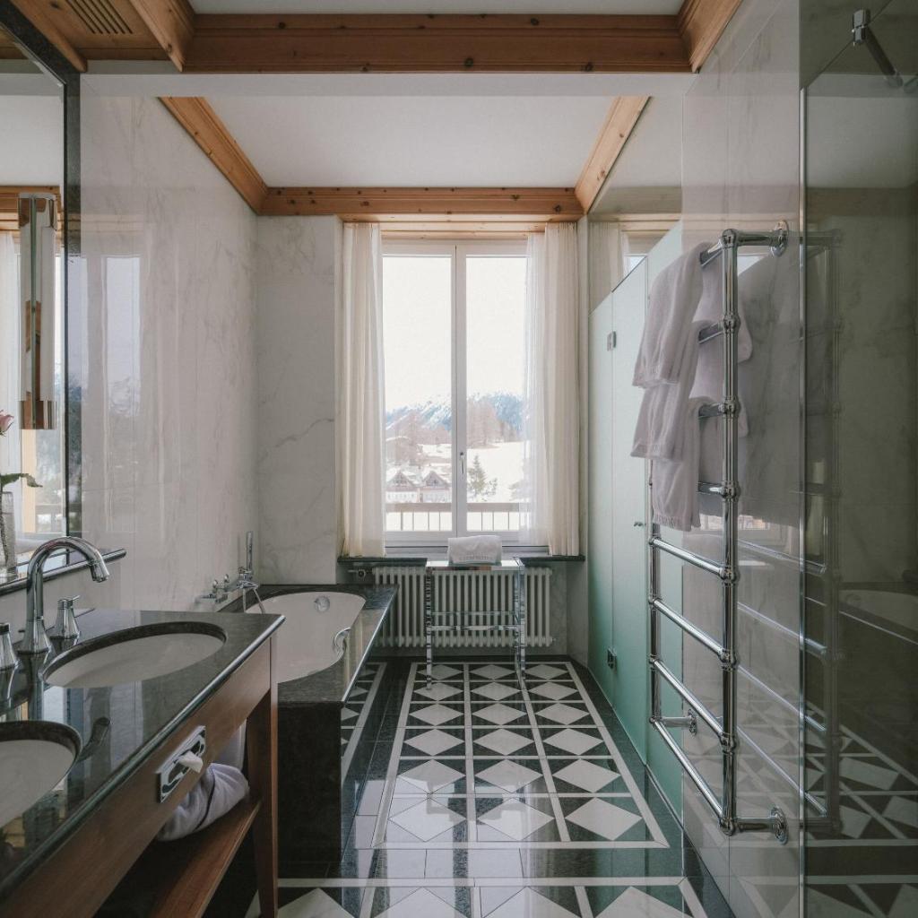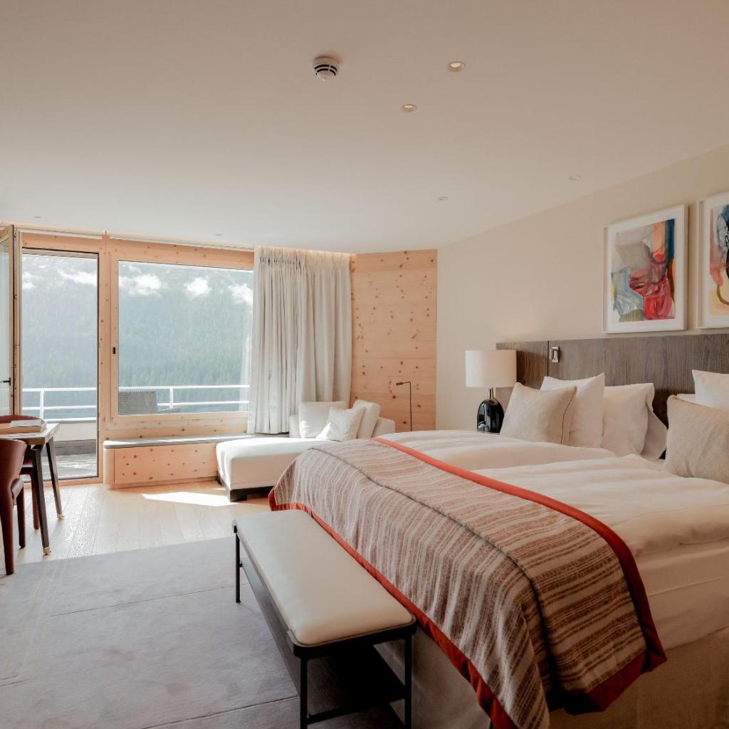 Jedes Zimmer bietet einen Blick auf die beeindruckende Berglandschaft. Aus den Zimmern auf der Südseite blicken Sie auf den St. Moritzersee, aus den Zimmern auf der Nordseite genießen Sie die Aussicht auf die Südseite des Berges Piz Nair und die Landschaft der Region Corviglia.
