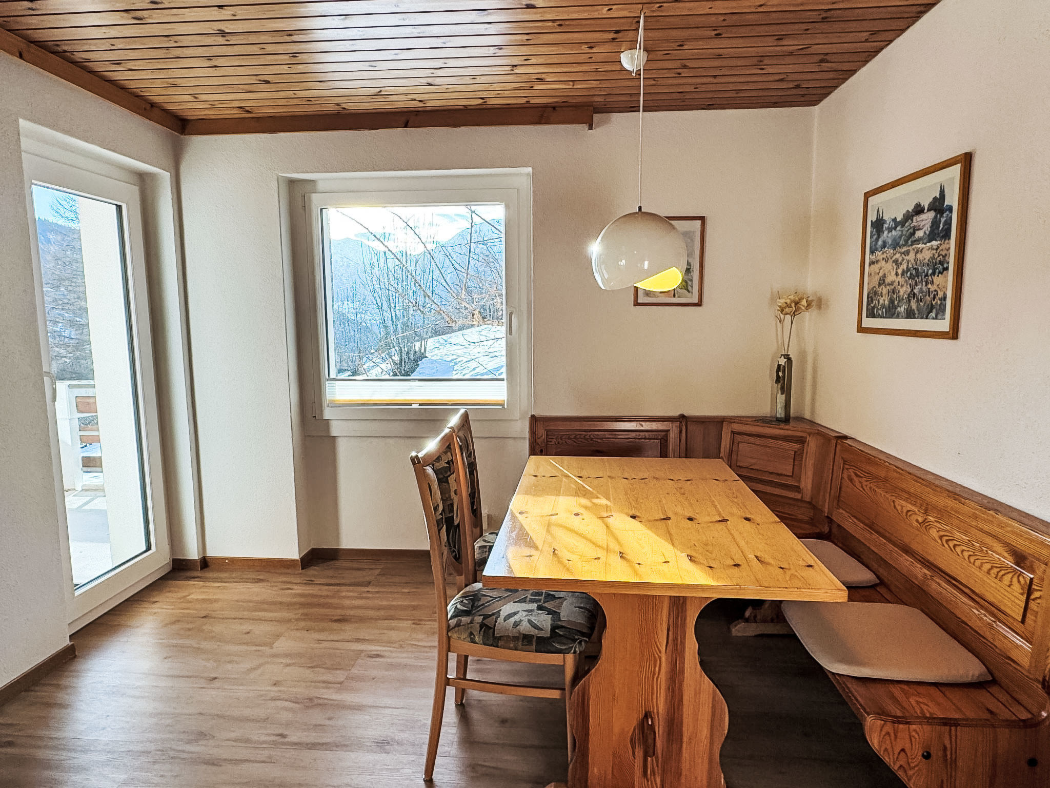 "Waldrand", apt 3 pièces 85 m2 au 1er étage. Spacieux et clair, aménagement de bon goût et plaisant: grand séjour/chambre à coucher avec Télévision numérique et chauffage électrique. Sortie sur le balcon. 1 chambre double avec 2 lits (90 cm, longueur 200 cm). 1 chambre avec 2 lits (90 cm, longueur 200 cm). Cuisine (3 plaques de cuisson, four, grille-pain, bouilloire électrique, cafetière électrique, appareil à raclette, service à fondue (fondue au fromage)). Douche/WC. Chauffage électrique. Grand balcon. Mobilier de balcon. Très belle vue sur les montagnes et la localité. A disposition: sèche-cheveux. Internet (Connexion WIFI, gratuit). Veuillez noter: logement non-fumeur.