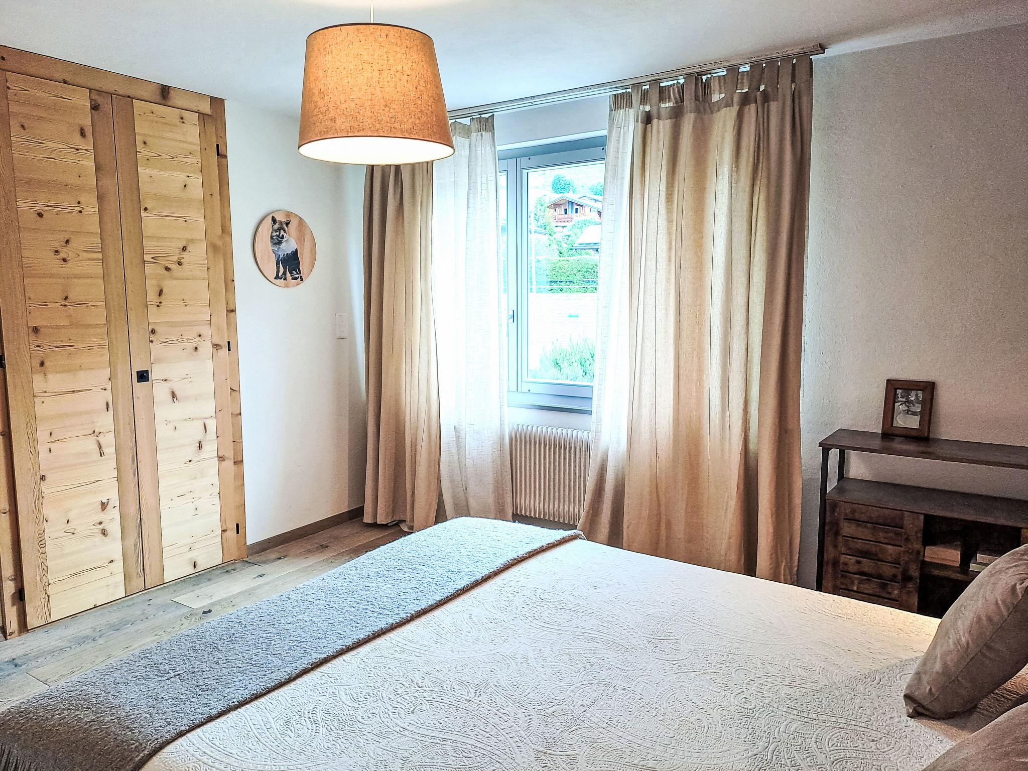 "Beausoleil 9", apt 3 pièces 80 m2 au 2ème étage. Complètement rénové en 2018, aménagement confortable et de bon goût: grand séjour/salle à manger avec TV (câblée). Sortie sur le balcon. 1 chambre avec 1 grand-lit (1 x 160 cm, longueur 200 cm). 1 chambre avec 2 lits (90 cm, longueur 200 cm). Grande cuisine ouverte (4 plaques de cuisson, four, lave-vaisselle, grille-pain, bouilloire électrique, cafetière électrique, Capsules pour machine à café (Nespesso) (NON INCLUSES), appareil à raclette). Douche/WC, WC séparé. Mobilier de balcon. Vue panoramique sur les montagnes. A disposition: lave-linge, sèche-linge. Internet (Connexion WIFI, gratuit). Place de parking No 9 (1 Voiture). Veuillez noter: logement non-fumeur.