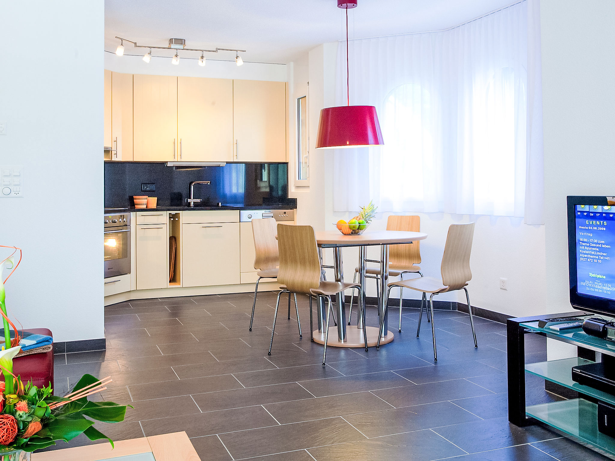 Petite résidence confortable "Iris B", de 5 étages, année de construction 2008. Dans la localité, situation centrale, ensoleillée, surélevée, dans une rue. Infrastructures de la résidence: sauna, salle fitness, bains de vapeur (hammam), bain à remous , ascenseur, chauffage central, lave-linge, sèche-linge (en commun, en sus). Accès en voiture jusqu'à la maison (route de montagne). Garage en commun, parking public 300 m. Magasins 400 m, magasin d'alimentation 300 m, centre commercial 400 m, restaurant 100 m, bar, café 400 m, arrêt de bus "Leukerbad, Obere Maressen" 250 m, centre thermal 400 m. Train de montagne, pistes de ski 600 m. Arrêt du ski-bus 150 m, patinoire 1 km. Un chalet de remise en forme et de détente est à la disposition de tous les résidents parmi les maisons Iris. Espace détente avec sauna finlandais, bain de vapeur aromatique, bain à remous. La Leukerbad Card Plus est incluse dans la réservation. La Leukerbad Card Plus comprend les services suivants : utilisation gratuite du bus local Ringjet, accès gratuit au domaine skiable pour les enfants Erli, utilisation gratuite du centre sportif (badminton, tennis, squash, billard, ping-pong, patinage, football, football en salle, mini-golf, bloc, etc.), 15 % de réduction sur l'achat du forfait et du bain de neige. 10% de réduction sur les abonnements et les entrées multiples aux bains publics.