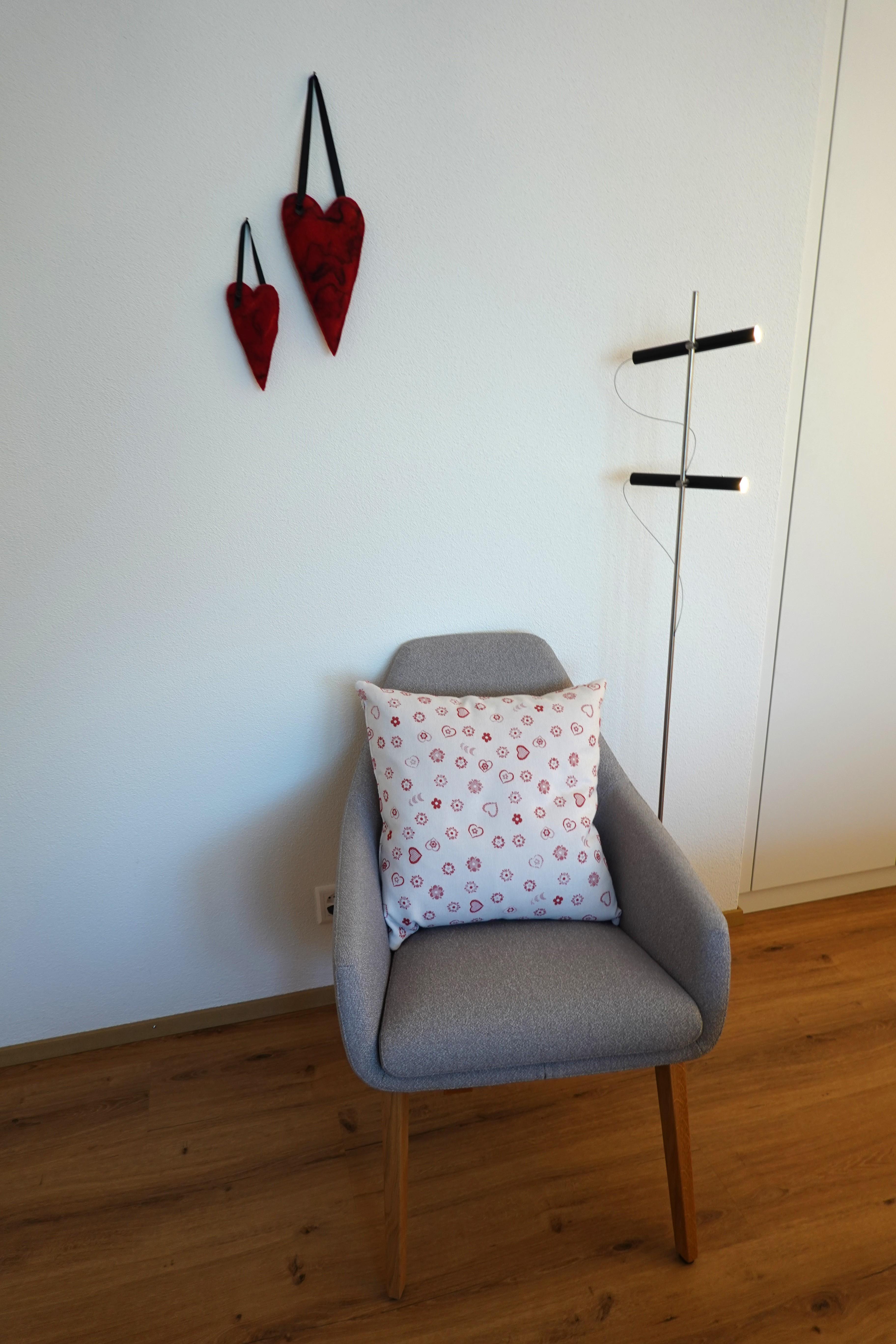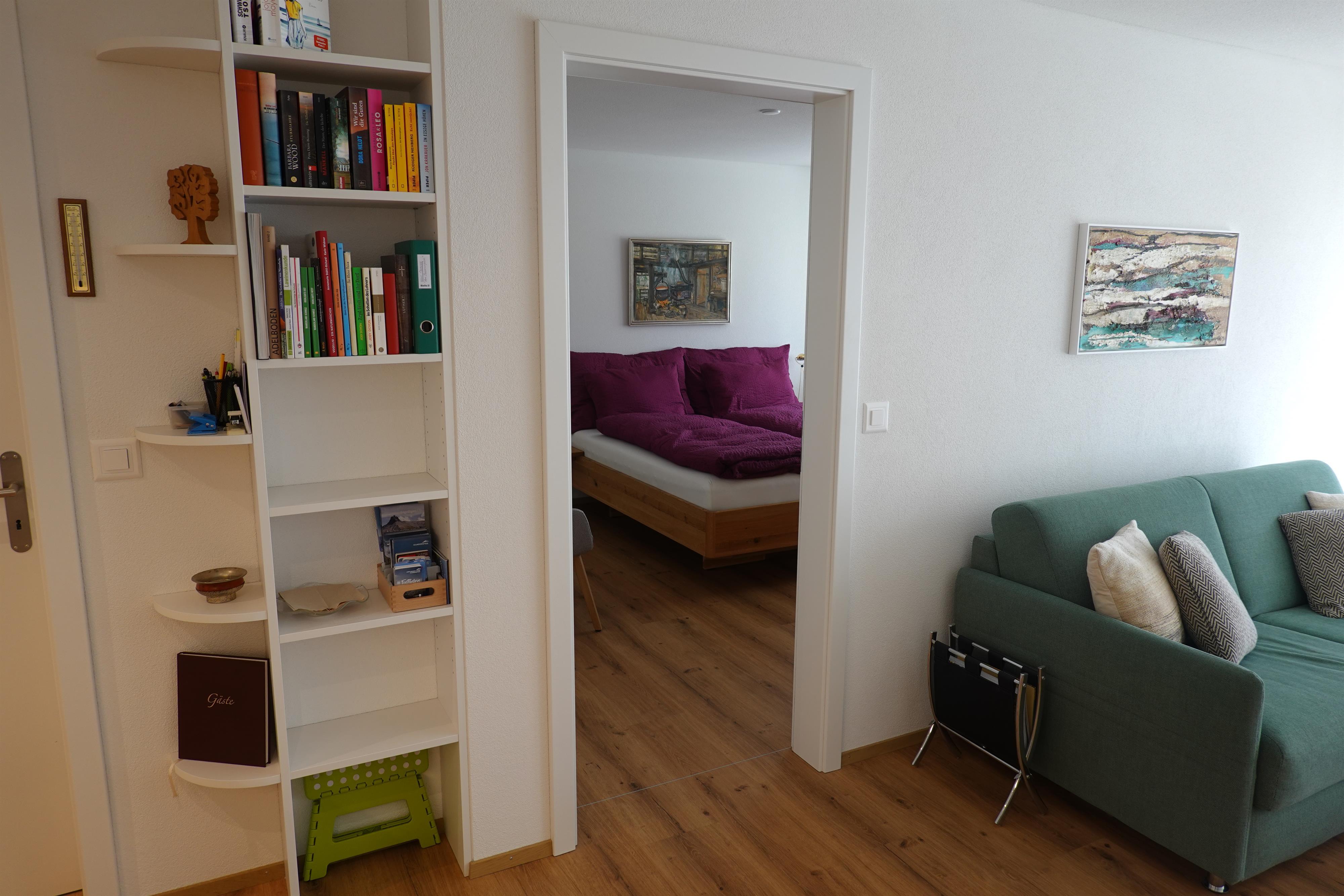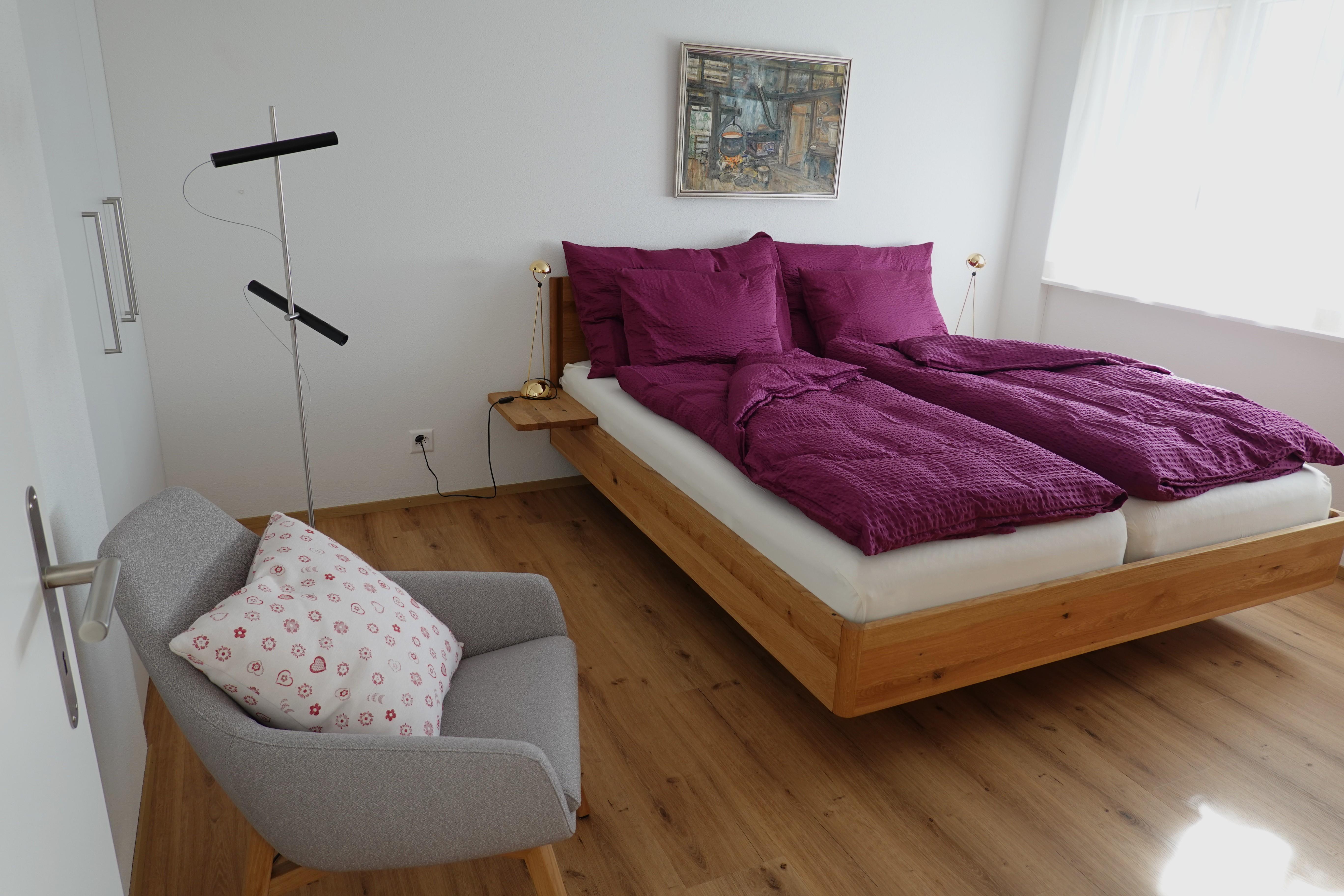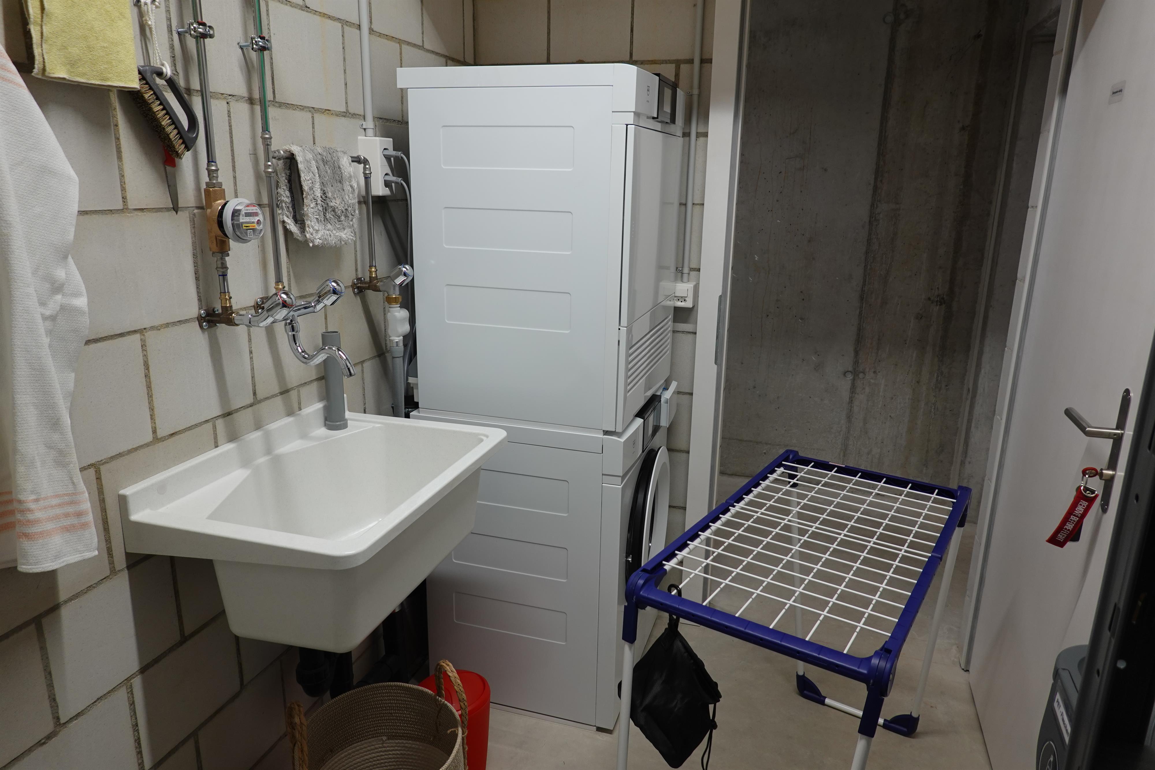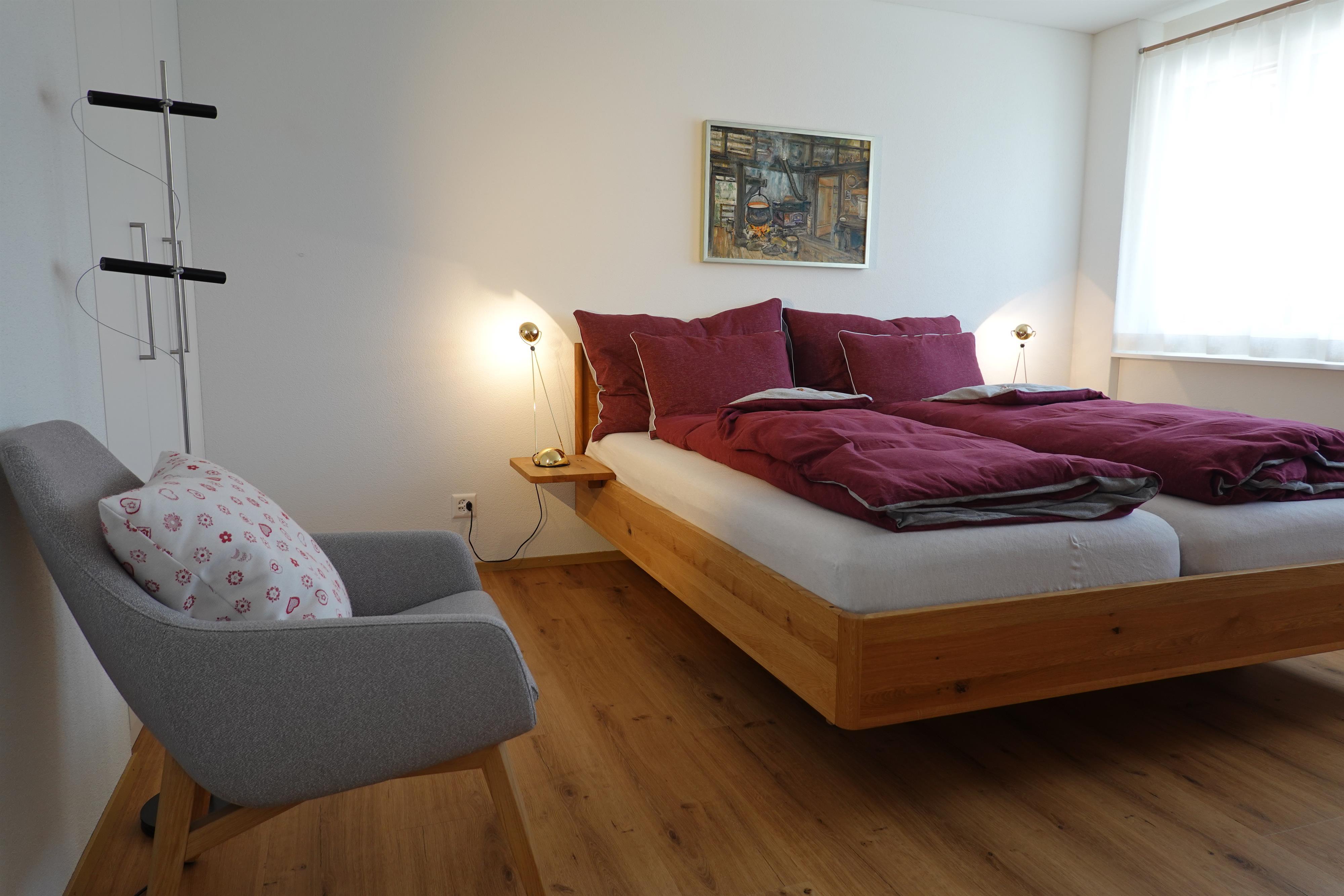 L'appartement moderne dispose d'une entrée avec vestiaire, d'une chambre à coucher, d'un salon avec cuisine ouverte, d'une salle de bain avec douche/WC et d'un chauffage au sol. L'ascenseur vous amène à votre cave avec la machine à laver/tumbler et à votre place de parking privé dans le garage. Station de recharge pour voitures électriques au LWA tout proche. L'appartement est aménagé d’une manière fonctionnelle et pratique et peut accueillir confortablement 2 personnes. Dans la chambre à coucher se trouvent un lit double (180x200), une armoire paysanne ainsi qu'un fauteuil avec un lampadaire. Si une troisième personne souhaite séjourner, le canapé du salon peut être transformé aisément en un canapé-lit confortable (140x200), voir «Bon à savoir». La cuisine ouverte est équipée d'un réfrigérateur/congélateur, d'une plaque de cuisson vitrocéramique, d'un four/steamer et d'un lave-vaisselle (un four micro-ondes sur demande). Sur la terrasse se trouvent une table de jardin avec des chaises, deux chaises longues, un coffre de jardin avec des coussins et un parasol.