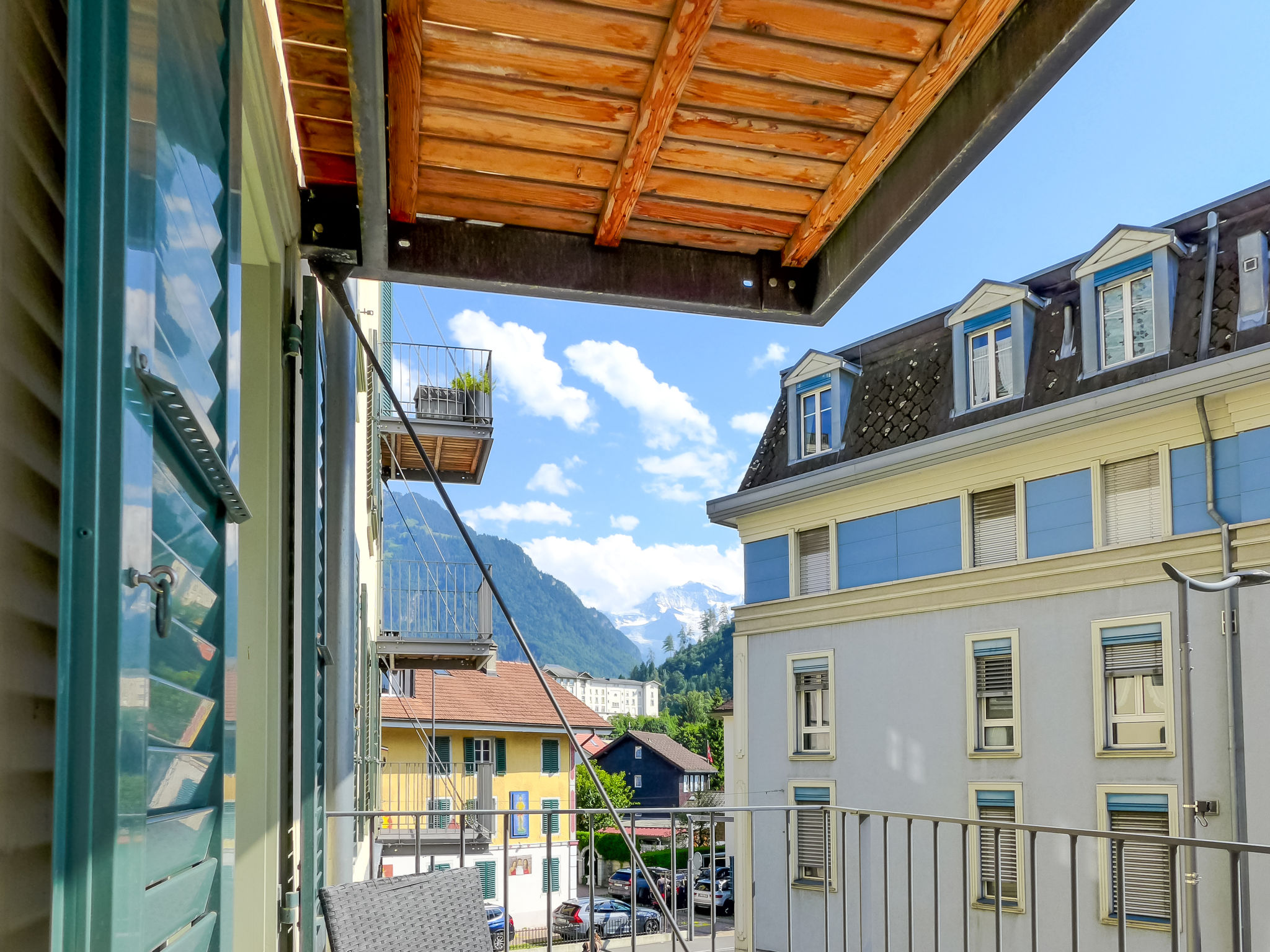Interlaken: Belle, grande petite résidence "Residence National". Au centre d'Interlaken, situation centrale, animée. Infrastructures de la Maison: ascenseur, chauffage central. Magasins 50 m, supermarché 600 m, centre commercial 50 m, restaurant 10 m, bar 5 m, café 50 m, arrêt de bus "Centralplatz oder Sonnenhof" 150 m, gare ferroviaire "Interlaken West" 600 m, piscine 1 km, piscine couverte 1 km, plage aménagée 3 km. Terrain de golf (18 trous) 4.5 km, tennis 200 m, golf miniature 1 km, centre équestre 1.5 km, centre sportif 200 m, train de montagne 800 m, remontées mécaniques 12 km. Arrêt du ski-bus 300 m, patinoire 100 m, jeux pour enfants 150 m. Attractions à proximité: Jungfraujoch, Schilthorn, Tell Freilichspiele. Les domaines skiables de renommée sont facilement accessibles: Wengen - Kleine Scheidegg, Grindelwald - First, Mürren - Schilthorn. Les lacs connus sont facilement accessibles: Thunersee, Brienzersee. Région de randonnées: Jungfrau Region. Veuillez noter: bien convenant à 2 adultes + 2 enfants. Ski-bus gratuit. Service de navette gratuite desservant le domaine skiable Grindelwald. Veuillez noter: Déchargement et chargement des bagages à la location de vacances.