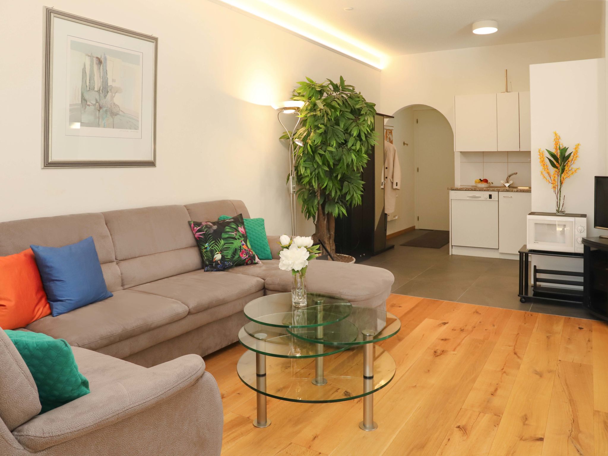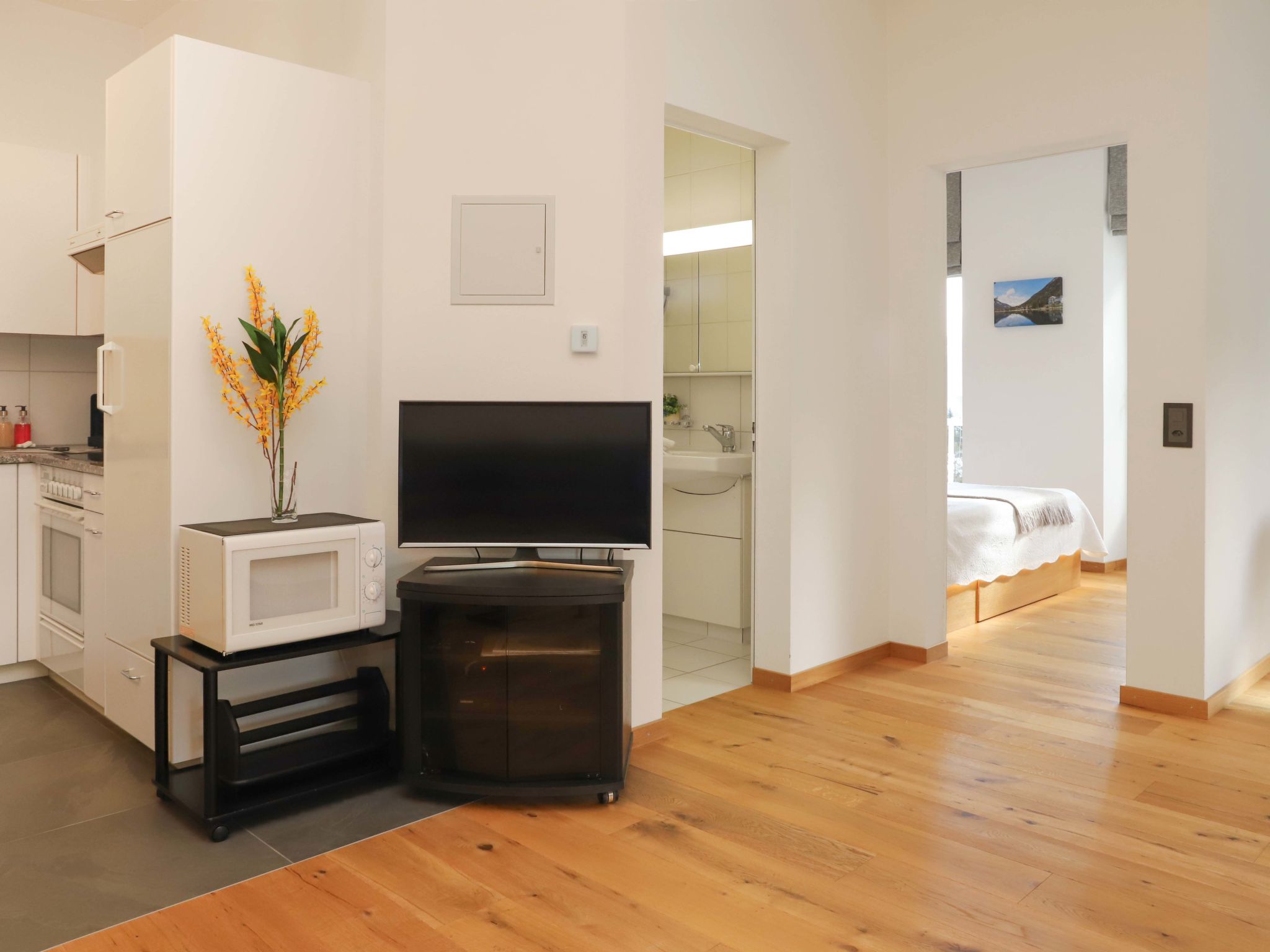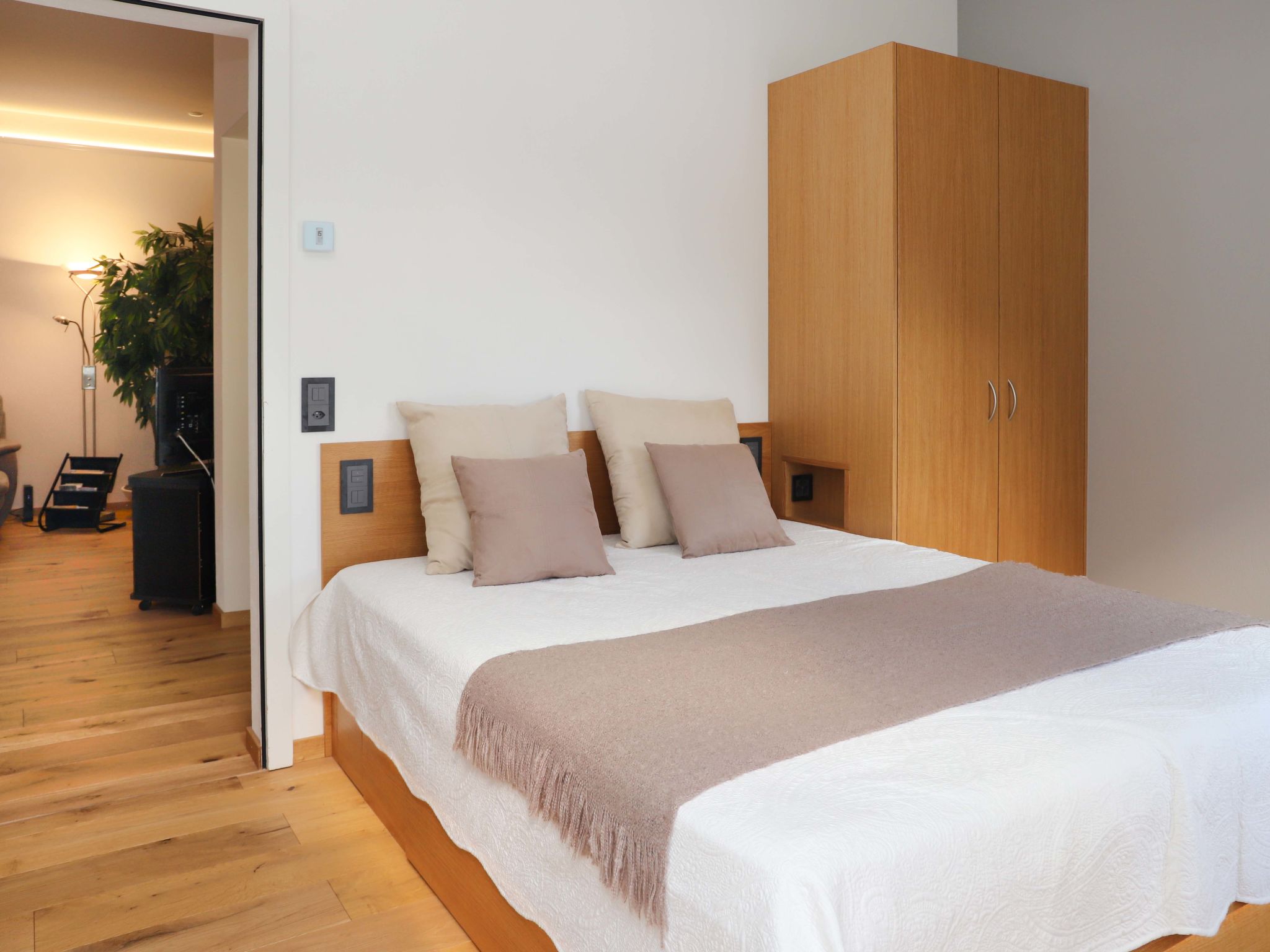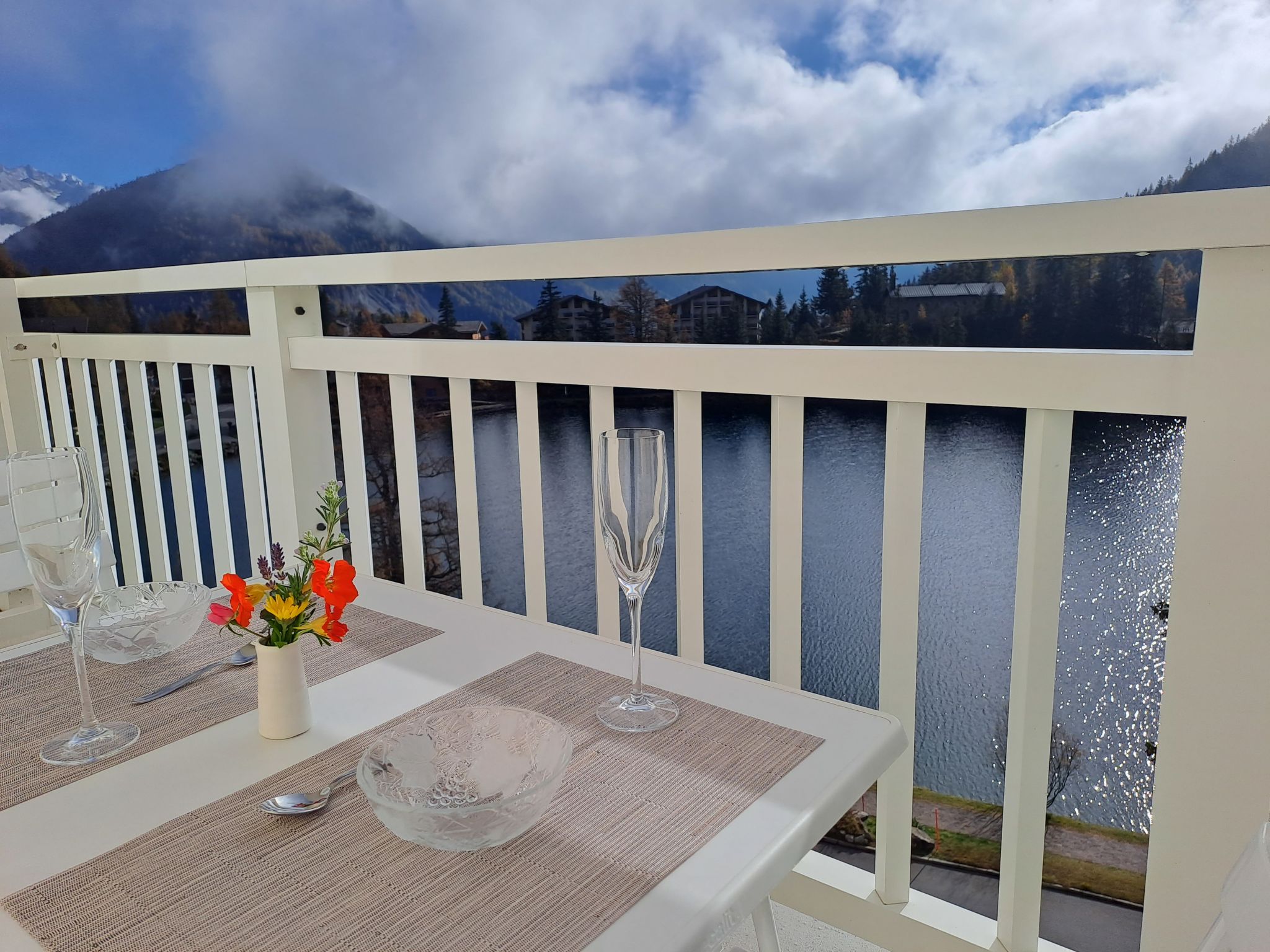 "Alpes et Lac 40", apt 3 pièces 65 m2 au 4ème étage. Spacieux et clair, aménagement confortable et agréable: grand séjour/salle à manger avec cheminée et TV (câblée). Sortie sur le balcon. 1 chambre avec 1 grand-lit (1 x 160 cm, longueur 200 cm). Sortie sur le balcon. 1 grande chambre avec 1 grand-lit (1 x 160 cm, longueur 200 cm). Sortie sur le balcon. Coin cuisine (four, lave-vaisselle, 4 plaques vitrocéramiques, micro-ondes, cafetière électrique, Capsules pour machine à café (Delizio) (NON INCLUSES), appareil à raclette, service à fondue (fondue chinoise, fondue au fromage)). Bain/WC, double vasque. Superbe vue panoramique sur le lac et les montagnes. A disposition: chaise haute pour enfant, lit bébé, sèche-cheveux. Internet (Connexion WIFI, gratuit). Garage No 32. Borne de recharge électrique. Veuillez noter: logement non-fumeur. Les deux derniers étages sont accessibles par un escalier extérieur.