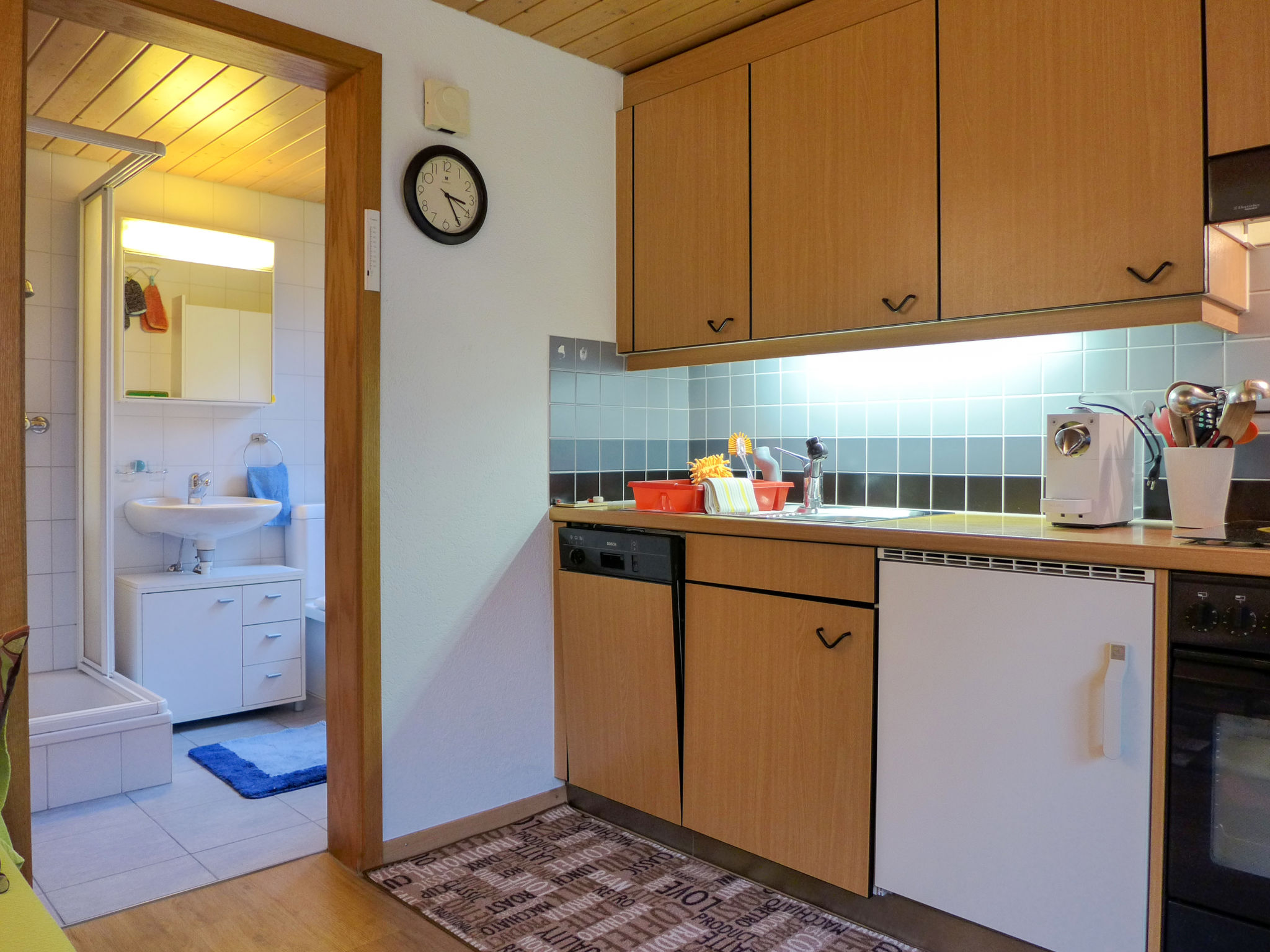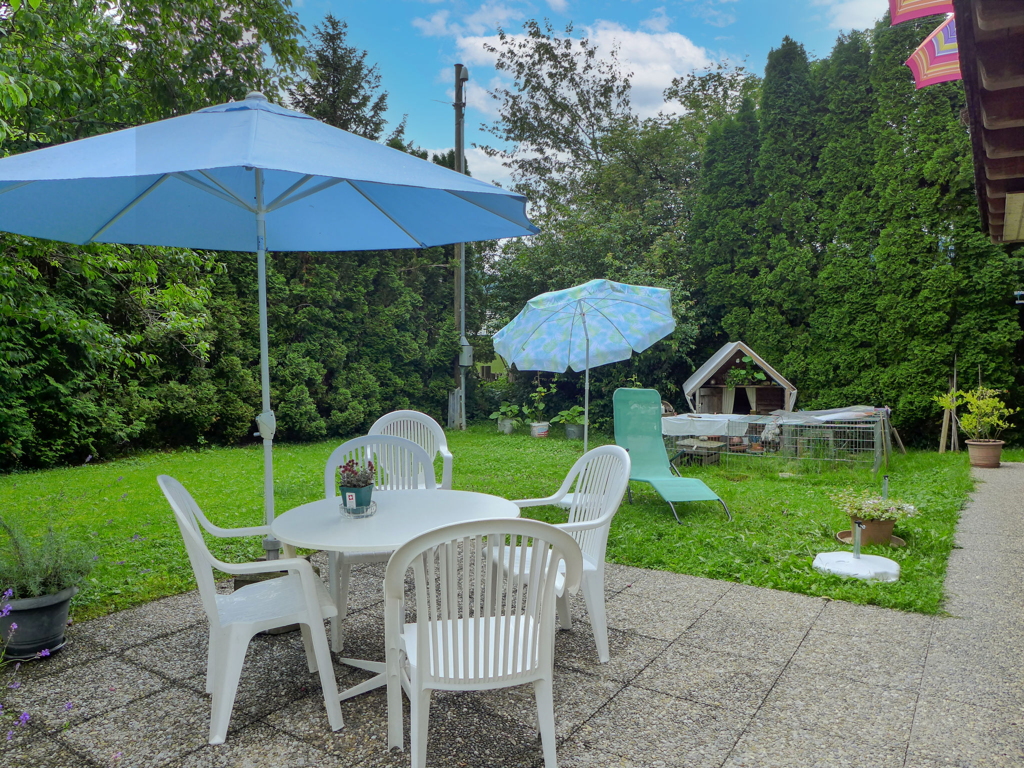 "Erika", apt 2 pièces 35 m2, au rez-de-chaussée. Aménagement fonctionnel et plaisant: séjour/salle à manger avec 1 divan-lit, table pour les repas et TV (satellite) (écran plat), radio. Sortie sur le jardin. 1 chambre avec 2 lits (90 cm, longueur 200 cm). Cuisine ouverte (four, lave-vaisselle, 4 plaques vitrocéramiques, grille-pain, bouilloire électrique, micro-ondes, cafetière électrique, Capsules pour machine à café (Delizio) (NON INCLUSES), appareil à raclette, service à fondue (fondue au fromage)). Douche/WC. Grande terrasse. Meubles de terrasse, barbecue, chaises longues. Vue partielle sur les montagnes et les alentours. A disposition: lave-linge, fer à repasser, sèche-cheveux. Internet (Connexion WIFI, gratuit). Place de parking. Veuillez noter: logement non-fumeur.
