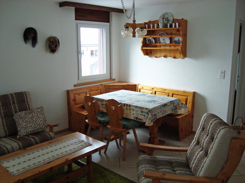 Appartement 3 pièces: salle de séjour, cuisine, 1 chambre à deux lits, 1 chambre avec lits superposés, douche/WC, balcon, radio, WiFi gratuit, TV. Garage ou place de parc disponible.