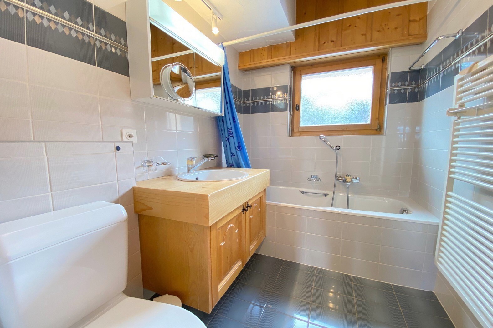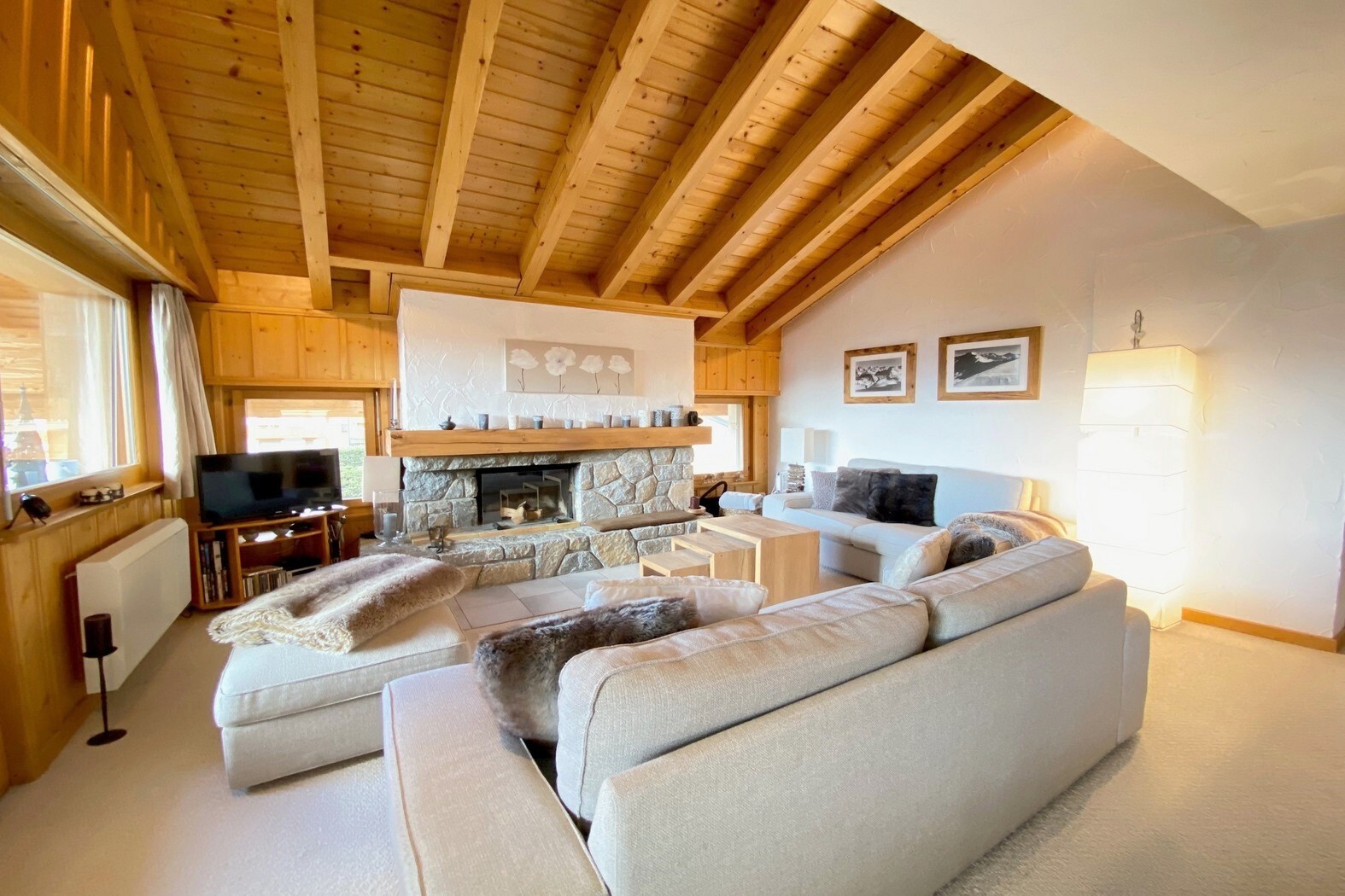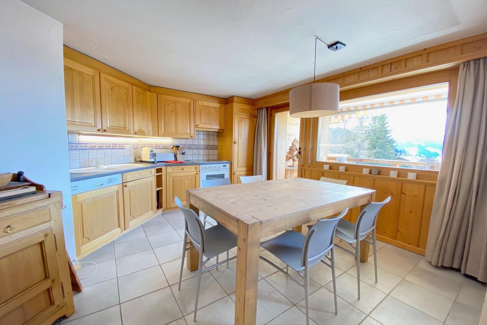 Bel appartement au dernier étage d'un immeuble proche de la piste des Esserts et du Rouge. Séjour avec cheminée, cuisine agencée ouverte sur le coin à manger, balcon sud avec vue magnifique, 2 chambres doubles, 1 salle de douche/WC et 1 salle de bains. 2 places de parc dans le garage et local à skis. Les animaux ne sont pas admis. TV par câble & Wifi.