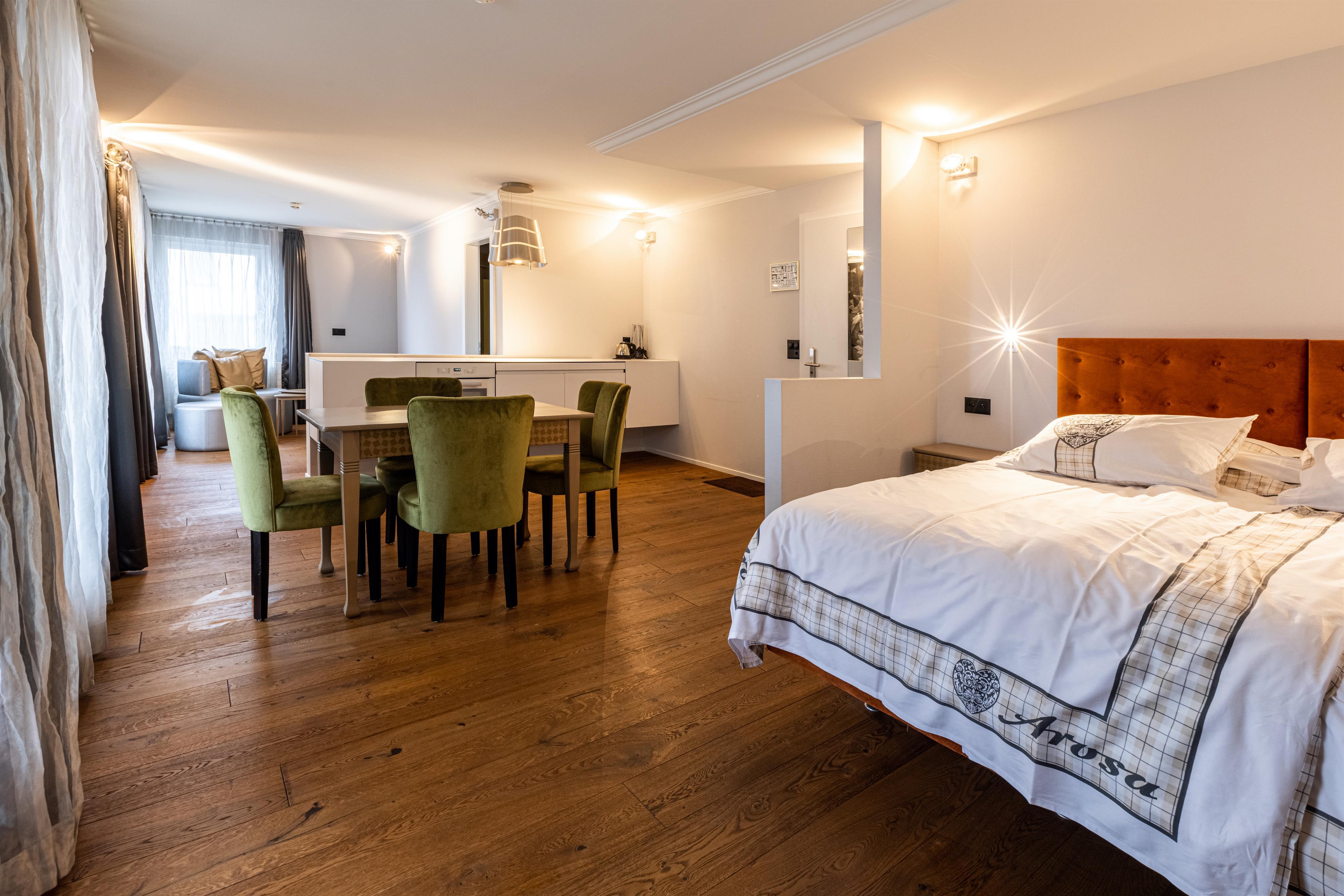 Nous nous concentrons sur la durabilité! Pour cette raison, nous nous débarrassons de la télévision, de la radio et du téléphone dans la chambre. Dans chaque chambre, nous mettons à disposition un iPad gratuit. Malgré les belles expériences de la nature à Arosa, nous vous offrons une connexion Internet gratuite.
