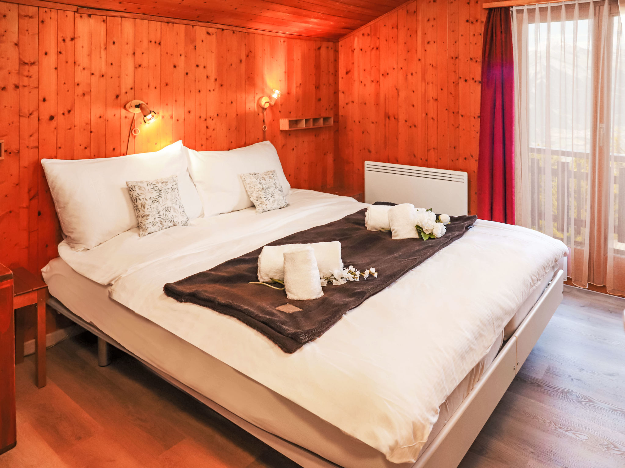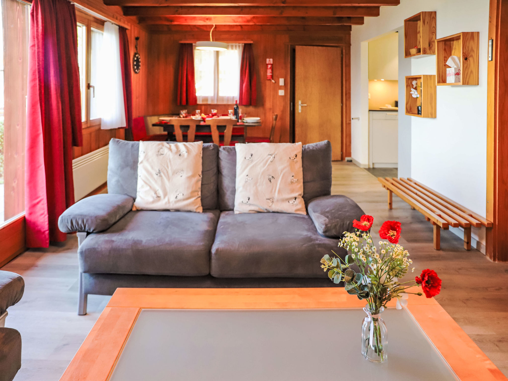 "Dorine", chalet 4 pièces 80 m2, situation nord. Logement idéal pour 2 adultes + 3 enfants. Partiellement rénové en 2021, aménagement fonctionnel et agréable: entrée. Séjour/salle à manger avec TV (câblée). Sortie sur la terrasse. Cuisine ouverte (four, lave-vaisselle, 4 plaques à induction, grille-pain, bouilloire électrique, cafetière électrique, Capsules pour machine à café (Nespresso) (NON INCLUSES), appareil à raclette, service à fondue (fondue au fromage)). WC séparé. Chauffage électrique. À l'étage supérieur: 2 chambres, chaque chambre avec: 2 lits (90 cm, longueur 200 cm). Sortie sur le balcon, orientée nord. 1 petite chambre d'enfants avec 1 lit (120 cm, longueur 190 cm). Douche/WC. Balcon, situation nord, terrasse, situation nord. Meubles de terrasse, barbecue. Belle vue sur les montagnes. A disposition: lave-linge, sèche-linge, lit bébé. Internet (Connexion WIFI, gratuit). Place de parking (2 Voitures) près de la maison. Veuillez noter: maison non-fumeur. Maximum 1 animal/ chien autorisé.