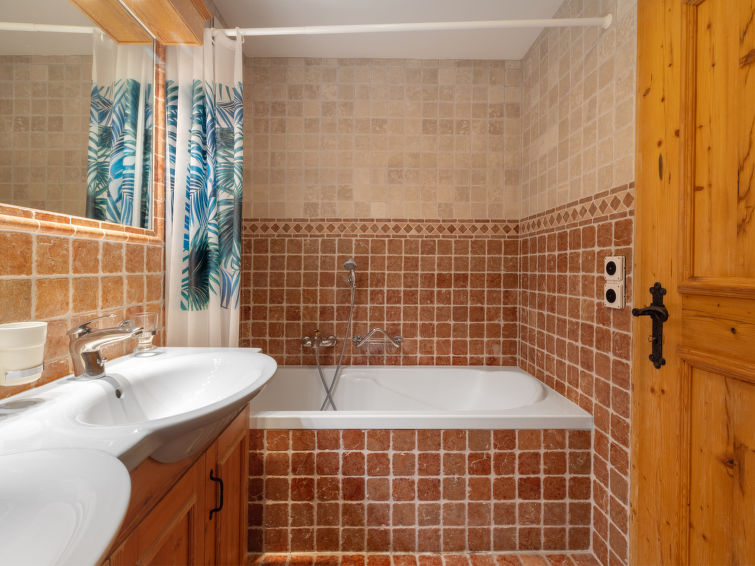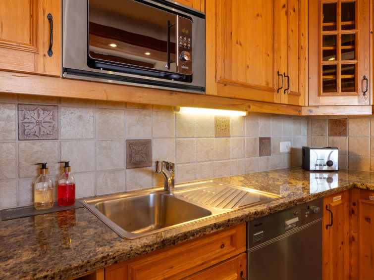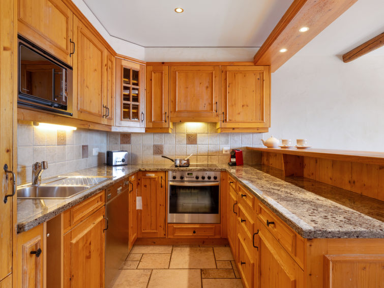 "Résidence Le Chalet 5", apt 2 pièces 68 m2 au 1er étage. Logement idéal pour 2 adultes + 2 enfants. Aménagement très confortable: séjour/salle à manger avec baie vitrée orientée sud avec 1 divan-lit (140 cm, longueur 200 cm), cheminée, TV (câblée) et volet roulant électrique. Sortie sur le balcon. 1 chambre avec 1 lit double (2 x 90 cm, longueur 190 cm). Sortie sur le balcon. Cuisine/séjour (four, lave-vaisselle, 4 plaques vitrocéramiques, grille-pain, bouilloire électrique, micro-ondes, congélateur, cafetière électrique, Capsules pour machine à café (Nespresso) (NON INCLUSES), appareil à raclette) avec bar. Bain/WC, douche/WC. Grand balcon 15 m2, situation sud. Mobilier de balcon. Très belle vue sur les montagnes. A disposition: fer à repasser, sèche-cheveux. Internet (Connexion WIFI, gratuit). Garage No G (1 Voiture), hauteur 213 cm, largeur 239 cm. Veuillez noter: logement non-fumeur.
