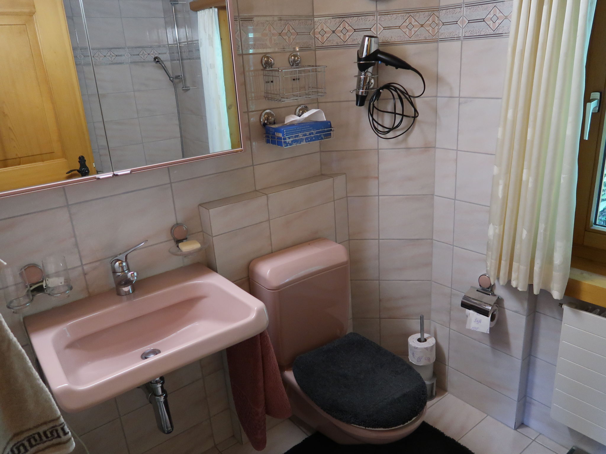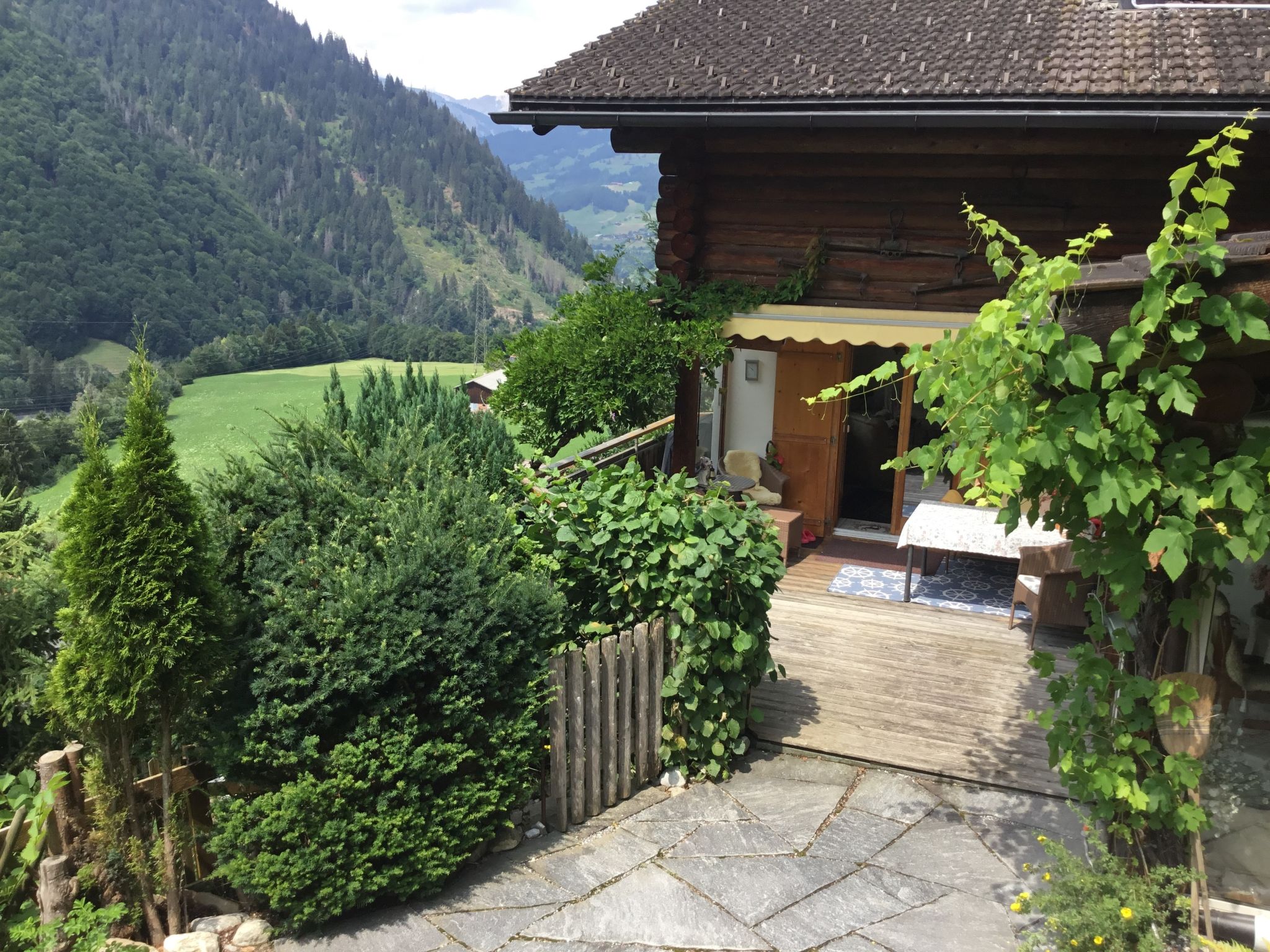 Maison 5 pièces 200 m2 sur 3 niveaux, situation ouest. Aménagement confortable et plaisant: séjour avec cheminée et TV (satellite) (écran plat), radio et chaîne stéréo. Sortie sur le jardin, sur le jardinet. Salle à manger avec poêle à bois. Sortie sur le jardin, sur le jardinet. Cuisine ouverte (lave-vaisselle, 4 plaques vitrocéramiques, micro-ondes) avec table pour les repas. WC séparé. À l'étage inférieur: 1 chambre avec 2 lits et TV (satellite) (écran plat). Douche/WC. À l'étage supérieur: 2 chambres, chaque chambre avec: 2 lits et TV (satellite) (écran plat). Bain/WC. Balcon, terrasse, jardinet. Meubles de terrasse, chaises longues, jardin d'hiver, réduit. Belle vue sur les montagnes, la vallée et les alentours. A disposition: lit bébé, bois (en sus). Internet (Connexion WIFI, gratuit). Place de parking (1 Voiture), garage (1 Voiture) près de la maison, hauteur 190 cm, largeur 210 cm. Veuillez noter: logement non-fumeur.