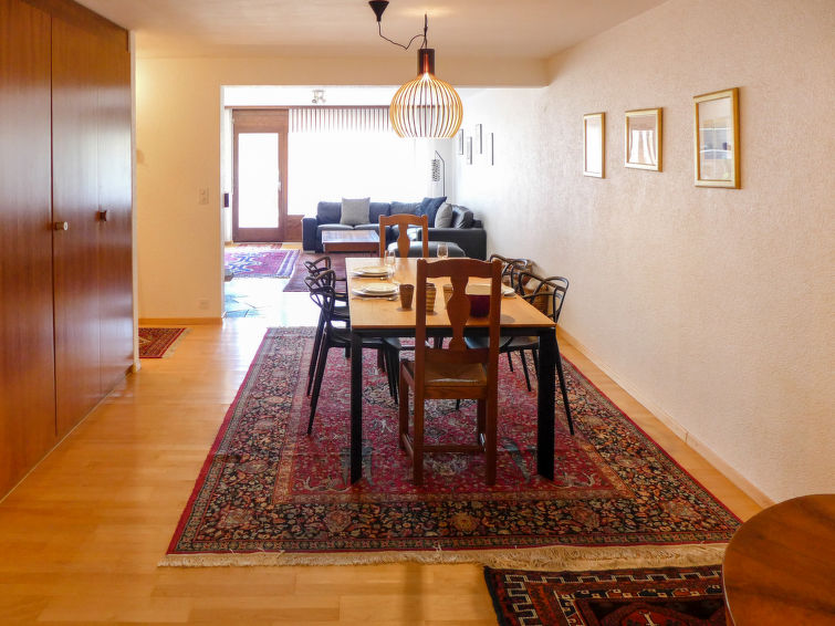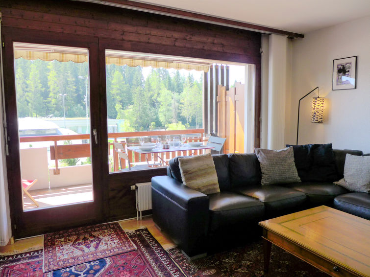 "Miremont B7", apt 3 pièces 98 m2 au 1er étage. Spacieux et clair, aménagement confortable et agréable: grand séjour/salle à manger avec TV (câblée). Sortie sur le balcon, orientée sud. 2 chambres orientée nord, chaque chambre avec: 1 grand-lit (160 cm, longueur 200 cm). Cuisine (four, lave-vaisselle, 4 plaques vitrocéramiques, grille-pain, bouilloire électrique, micro-ondes, cafetière électrique, Capsules pour machine à café (Nespresso) (NON INCLUSES), appareil à raclette, service à fondue (fondue chinoise, fondue au fromage)). Bain/bidet/WC, douche/WC. Balcon 7 m2, situation sud. Mobilier de balcon. Belle vue sur les montagnes et la localité. A disposition: lave-linge, sèche-linge, fer à repasser, sèche-cheveux. Internet (Connexion WIFI, gratuit). Garage No 31, hauteur 205 cm, largeur 210 cm. Veuillez noter: logement non-fumeur.