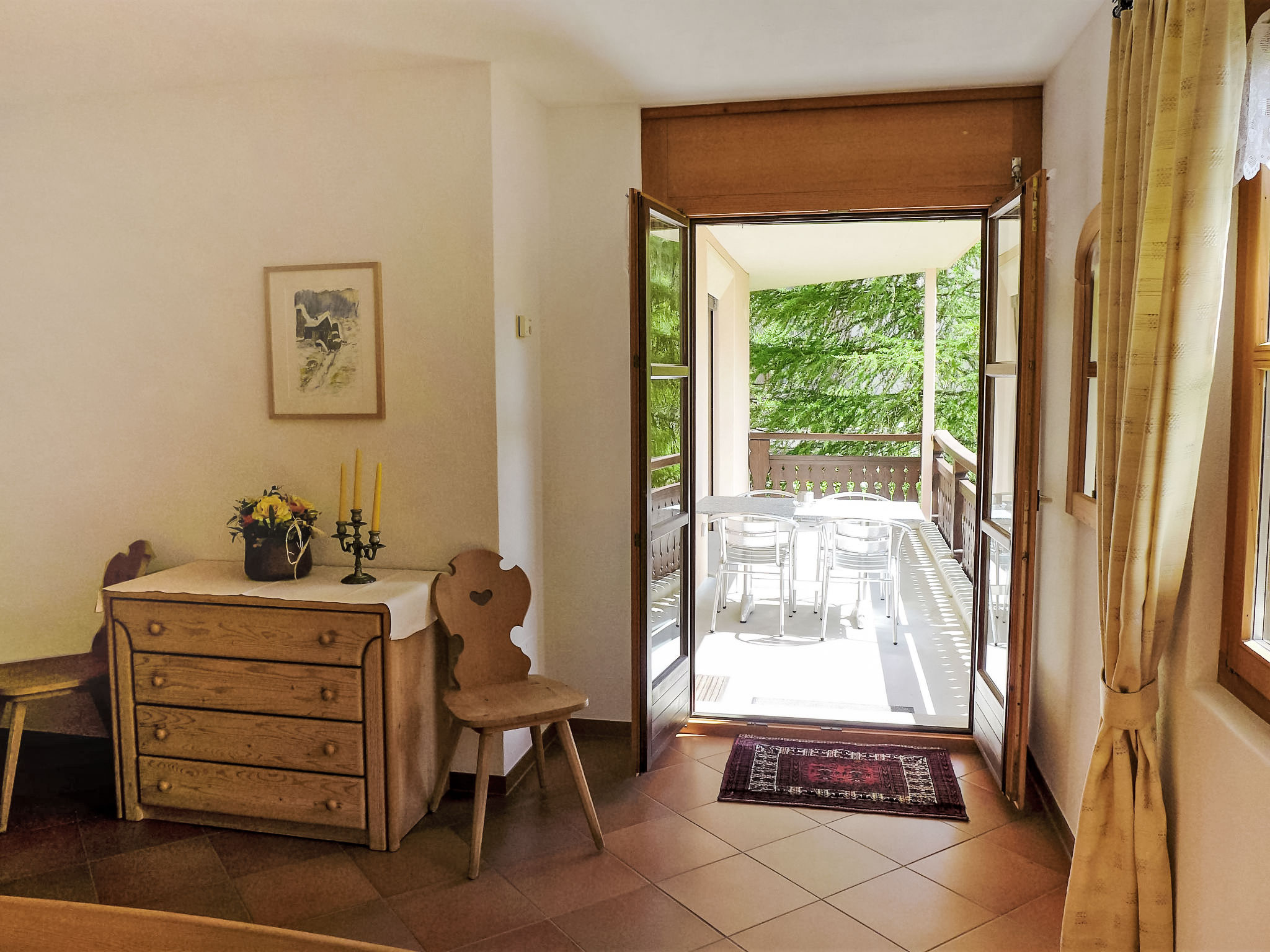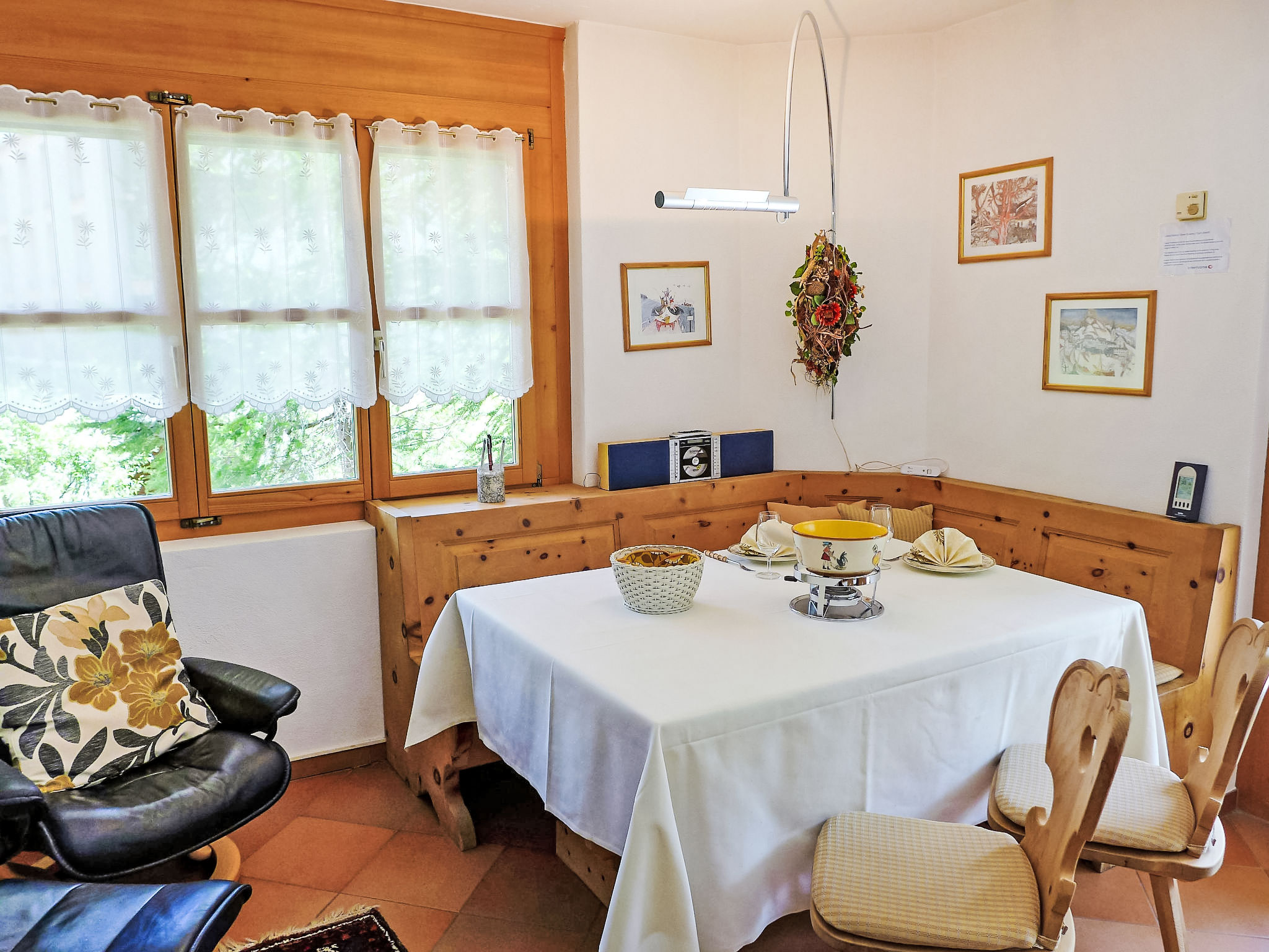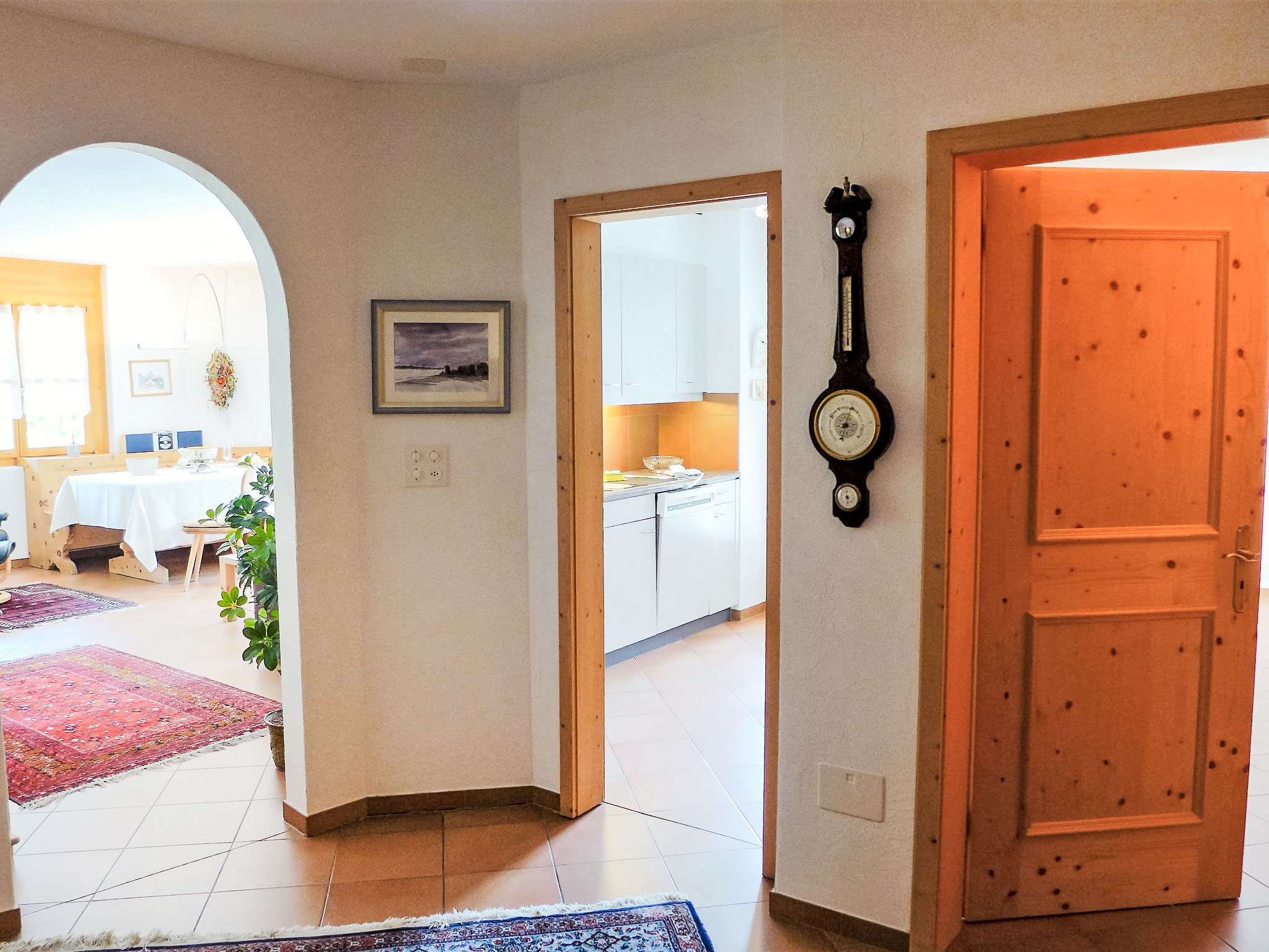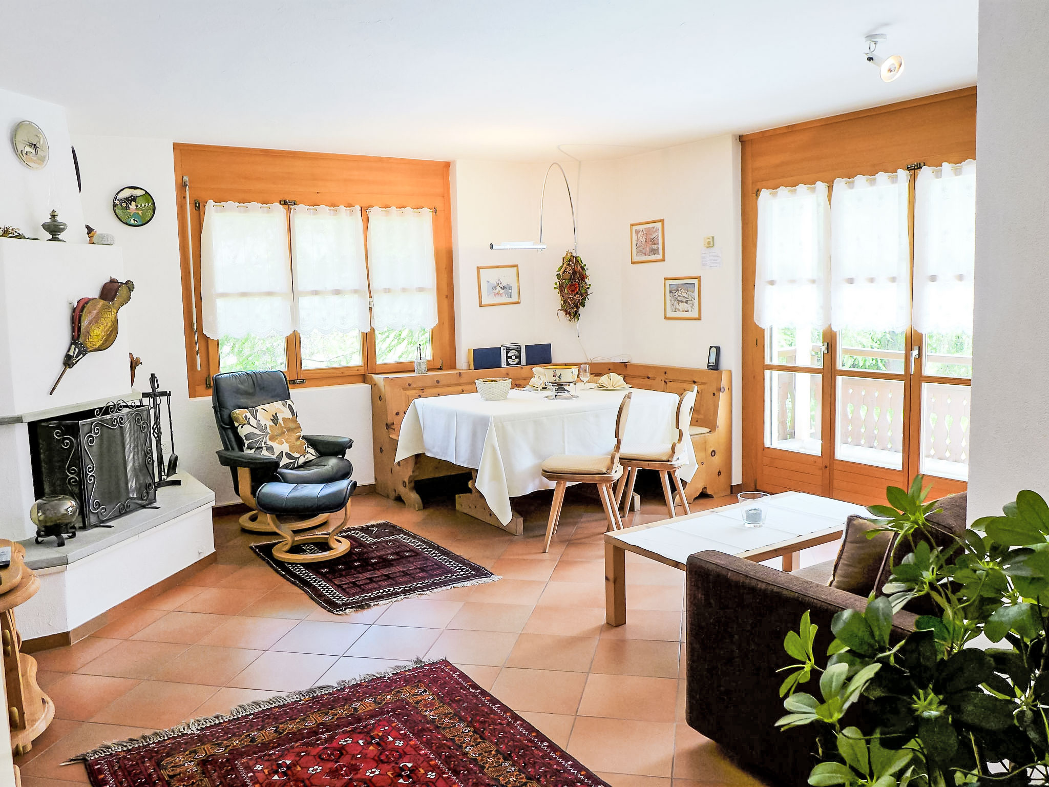"Casa La Planüra", apt 2 pièces 80 m2 au 2ème étage. Spacieux et clair, aménagement plaisant: séjour/salle à manger ouvert avec 1 divan-lit double (1 x 155 cm, longueur 190 cm), cheminée, table pour les repas et TV (écran plat). Sortie sur le balcon, orientée ouest. 1 chambre double avec 1 lit double (2 x 90 cm, longueur 190 cm). Sortie sur le balcon. Cuisine (four, lave-vaisselle, 4 plaques vitrocéramiques, grille-pain, bouilloire électrique, cafetière électrique, Capsules pour machine à café (Nespresso) (NON INCLUSES), appareil à raclette, service à fondue (fondue chinoise, fondue au fromage)). Sortie sur le balcon. Bain/WC, douche/WC. Grand balcon. Mobilier de balcon. Très belle vue sur les montagnes. A disposition: sèche-cheveux. Internet (Connexion WIFI, gratuit). Garage No 23 sur le terrain (1 Voiture), hauteur 205 cm, largeur 235 cm. Veuillez noter: logement non-fumeur. Maximum 1 animal/ chien autorisé.