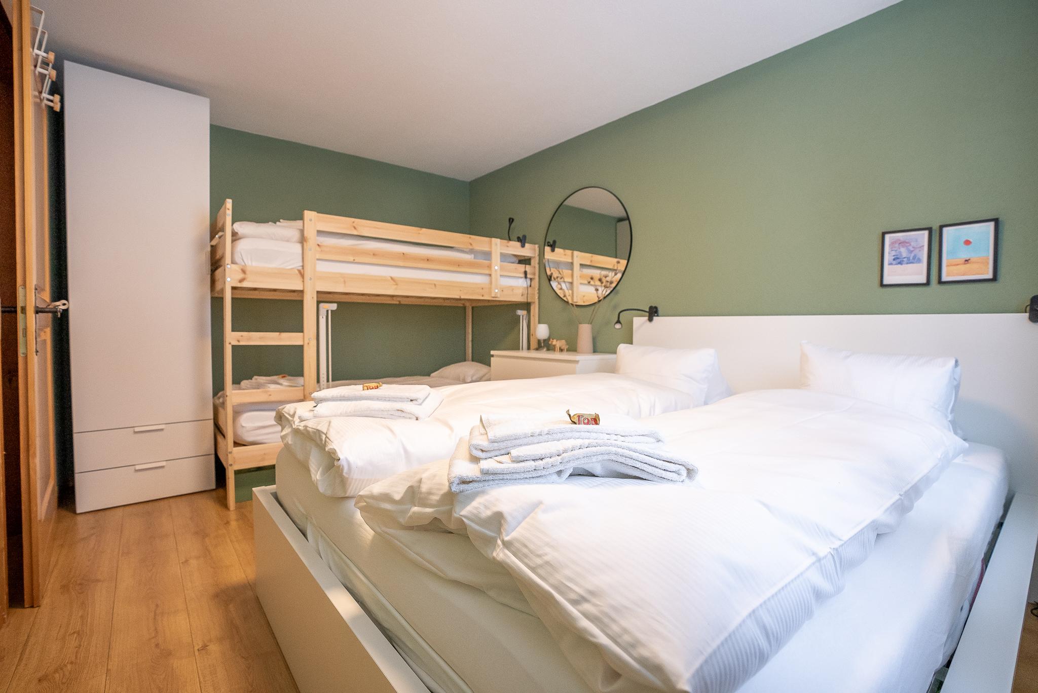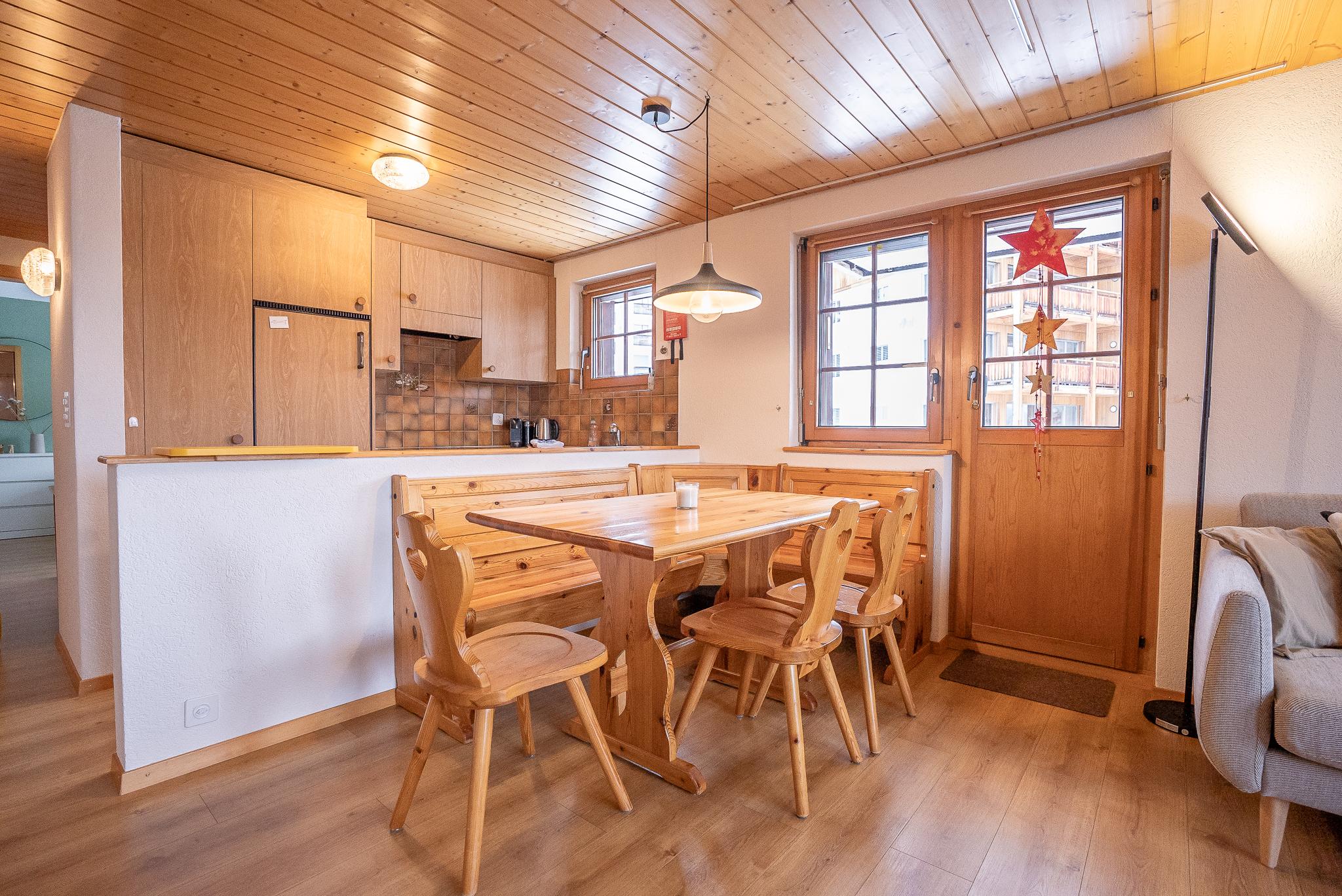 La maison d'appartements Südlenz est une maison bien connue des clients qui viennent à Riederalp. Le bâtiment de style montagnard typique dispose d'un local à skis commun, d'une buanderie et d'un ascenseur qui vous emmène au deuxième étage du Südlenz 21. En entrant dans l'appartement, vous trouverez la chambre à gauche, la salle de bains et l'espace de vie ouvert à droite. La chambre est idéale pour une jeune famille car elle dispose d'un lit superposé pour les enfants et d'un lit double dans une seule pièce. Le lit superposé inférieur est équipé d'une barrière pour bébé. Dans le salon, deux lits escamotables peuvent remplacer le lit superposé. Le salon donne accès à un balcon orienté à l'est et à un autre orienté au sud-est. Le coin salon confortable et le coin repas offrent une atmosphère parfaite pour les soirées en famille ou en couple. La cuisine est entièrement équipée.