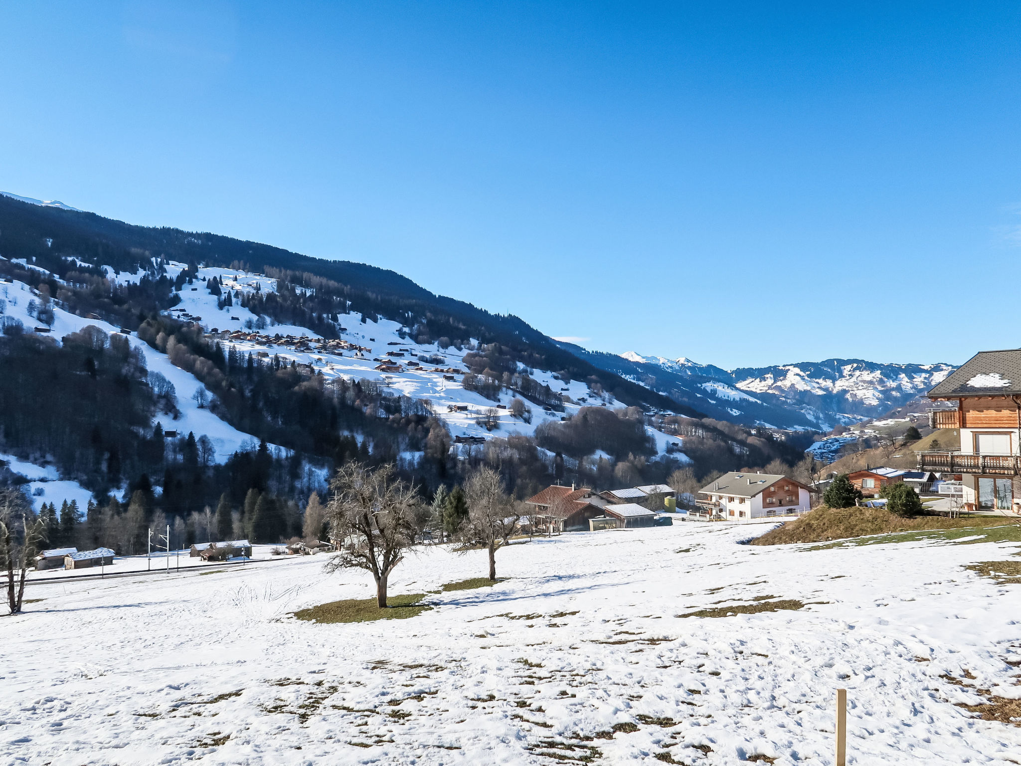 Saas im Prättigau à 7 km de Klosters: Cottage rustique, confortable "Im Rach", 980 m au dessus du niveau de la mer, de 3 étages, année de construction 1900, renové en 2023. En bordure de la localité, à 700 m du centre, situation isolée, tranquille, ensoleillée, à 7 km du domaine skiable, dans une impasse, dans la verdure. A usage privé: terrain, jardin 100 m2. Barbecue. Infrastructures de la Maison: réduit pour bicyclettes, local pour les skis, chauffage central. Accès en voiture jusqu'à la maison. En hiver 4x4 recommandé. Place de parking près de la maison, garage individuel près de la maison. Magasin d'alimentation 1 km, supermarché 3 km, restaurant 1 km, arrêt de bus 300 m, gare ferroviaire "Saas im Prättigau" 500 m, piscine couverte 3 km. Téléphérique 7 km, téléski 7 km, remontées mécaniques 7 km, pistes de ski 7 km. Arrêt du ski-bus 300 m, école de ski 7 km, piste de luge 7 km, patinoire 7 km. Les domaines skiables de renommée sont facilement accessibles: Klosters Madrisa 7 km, Klosters/Davos Parsenn 9 km. Veuillez noter: route principale à proximité.