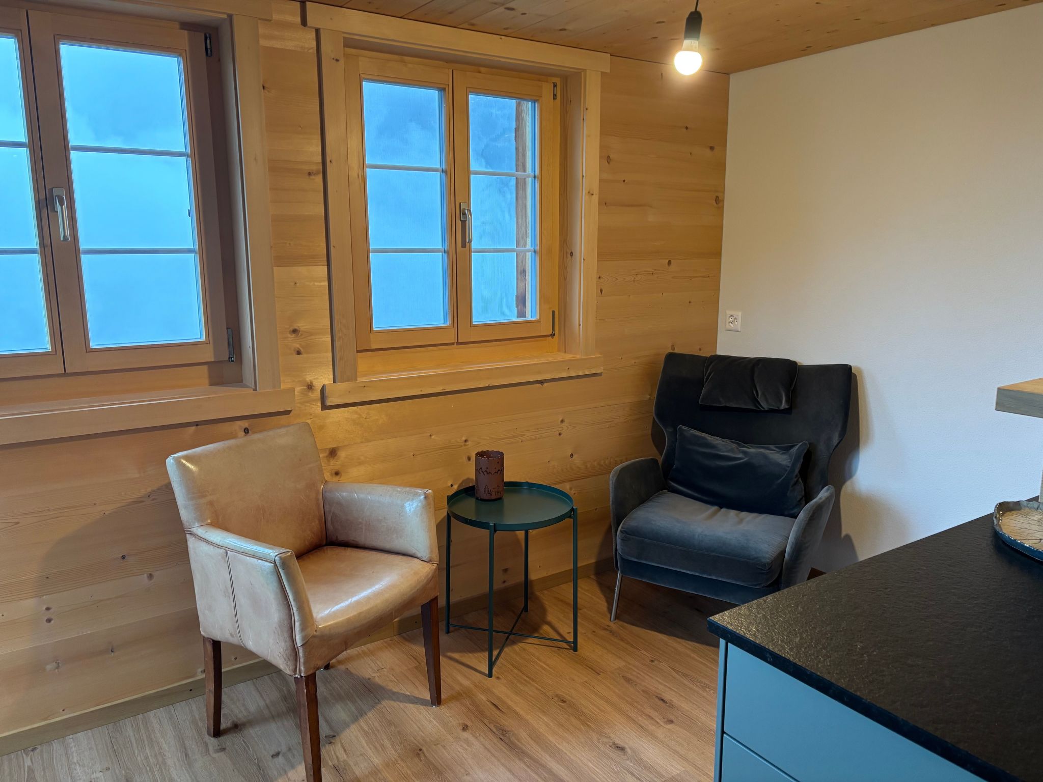 L'aménagement intérieur du Waldweidli offre tout ce que l'on peut désirer. Dans le salon confortablement aménagé, vous trouverez une télévision, divers jeux de société et des livres qui vous inviteront à passer des soirées divertissantes. Une cuisine entièrement équipée avec un coin repas confortable comble tous les désirs. La chambre à coucher avec un lit double de 180 cm x 200 cm et un canapé-lit ainsi qu'une salle de bain avec WC et douche complètent l'ambiance de bien-être. Une machine à café avec système Delizio est à disposition (veuillez apporter vos capsules de café) et un vestiaire offre suffisamment de place pour les chaussures et les vestes.