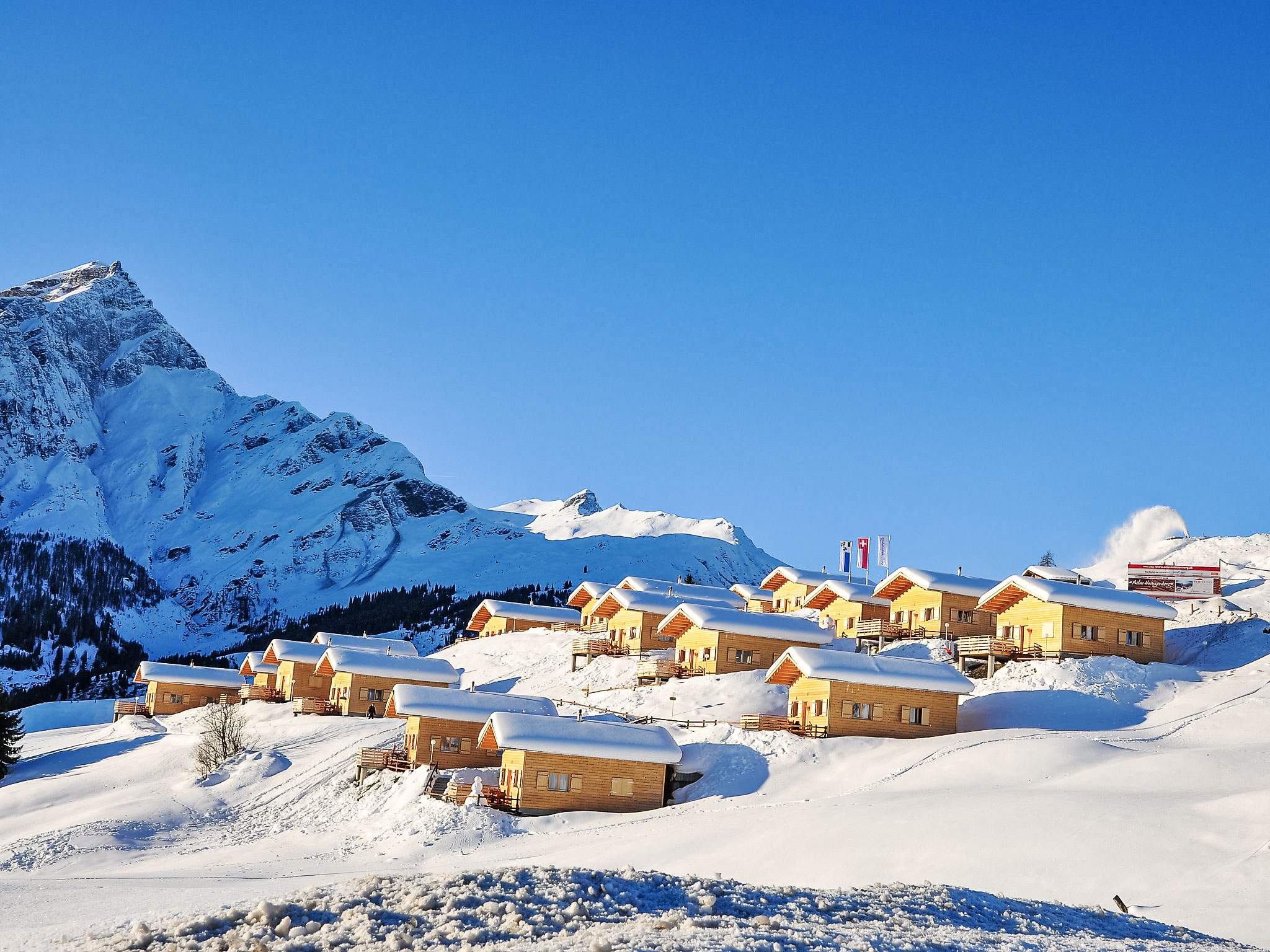 Oberurmein à 10 km de Thusis: Le village de vacances est interdit aux voitures. Une petite épicerie à 100 m de la maison est ouverte en hiver. Village de vacances accueillant pour les enfants, accueillant "Komfort Aclas Maiensäss Resort", 1'580 m au dessus du niveau de la mer, année de construction 2008, environné par les prés. Avec 21 maisons, en bordure de la localité, situation tranquille, ensoleillée sur un versant, à 200 m du domaine skiable, dans la verdure, orientée sud-est. Infrastructures de la résidence: réception, local pour les skis, lave-linge, sèche-linge (en commun, en sus). Accès en voiture jusqu'à 100 m de la maison (route de montagne). En hiver, merci de prévoir des chaînes, en hiver 4x4 recommandé. Place de parking à 100 m. Magasin d'alimentation 4 km, centre commercial 10 km, restaurant 200 m, arrêt de bus "Oberurmein, Aclas (nur Winter)" 50 m, gare ferroviaire "Thusis" 10 km, baignade en lac 500 m. Téléski, pistes de ski, location de ski. École de ski 200 m, patinoire, jeux pour enfants 500 m. Veuillez noter: complexe de vacances sans voiture.