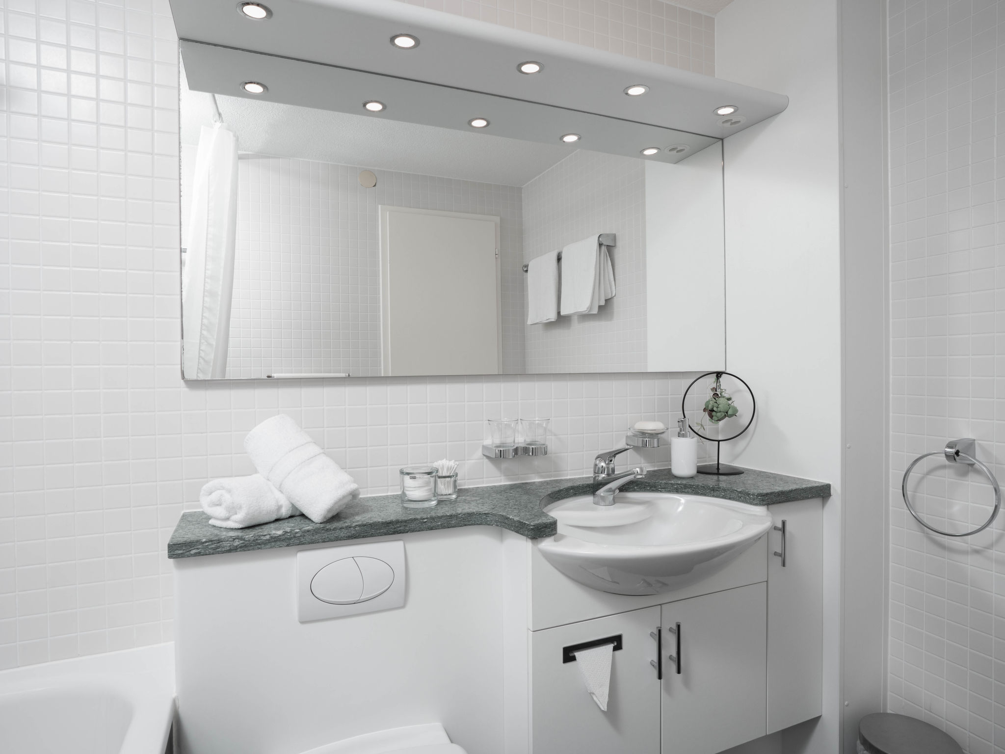 "Double Room Modern" studio 35 m2 au 2ème étage, situation sud. Rénové: séjour/salle à manger avec 1 lit double (1 x 160 cm, longueur 200 cm), TV (satellite) et radio. Coin cuisine (four, cafetière électrique, Capsules pour machine à café (Nespresso) (NON INCLUSES)). Bain/WC. Chauffage au fuel. Balcon, situation sud. Superbe vue sur le lac, les montagnes et la localité. A disposition: Internet (Connexion WIFI, gratuit). Veuillez noter: logement non-fumeur. Maximum 1 animal/ chien autorisé. NL-00004955