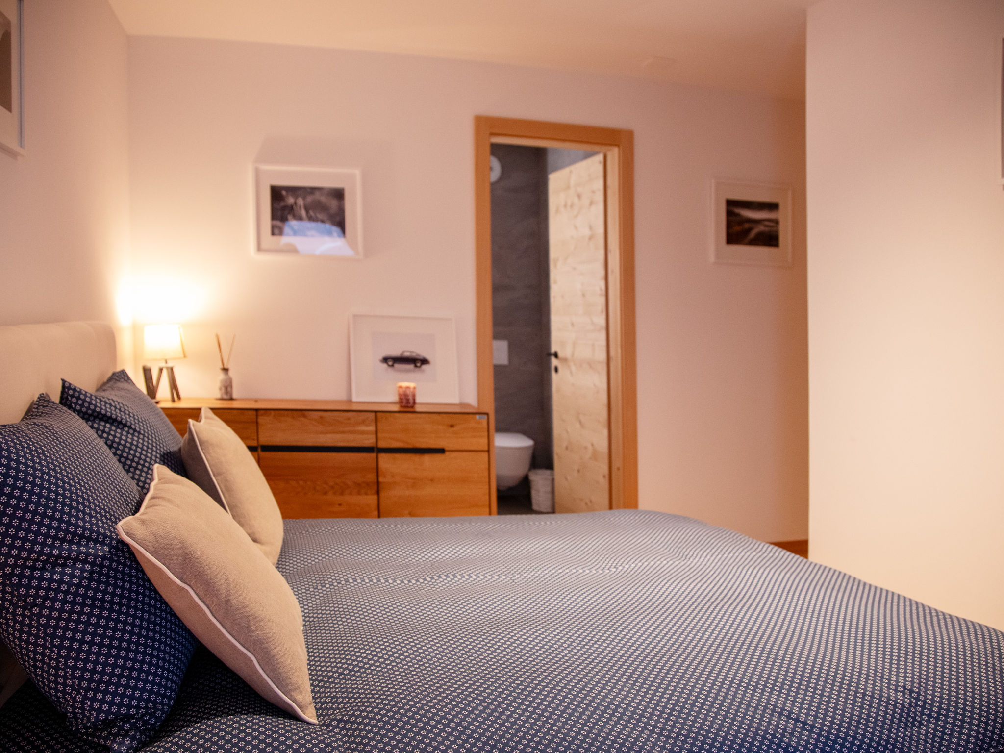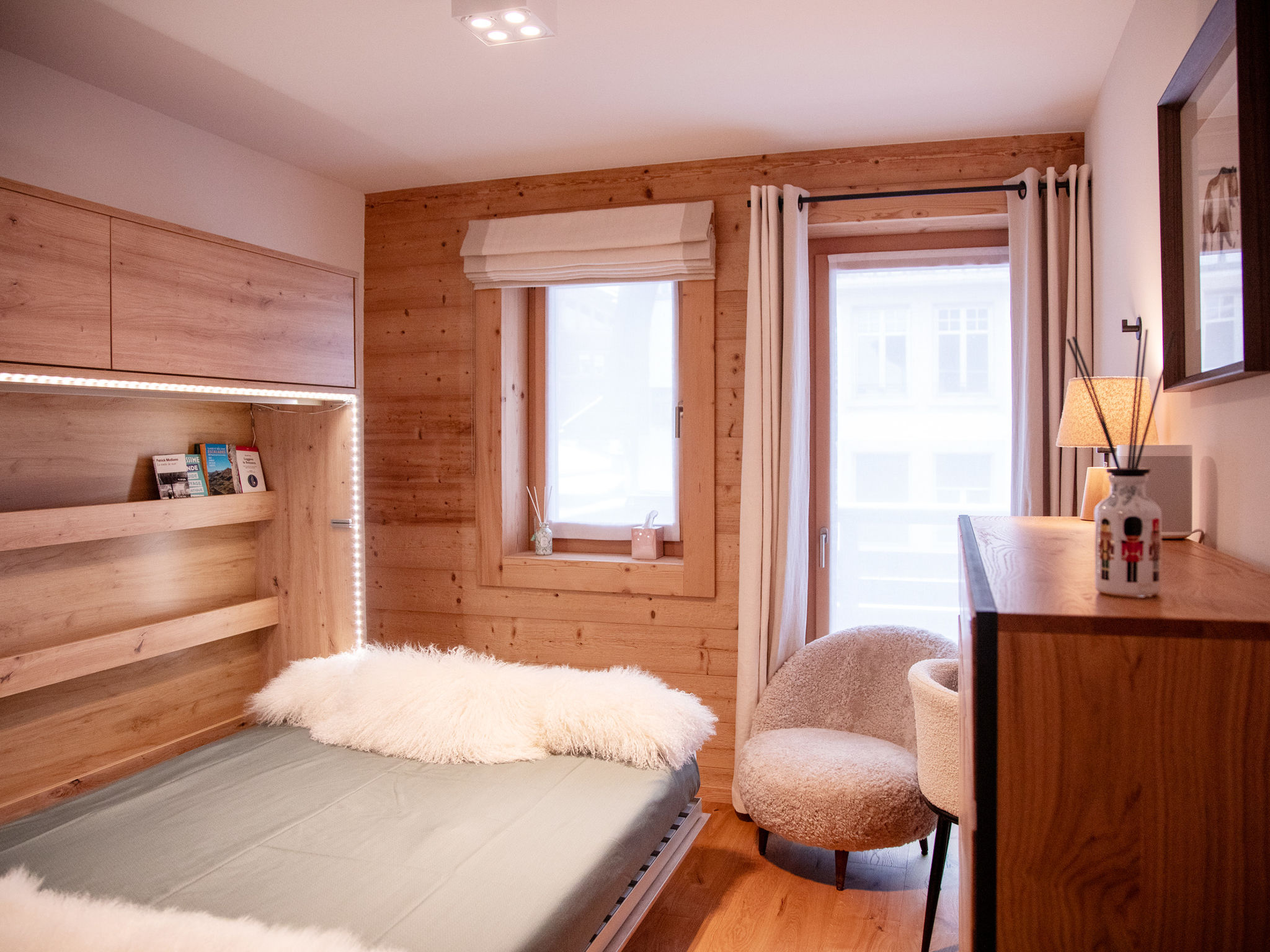 "Hédonia B4", apt 4 pièces 120 m2, situation sud. Spacieux, aménagement moderne et de bon goût: séjour/salle à manger avec cheminée, table pour les repas et TV (écran plat). Sortie sur le balcon, orientée sud. 1 chambre avec 1 grand-lit (1 x 160 cm), douche/WC. Sortie sur le balcon, orientée nord. 1 chambre avec 1 grand-lit (1 x 160 cm), bain/WC et double vasque. Sortie sur le balcon, orientée nord. 1 chambre avec 1 grand-lit rabattable (1 x 160 cm), douche/WC. Sortie sur le balcon, orientée nord. Grande cuisine ouverte (four, lave-vaisselle, 4 plaques à induction, grille-pain, bouilloire électrique, congélateur, cafetière électrique, Capsules pour machine à café (Nespresso) (NON INCLUSES), four à vapeur, appareil à raclette, service à fondue (fondue au fromage)) avec bar. WC séparé. Sol en parquet. Balcon, situation sud balcon, situation nord. Mobilier de balcon. Très belle vue sur les montagnes. A disposition: lave-linge, sèche-linge, sèche-cheveux. Internet (Connexion WIFI, gratuit). Garage No 11. Veuillez noter: logement non-fumeur.