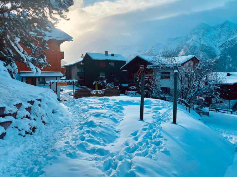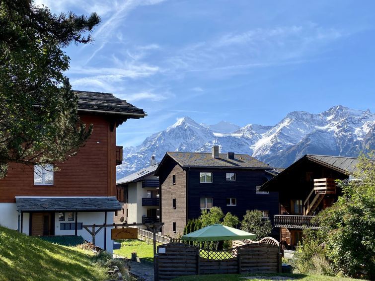 Immeuble accueillant pour les enfants, accueillant, confortable 1'600 m au dessus du niveau de la mer, de 3 étages, année de construction 1969, renové en 2000. Dans la localité, à 250 m du centre, situation tranquille, ensoleillée, à 500 m du domaine skiable. En commun: terrain, jardin, pré. Infrastructures de la Maison: chauffage central, lave-linge, sèche-linge (en commun). Accès en voiture jusqu'à 250 m de la maison (route de montagne). En hiver 4x4 recommandé. 250 m sentier jusqu'à la maison. Parking public couvert, parking public 250 m en sus. Magasins, magasin d'alimentation 250 m, supermarché, restaurant 200 m, boulangerie 250 m, arrêt de bus "Grächen Post" 500 m, piscine couverte 500 m. Tennis 300 m, chemins de randonnées pédestres depuis la maison 50 m, télécabine, remontées mécaniques, pistes de ski, location de ski 500 m. École de ski, piste de luge, patinoire 500 m, jeux pour enfants 150 m. Les domaines skiables de renommée sont facilement accessibles: Zermatt 25 km, Saas Fee 30 km. Veuillez noter: complexe de vacances sans voiture.