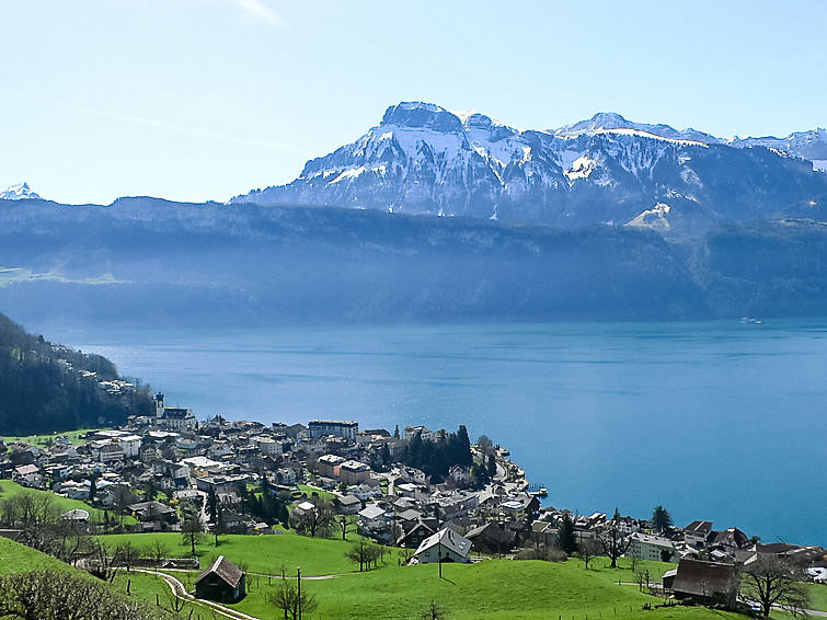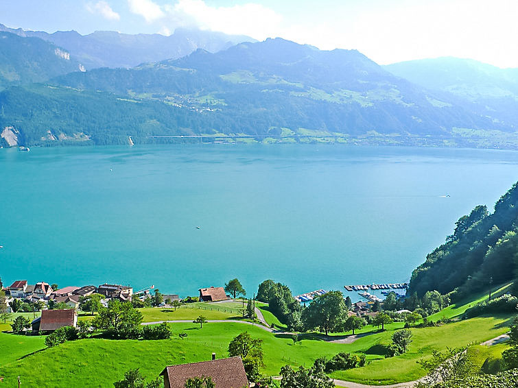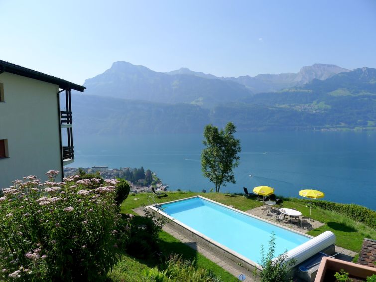 Petite résidence "Platten". En-dehors de la localité, 1.5 km du centre, situation tranquille, ensoleillée sur un versant, à 1.5 km du lac. En commun: pré, piscine (4 x 12 m, disponibilité saisonnière: 01.Jun. - 30.Sep.) avec marches intérieures. Infrastructures de la Maison: restaurant, ascenseur, chauffage central, lave-linge, sèche-linge (en commun, en sus). Accès en voiture jusqu'à la maison (route de montagne). En hiver 4x4 recommandé. Place de parking près de la maison. Magasin d'alimentation 1.5 km, restaurant 10 m, arrêt de bus "Gersau, Platten" 50 m, crique pour baignade 1.5 km. Tennis 1.5 km, train de montagne 4 km, téléski 4 km. Les lacs connus sont facilement accessibles: Vierwaldstättersee 1.5 km. Veuillez noter: voiture recommandée.