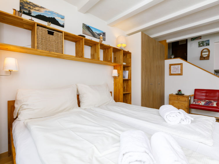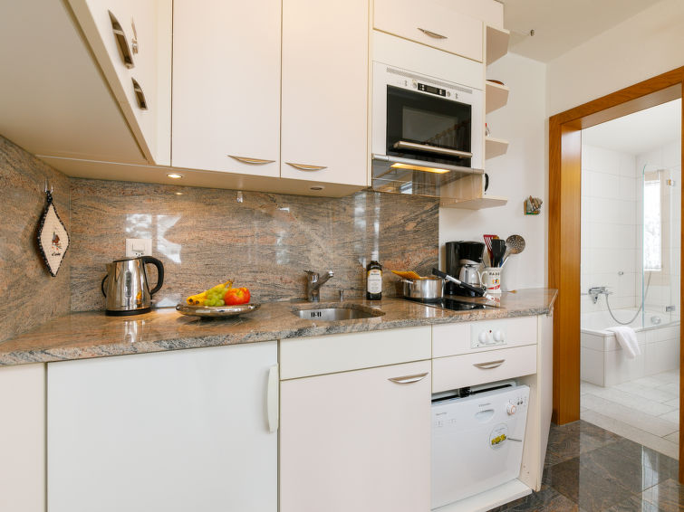 "Residenza Chesa Margun 35-6" studio 40 m2. Spacieux, aménagement agréable et plaisant: séjour/chambre à coucher avec 1 lit double et TV (câblée) (écran plat), radio. Sortie sur le balcon. Coin cuisine (four, lave-vaisselle, 2 plaques vitrocéramiques, micro-ondes, cafetière électrique) avec table pour les repas. Bain/WC. Chauffage électrique. Sol en parquet. Grand balcon, situation sud. Vue latérale sur les montagnes et la localité. A disposition: téléphone. Internet (Connexion WIFI). Veuillez noter: logement non-fumeur.