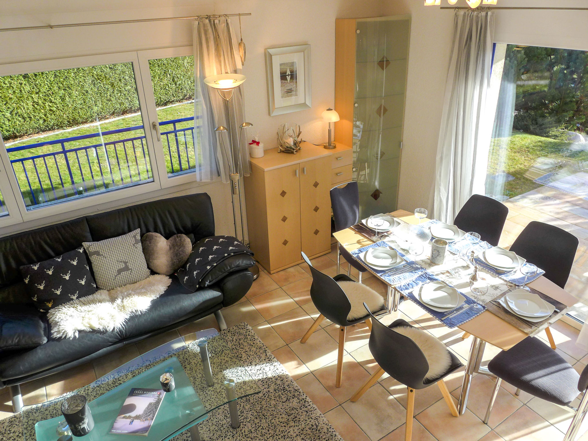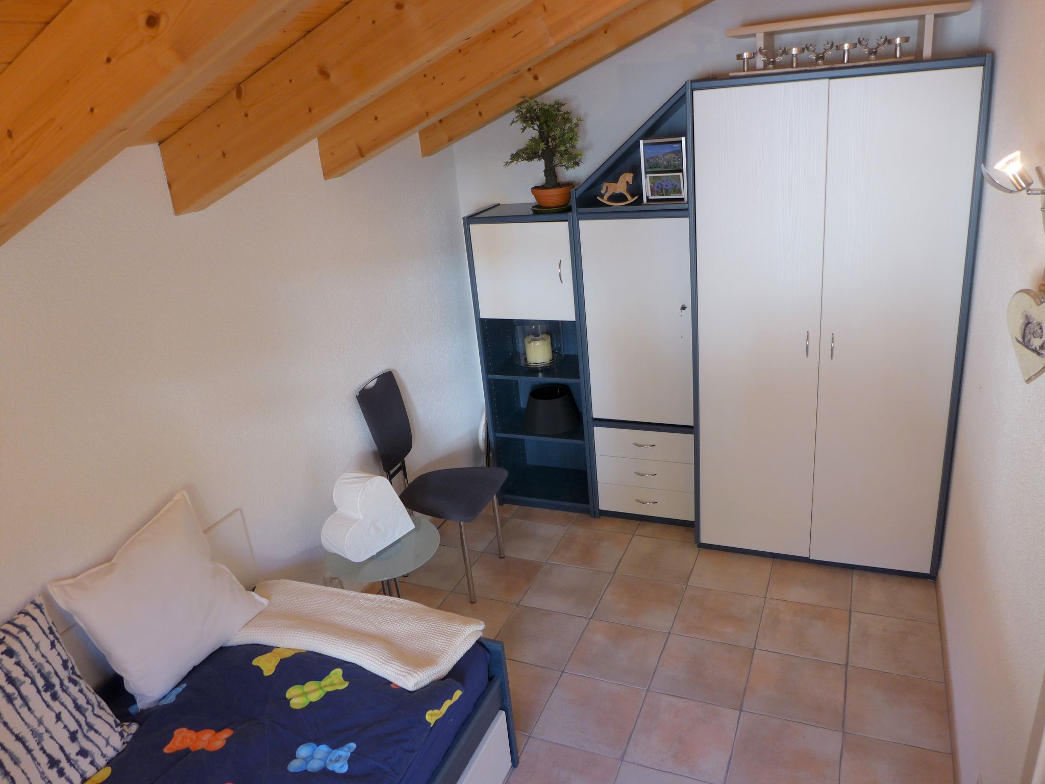 "Maison N°35", maison mitoyenne 4 pièces 75 m2 sur 2 niveaux. Logement idéal pour 4 adultes + 2 enfants. Spacieux et clair, aménagement confortable et agréable: séjour/salle à manger ouvert avec TV (câblée), écran plat, radio et chaîne stéréo. Sortie sur la terrasse. Cuisine (four, lave-vaisselle, 4 plaques vitrocéramiques, grille-pain, bouilloire électrique, micro-ondes, congélateur, cafetière électrique, Capsules pour machine à café (Nespresso) (NON INCLUSES), appareil à raclette, service à fondue (fondue chinoise, fondue au fromage)). WC séparé. À l'étage supérieur: 1 chambre, hauteur plafond 300 - 400 cm avec 1 grand-lit (180 cm, longueur 200 cm), TV. Sortie sur le balcon. 1 petite chambre avec 1 lit gigogne (2 pers. 2 x 90 cm, longueur 190 cm). 1 chambre avec 1 lit gigogne (2 pers. 2 x 90 cm, longueur 190 cm). Sortie sur le balcon. Douche/bidet/WC. Grand balcon, situation sud, grande terrasse 10 m2, situation sud. Meubles de terrasse, barbecue électrique (portable), chaises longues (2), réduit. Superbe vue panoramique sur les montagnes et la vallée. A disposition: lave-linge, sèche-linge, sèche-cheveux. Internet (Connexion WIFI, gratuit). Place de parking (1 Voiture), garage (1 Voiture), hauteur 200 cm, largeur 220 cm. Veuillez noter: adapté(e) aux familles. Maison non-fumeur.