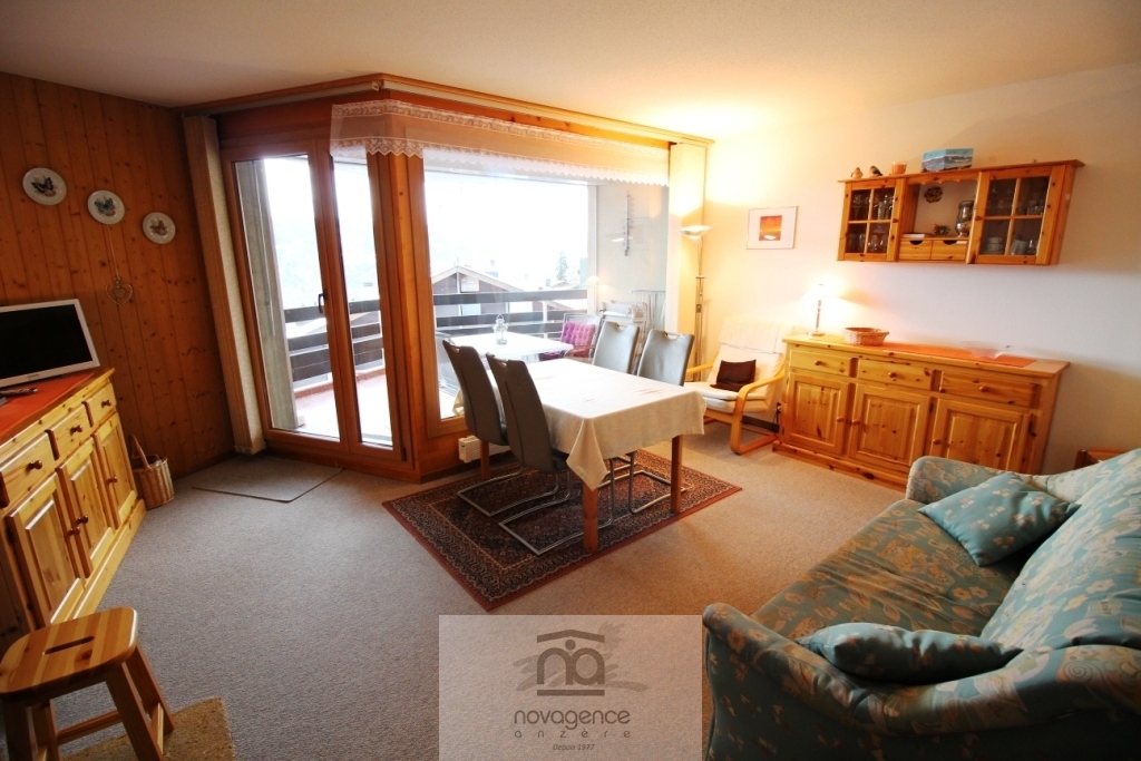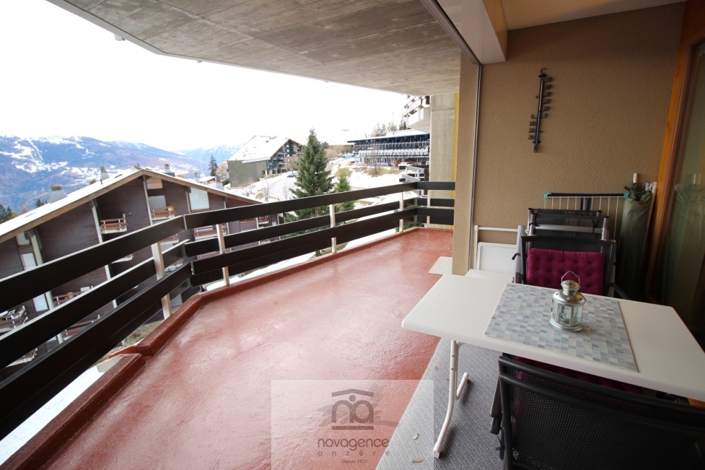 Bel appartement pour 4 personnes, proche de la télécabine. Salon - salle à manger avec 2 lits simples (180x90), cheminée, TV, radio/CD. Balcon avec une vue magnifique sur les Alpes Valaisannes. Nouvelle cuisine avec 4 plaques vitro-ceram, four, frigo avec compartiment congélateur, machine à café Nespresso. Une chambre à coucher avec 2 lits (190x90) et une salle de bain avec baignoire/douche, WC et lavabo. Commerces à proximité, accès facile, place de parc (payant) devant l'immeuble.