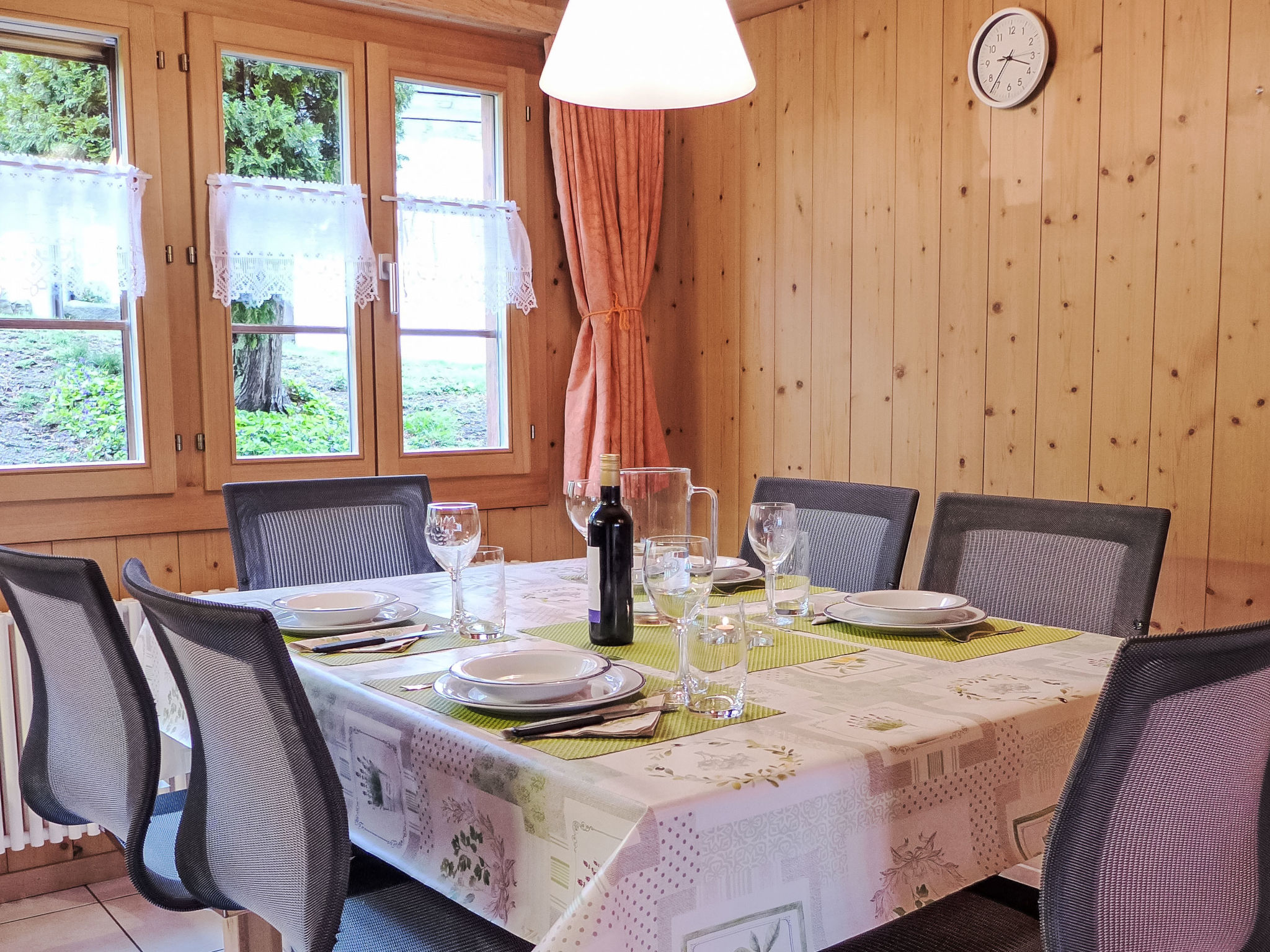 "Engelhorn", maison jumelée 3 pièces 105 m2 sur 2 niveaux, à l'étage supérieur. Spacieux et clair, aménagement très confortable et plaisant: grand séjour/salle à manger 30 m2, ouvert avec poêle suédois et TV (satellite). Cuisine ouverte (four, lave-vaisselle, 4 plaques vitrocéramiques, grille-pain, bouilloire électrique, micro-ondes, cafetière électrique, Capsules pour machine à café (Nespresso) (NON INCLUSES), appareil à raclette, service à fondue (fondue au fromage)). Douche/WC. Sous le toit: 1 grande chambre 21 m2 avec 1 lit double (160 cm, longueur 200 cm). 1 chambre double 13 m2 avec 1 lit double (2 x 90 cm, longueur 200 cm). WC séparé. Terrasse. Superbe vue panoramique sur les montagnes et les alentours. A disposition: chaise haute pour enfant, lit bébé jusqu'à 2 ans (en sus), sèche-cheveux, bois (gratuit). Internet (Connexion WIFI, gratuit). Place de parking. Veuillez noter: adapté(e) aux familles. Maison non-fumeur. Maximum 1 animal/ chien autorisé. Détecteur de fumée, extincteur.