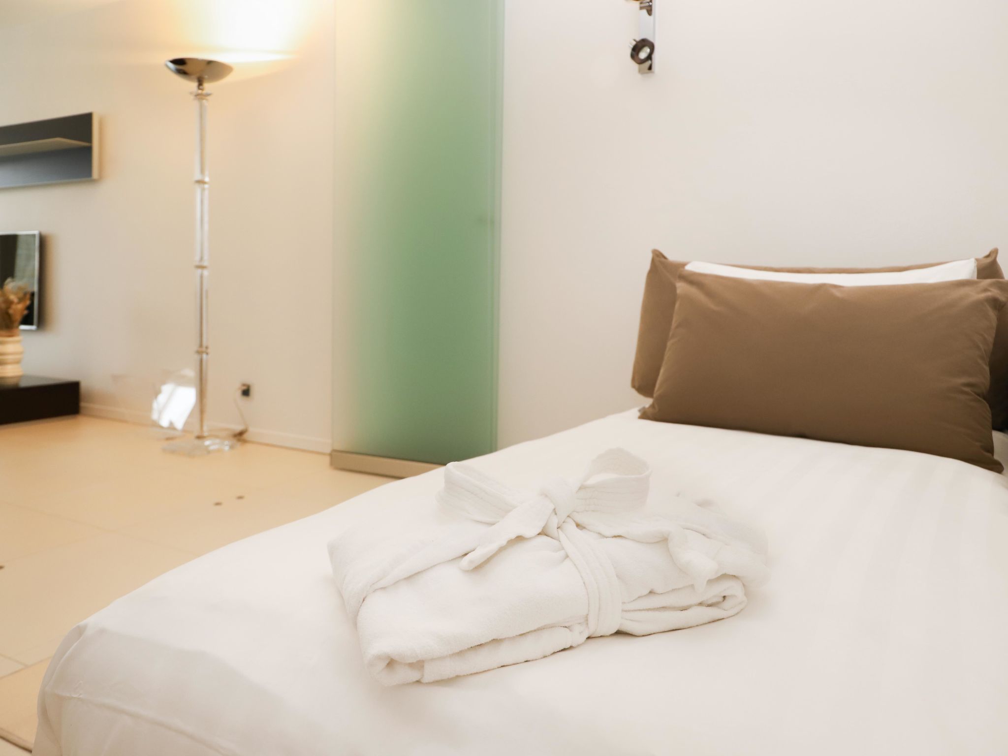 "Les Terrasses C1.7", apt 2 pièces 83 m2 au 1er étage. Aménagement de bon goût et de style: grand séjour/salle à manger ouvert avec TV (satellite) et air-conditionné. Sortie sur la terrasse. 1 chambre avec 1 lit double (160 cm, longueur 200 cm), air-conditionné. Sortie sur la terrasse. 1 chambre ouverte avec porte coulissante avec 1 divan-lit (90 cm, longueur 190 cm). Cuisine ouverte (lave-vaisselle, 4 plaques vitrocéramiques, grille-pain, bouilloire électrique, micro-ondes, cafetière électrique, Capsules pour machine à café (Nespresso)). Bain/WC, douche/WC. Balcon 19 m2. Mobilier de balcon. Superbe vue sur le lac, les montagnes, les alentours et la localité. A disposition: lave-linge, sèche-linge, fer à repasser, sèche-cheveux. Internet (Connexion WIFI). Garage No 53 sur le terrain. Veuillez noter: logement non-fumeur. Au lieu d'une chambre fermée, des espaces de couchage sont situés dans une zone ouverte (galerie, alcôve...).