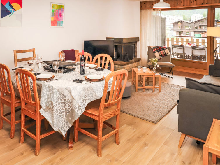 "Dents Rousses C1", apt 3 pièces 65 m2 au 1er étage. Aménagement simple: séjour/salle à manger avec cheminée (uniquement à titre de décoration), TV (câblée) et DVD. Sortie sur le balcon. Entrée avec 1 x 2 lits superposés (80 cm, longueur 190 cm). 1 chambre avec 2 lits (90 cm, longueur 190 cm). Sortie sur le balcon. 1 chambre avec 1 grand-lit (160 cm, longueur 200 cm). Sortie sur le balcon. Cuisine (3 plaques de cuisson, four, lave-vaisselle, grille-pain, bouilloire électrique, cafetière électrique, Capsules pour machine à café (Nespresso) (NON INCLUSES), appareil à raclette, combiné micro-ondes). Bain/WC, WC séparé. Balcon, situation nord balcon, situation sud. Mobilier de balcon. A disposition: lit bébé. Internet (Connexion WIFI, gratuit). Place de parking No C1. Veuillez noter: maison non-fumeur. Maximum 1 animal/ chien autorisé. Cheminée inutilisable. Au lieu d'une chambre fermée, des espaces de couchage sont situés dans une zone ouverte (galerie, alcôve...).