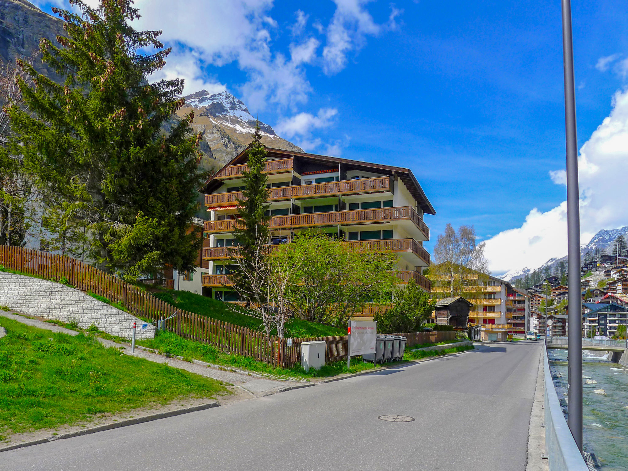 Petite résidence accueillante, simple "Matten (Utoring)". Dans le quartier d'untere MAtten, à 400 m du centre, situation centrale, tranquille, ensoleillée, orientée sud. Infrastructures de la Maison: réception, ascenseur, local pour les skis, chauffage central. Supermarché, restaurant 300 m, boulangerie, location de bicyclettes 400 m, centre à 7 minutes à pieds, arrêt de bus "Wiestibrücke" 20 m, gare ferroviaire "Bahnhof Zermatt" 400 m. Train de montagne 200 m, location de ski 30 m. Arrêt du ski-bus 10 m, école de ski, école de ski d'enfants 750 m. Veuillez noter: D’autres appartements sont également proposés à la location dans cette maison de vacances.