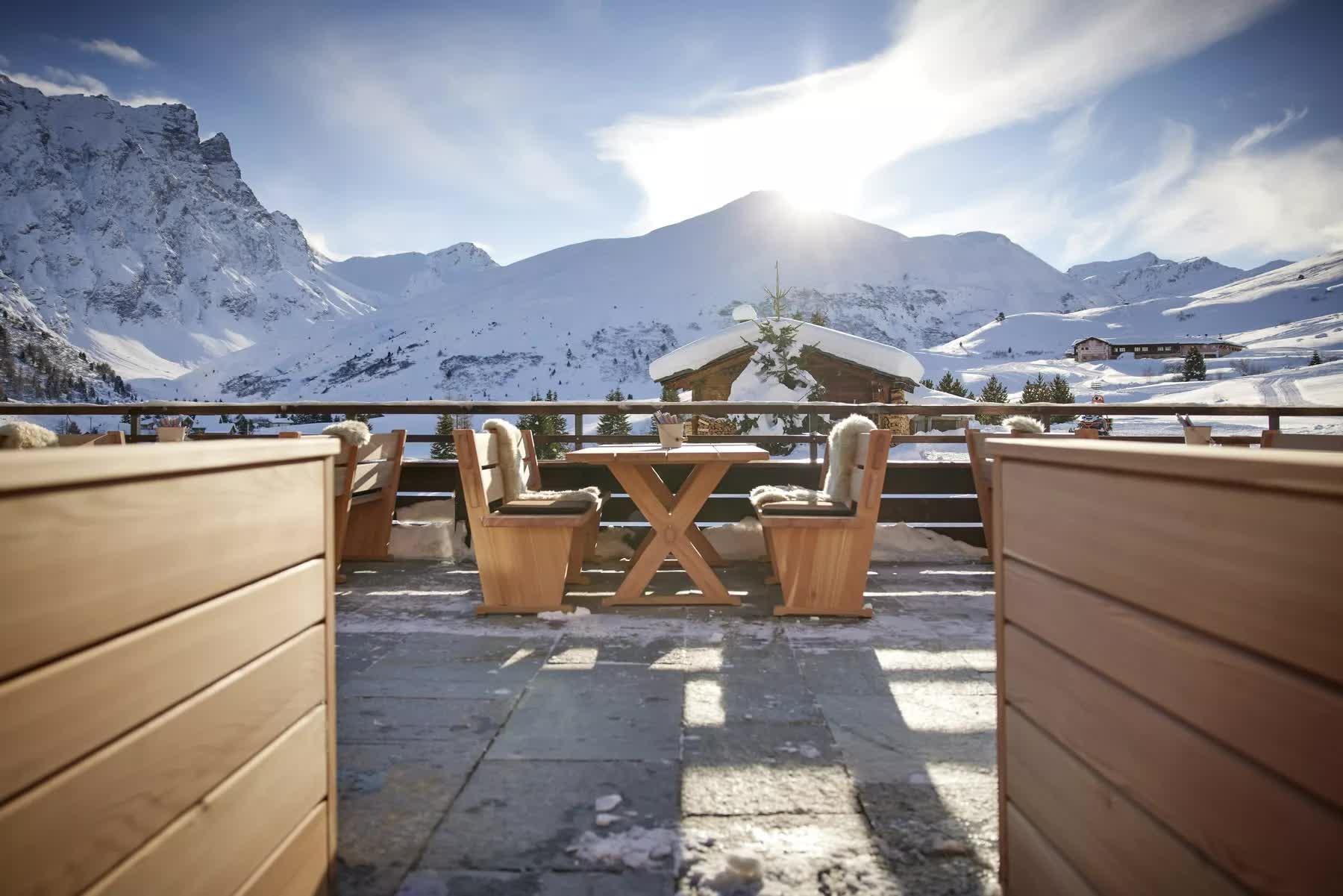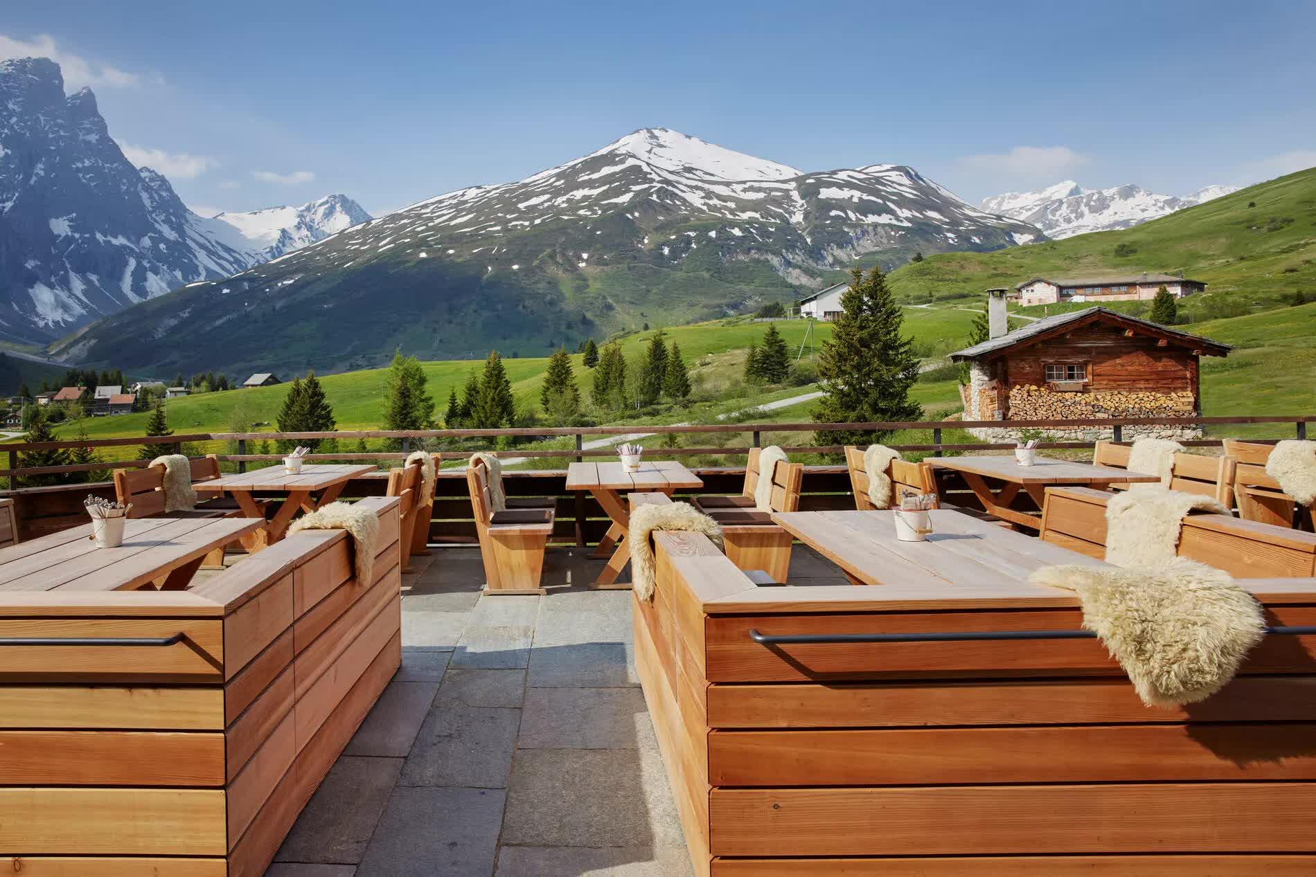 Luxe discret à 2 000 mètres - Notre maison dispose de douze chambres doubles au charme luxueux, d'une grande terrasse ensoleillée qui vous invite à vous attarder, ainsi que d'un sauna avec une zone de détente offrant une vue à couper le souffle. De plus, le maître des lieux et chef international Fadri Arpagaus vous régalera de plats locaux et d'arômes du monde entier.